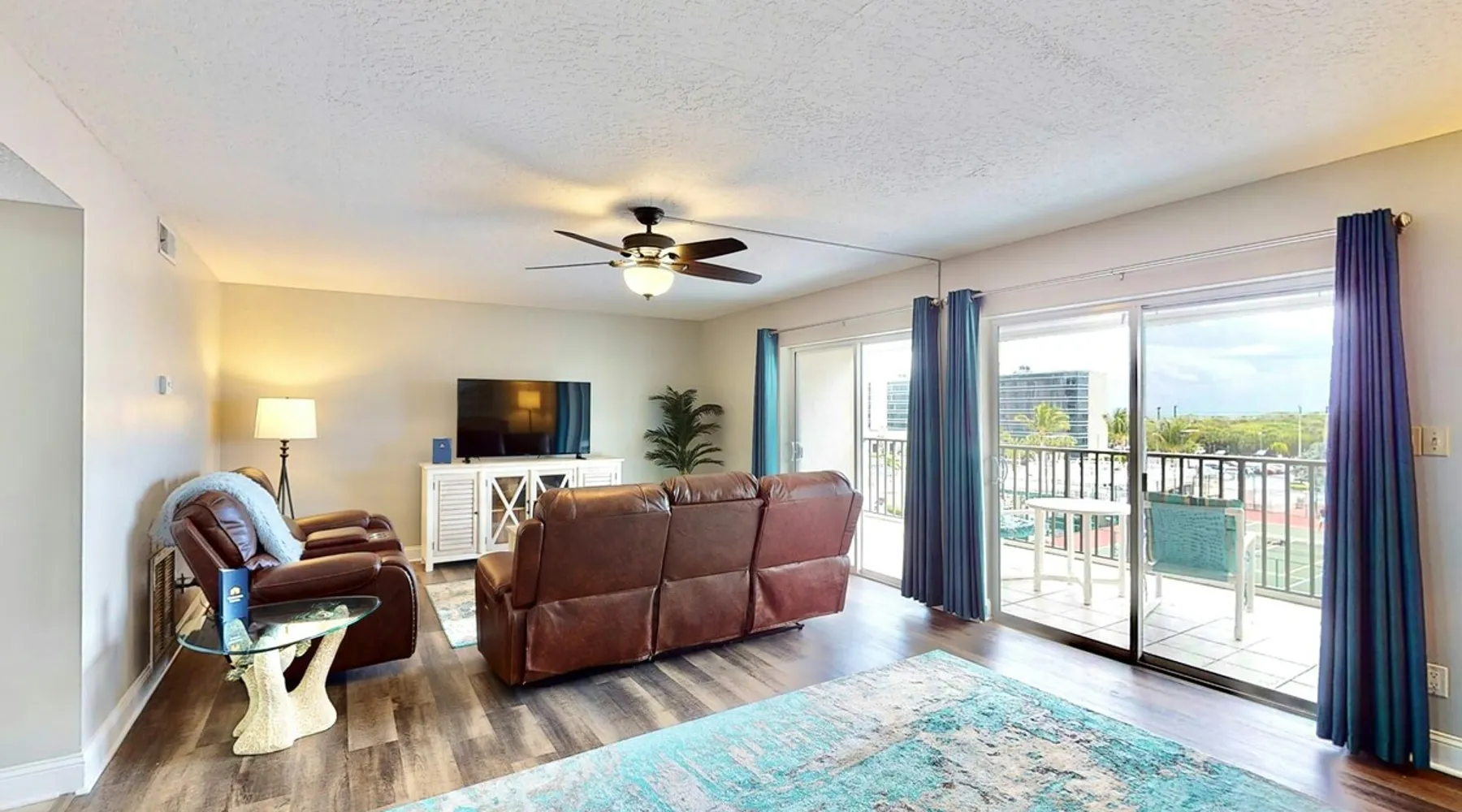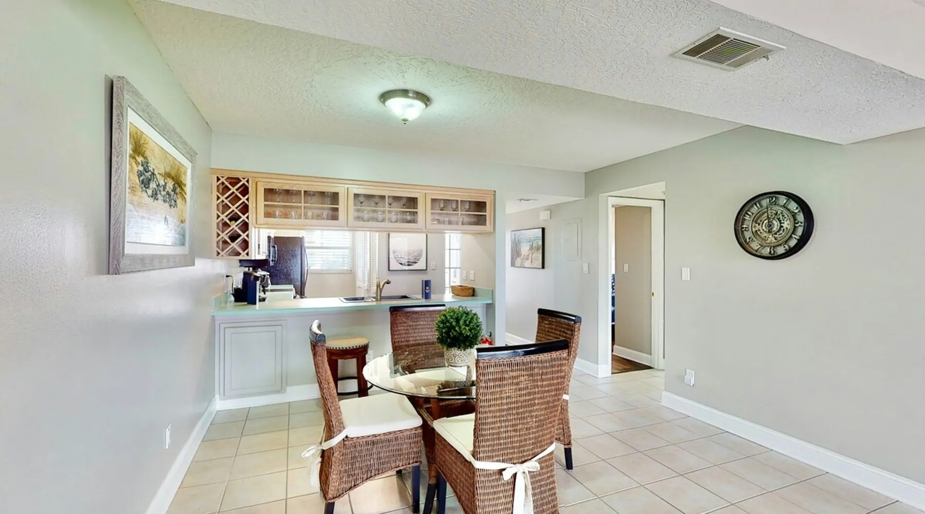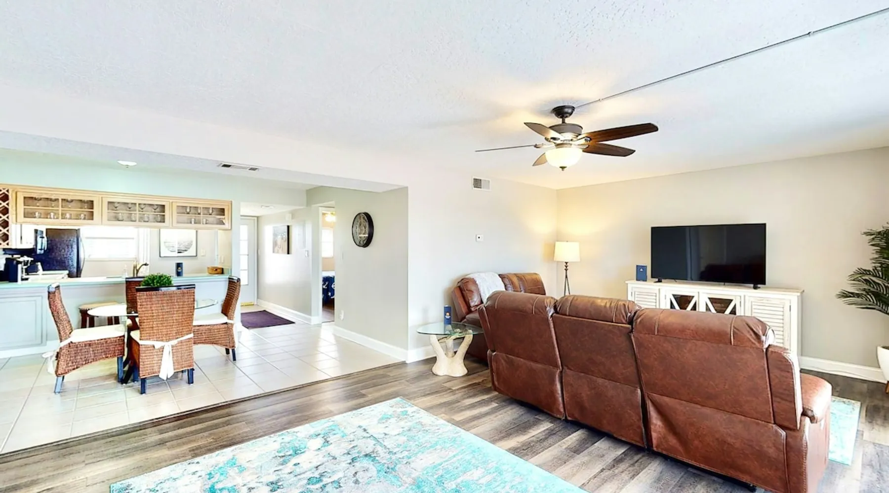The space Ocean Breezes Stress will melt away when you step into this sweet extra-large Cocoa Beach condo, close enough to all the activities you want to do, yet allowing you to feel a million miles away from it all. Rise with the sunset and have your coffee on the spacious, covered balcony. Back inside, take advantage of the well-equipped kitchen to prepare breakfast before waking the rest of the crew. There’s room for four at the dining table and two additional barstool seats and the counter when it’s time to eat, and dish duty is a breeze with the condo’s dishwasher. Head out for the day to enjoy the complex’s shared amenities, including a pool, tennis court, and basketball court, or use the private walkway to access the beach. When it’s time to return in the evening, settle into the comfortable living space and flip on one of the three big flatscreen TVs. If you’d prefer a night out, you’re only one and a half miles north of all the restaurants and bars near Cocoa Beach Main Street. And more dining and shopping options are just across the street. Just don’t stay out too late – you don’t want to miss that spectacular sunrise. THINGS TO KNOW No dog(s) are welcome in this home. No other animals are allowed without specific Vacasa approval. Parking notes: There is free parking available for 2 vehicles. Damage waiver: The total cost of your reservation for this Property includes a damage waiver fee which covers you for up to $3,000 of accidental damage to the Property or its contents (such as furniture, fixtures, and appliances) as long as you report the incident to the host prior to checking out. More information can be found from the "Additional rules" on the checkout page. Due to local laws or HOA requirements, guests must be at least 21 years of age to book. Guests under 21 must be accompanied by a parent or legal guardian for the duration of the reservation.