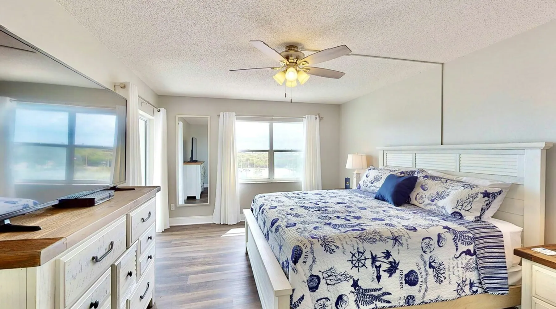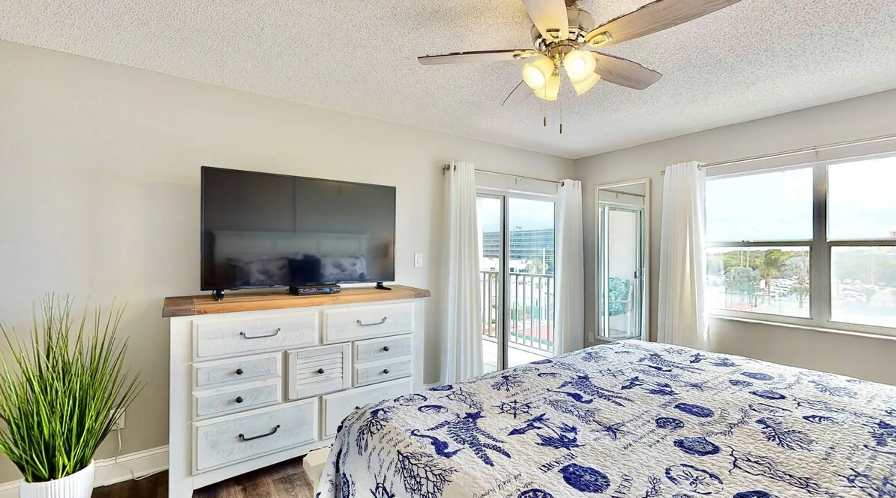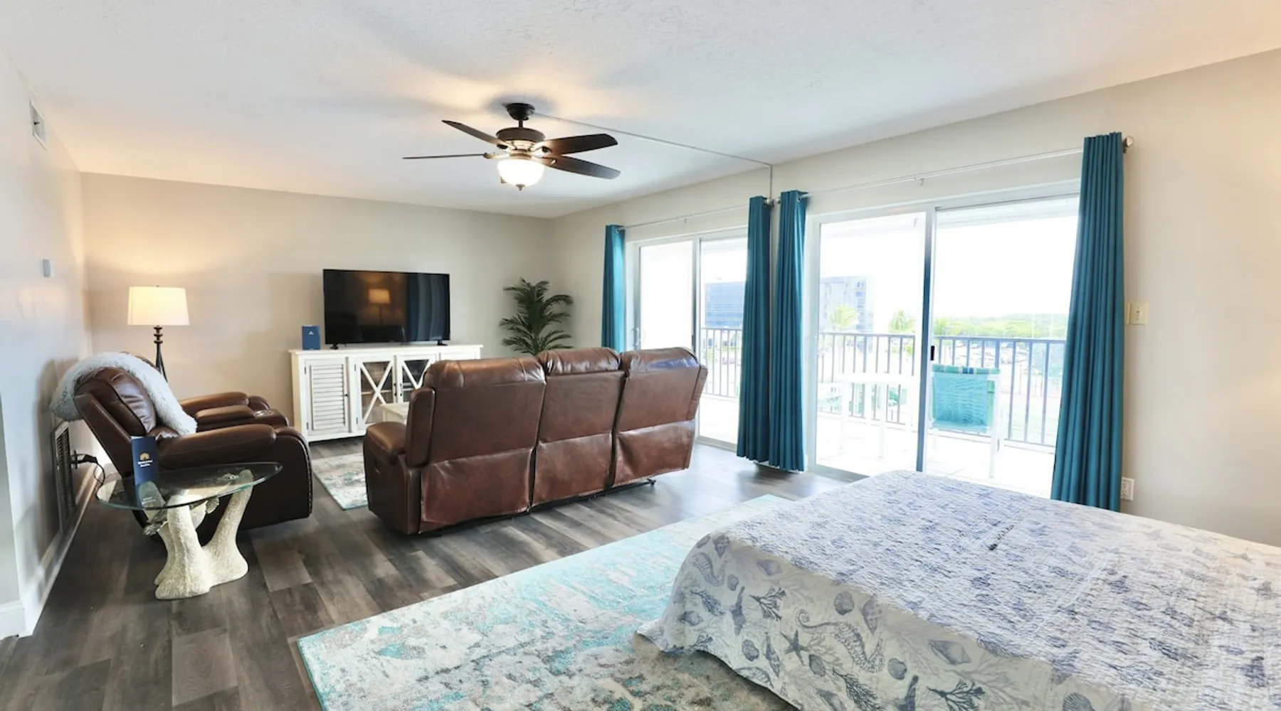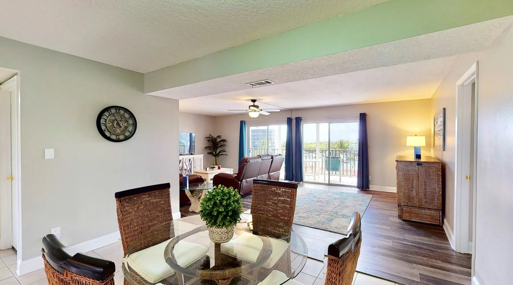 The space Ocean Breezes Stress will melt away when you step into this sweet extra-large Cocoa Beach condo, close enough to all the activities you want to do, yet allowing you to feel a million miles away from it all. Rise with the sunset and have your coffee on the spacious, covered balcony. Back inside, take advantage of the well-equipped kitchen to prepare breakfast before waking the rest of the crew. There’s room for four at the dining table and two additional barstool seats and the counter when it’s time to eat, and dish duty is a breeze with the condo’s dishwasher. Head out for the day to enjoy the complex’s shared amenities, including a pool, tennis court, and basketball court, or use the private walkway to access the beach. When it’s time to return in the evening, settle into the comfortable living space and flip on one of the three big flatscreen TVs. If you’d prefer a night out, you’re only one and a half miles north of all the restaurants and bars near Cocoa Beach Main Street. And more dining and shopping options are just across the street. Just don’t stay out too late – you don’t want to miss that spectacular sunrise. THINGS TO KNOW No dog(s) are welcome in this home. No other animals are allowed without specific Vacasa approval. Parking notes: There is free parking available for 2 vehicles. Damage waiver: The total cost of your reservation for this Property includes a damage waiver fee which covers you for up to $3,000 of accidental damage to the Property or its contents (such as furniture, fixtures, and appliances) as long as you report the incident to the host prior to checking out. More information can be found from the "Additional rules" on the checkout page. Due to local laws or HOA requirements, guests must be at least 21 years of age to book. Guests under 21 must be accompanied by a parent or legal guardian for the duration of the reservation.