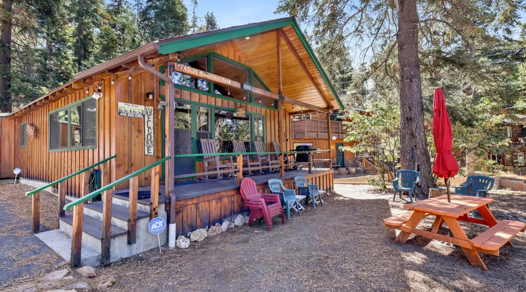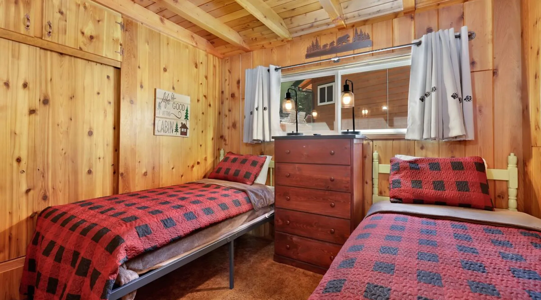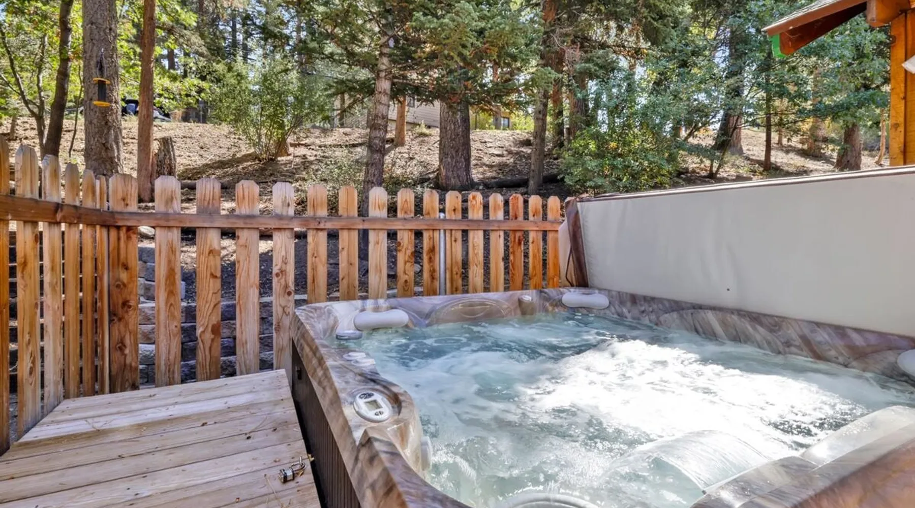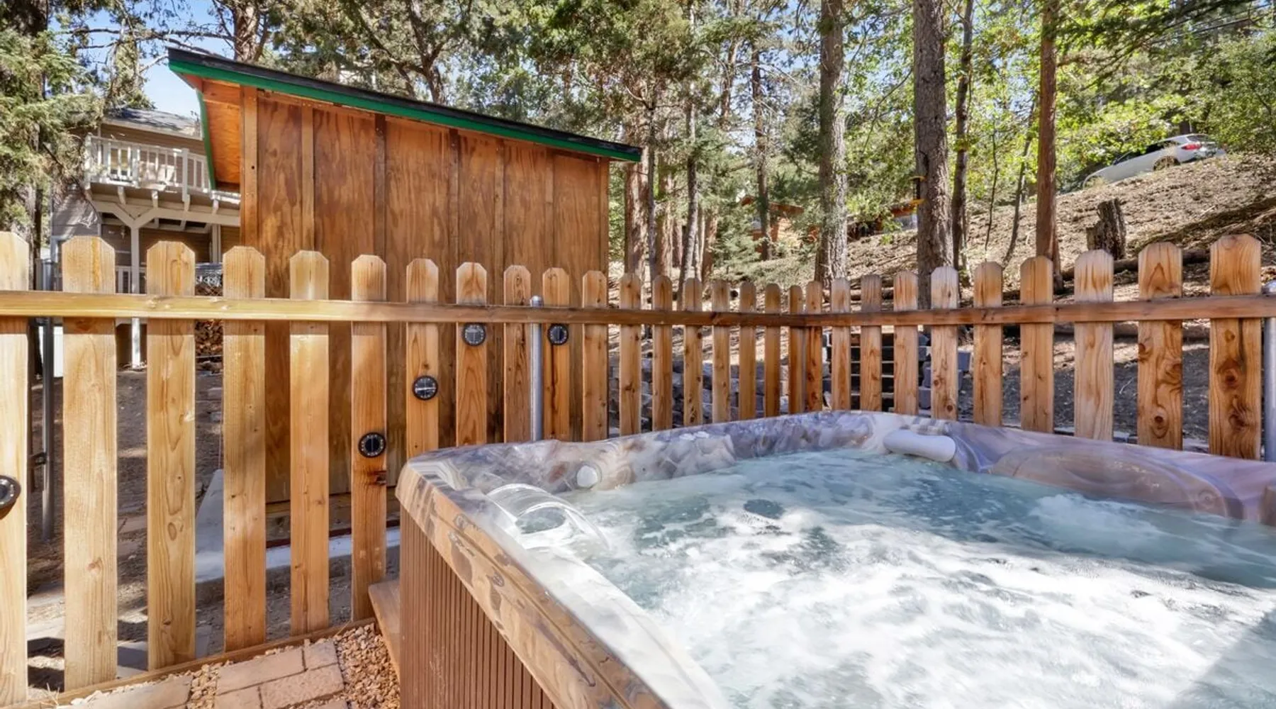 Perfect for those looking to experience the best of Big Bear our single level fully furnished Bear Cub Cabin is all that you need in your next home away from home! Boasting a secluded yet prime central location you are minutes from all local activities and especially close to Bear Mountain Resort for year round hiking, skiing, and golf plus the newly reopened Alpine Zoo is less than a half a mile away! The space Bear Cub Cabin | Cozy Resort Cabin w/ Hot Tub & Games Perfect for those looking to experience the best of Big Bear our single level fully furnished Bear Cub Cabin is all that you need in your next home away from home! Boasting a secluded yet prime central location you are minutes from all local activities and especially close to Bear Mountain Resort for year round hiking, skiing, and golf plus the newly reopened Alpine Zoo is less than a half a mile away! Featuring a spacious open floor plan with gorgeous windows for the perfect combination of natural lighting and views for watching the snow fall in the winter months. You will enter into an ultra cozy and warm living room area boasting knotty pine walls and ceilings, you will immediately feel at home. The mountain charm eludes through this cabin, with comfy sitting couches and chairs sat perfectly in front of a rock wood burning fireplace and mounted Smart TV- this is the perfect snuggle spot for those movies nights in. The open floor plan leads right into the equipped kitchen and dining areas, complete with a spacious dining table and breakfast bar stools to provide ample sitting areas for your group meals together. The chef of your group will love this cute kitchen, the pine cabinets are stocked with cookware and utensils for you to prepare your meals while a stacked washer and dryer is on hand for those wet snow clothes or long term stays. Venturing outside you will find the most serene alpine escape, with a cute front redwood deck and sitting chairs to sip your first cup of coffee in the mornings among the birds. You will also love the front deck area, covered in pine trees with a nice picnic table, rocking chairs and propane BBQ for your evenings unwinding under the stars and grilling up your catch from the lake. Stepping into the backyard, you will find a secluded private spa to end your days soaking under the stars! Bear Cub Cabin will leave you wanting to come back year after year! Sleeping Arrangements: Bedroom 1: King Bed Bedroom 2: Two Twin Beds Living Room: Queen Futon Bathroom Arrangements: Hallway 3/4 Bath (Shower Only) -Sleeps 5 -2 Cars Driveway Parking -NO PETS ALLOWED- Fines Imposed For Pets Found On Site -1,050 Total Square Feet City Permit #: VRR-2024-1629 Registration Details 2024-1629