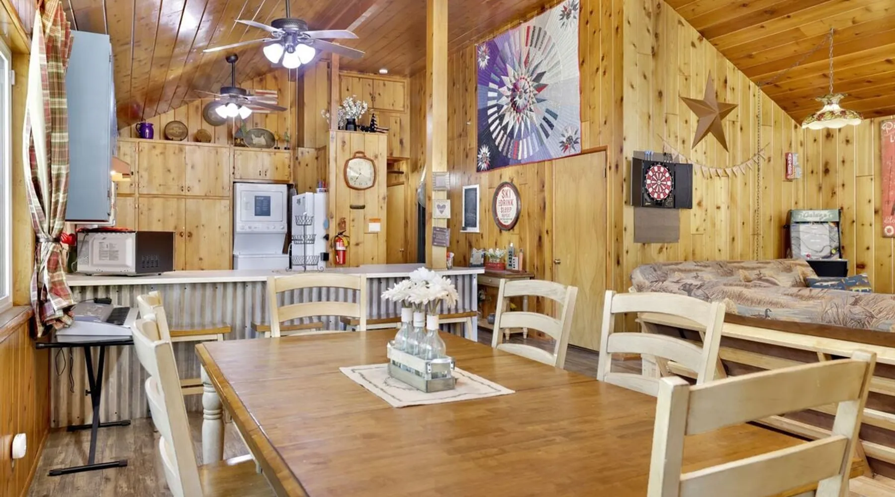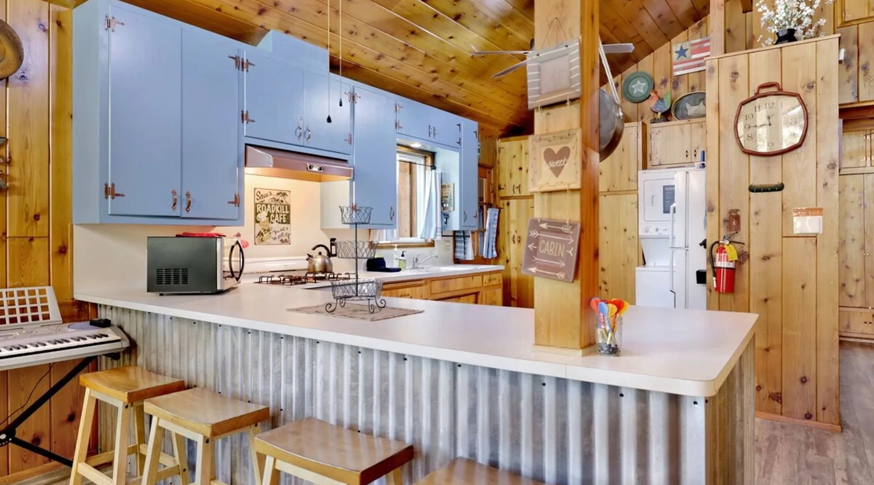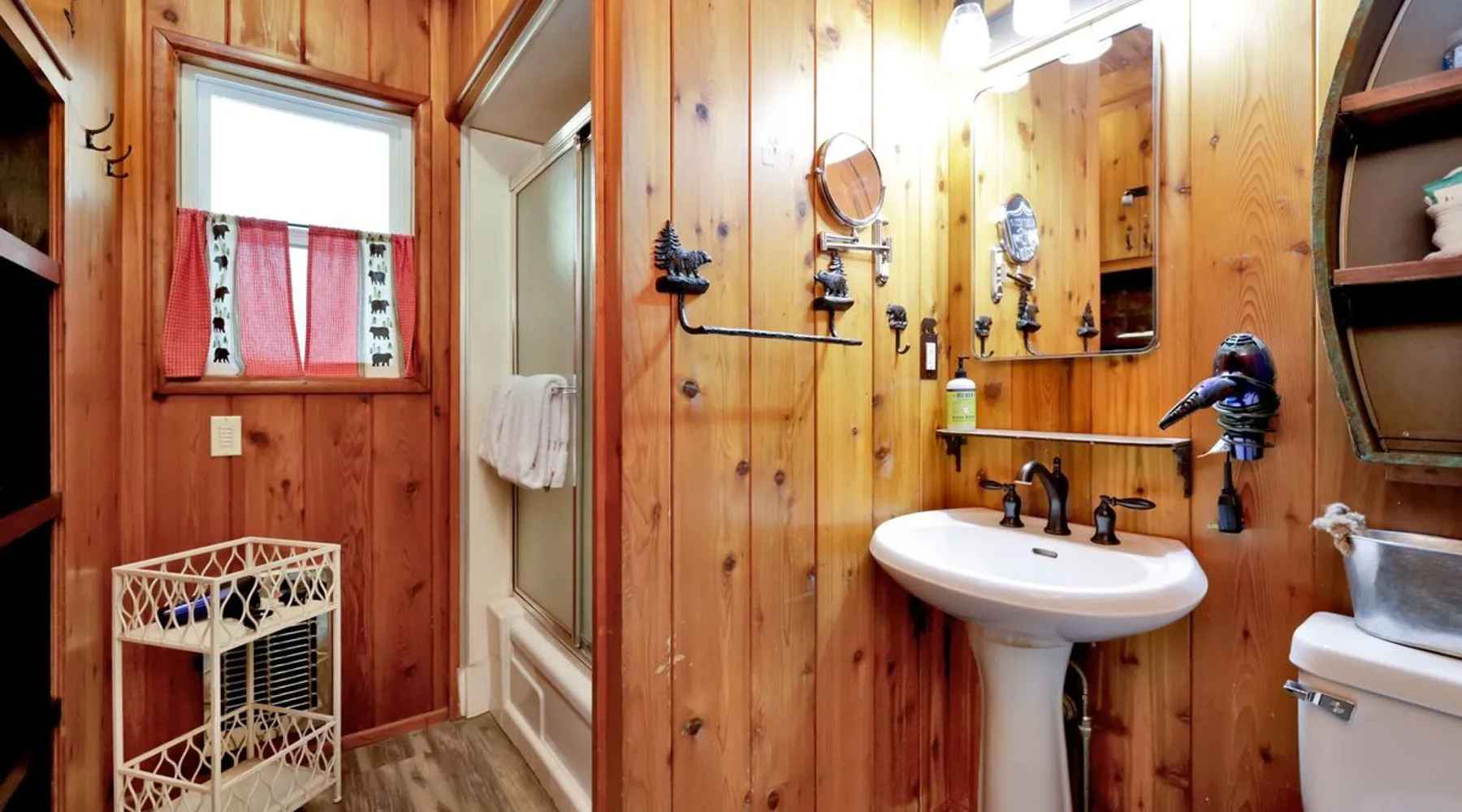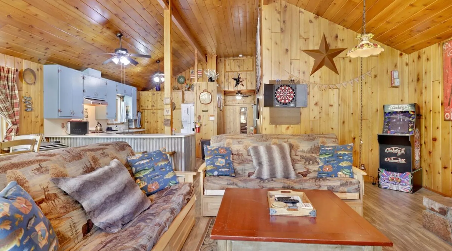Perfect for those looking to experience the best of Big Bear our single level fully furnished Bear Cub Cabin is all that you need in your next home away from home! Boasting a secluded yet prime central location you are minutes from all local activities and especially close to Bear Mountain Resort for year round hiking, skiing, and golf plus the newly reopened Alpine Zoo is less than a half a mile away! The space Bear Cub Cabin | Cozy Resort Cabin w/ Hot Tub & Games Perfect for those looking to experience the best of Big Bear our single level fully furnished Bear Cub Cabin is all that you need in your next home away from home! Boasting a secluded yet prime central location you are minutes from all local activities and especially close to Bear Mountain Resort for year round hiking, skiing, and golf plus the newly reopened Alpine Zoo is less than a half a mile away! Featuring a spacious open floor plan with gorgeous windows for the perfect combination of natural lighting and views for watching the snow fall in the winter months. You will enter into an ultra cozy and warm living room area boasting knotty pine walls and ceilings, you will immediately feel at home. The mountain charm eludes through this cabin, with comfy sitting couches and chairs sat perfectly in front of a rock wood burning fireplace and mounted Smart TV- this is the perfect snuggle spot for those movies nights in. The open floor plan leads right into the equipped kitchen and dining areas, complete with a spacious dining table and breakfast bar stools to provide ample sitting areas for your group meals together. The chef of your group will love this cute kitchen, the pine cabinets are stocked with cookware and utensils for you to prepare your meals while a stacked washer and dryer is on hand for those wet snow clothes or long term stays. Venturing outside you will find the most serene alpine escape, with a cute front redwood deck and sitting chairs to sip your first cup of coffee in the mornings among the birds. You will also love the front deck area, covered in pine trees with a nice picnic table, rocking chairs and propane BBQ for your evenings unwinding under the stars and grilling up your catch from the lake. Stepping into the backyard, you will find a secluded private spa to end your days soaking under the stars! Bear Cub Cabin will leave you wanting to come back year after year! Sleeping Arrangements: Bedroom 1: King Bed Bedroom 2: Two Twin Beds Living Room: Queen Futon Bathroom Arrangements: Hallway 3/4 Bath (Shower Only) -Sleeps 5 -2 Cars Driveway Parking -NO PETS ALLOWED- Fines Imposed For Pets Found On Site -1,050 Total Square Feet City Permit #: VRR-2024-1629 Registration Details 2024-1629