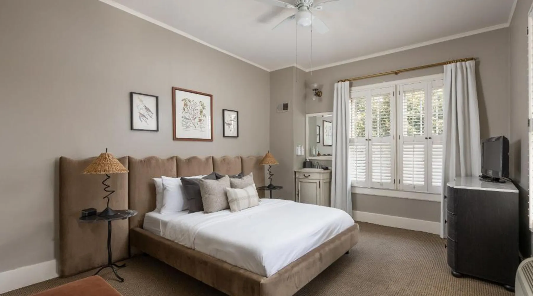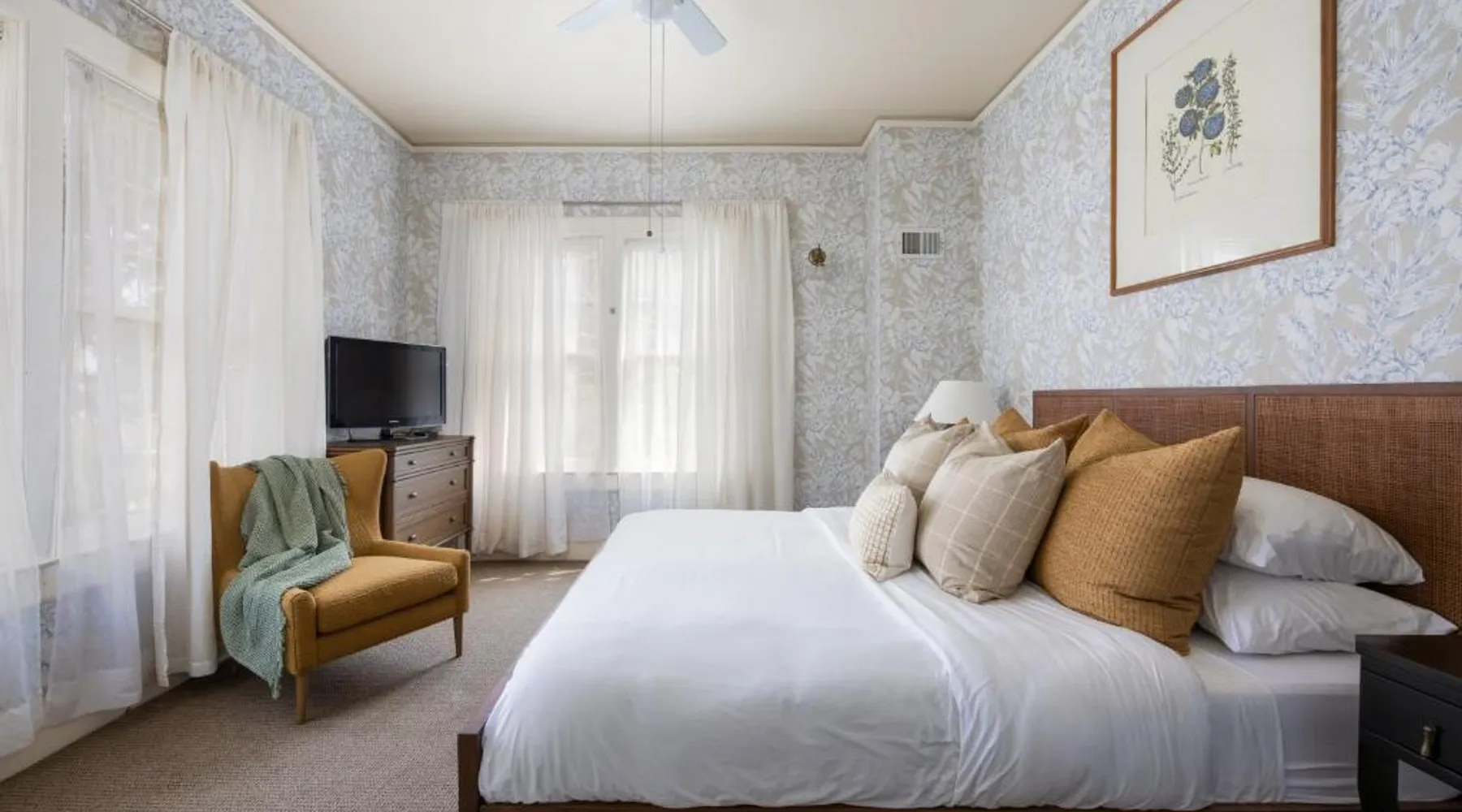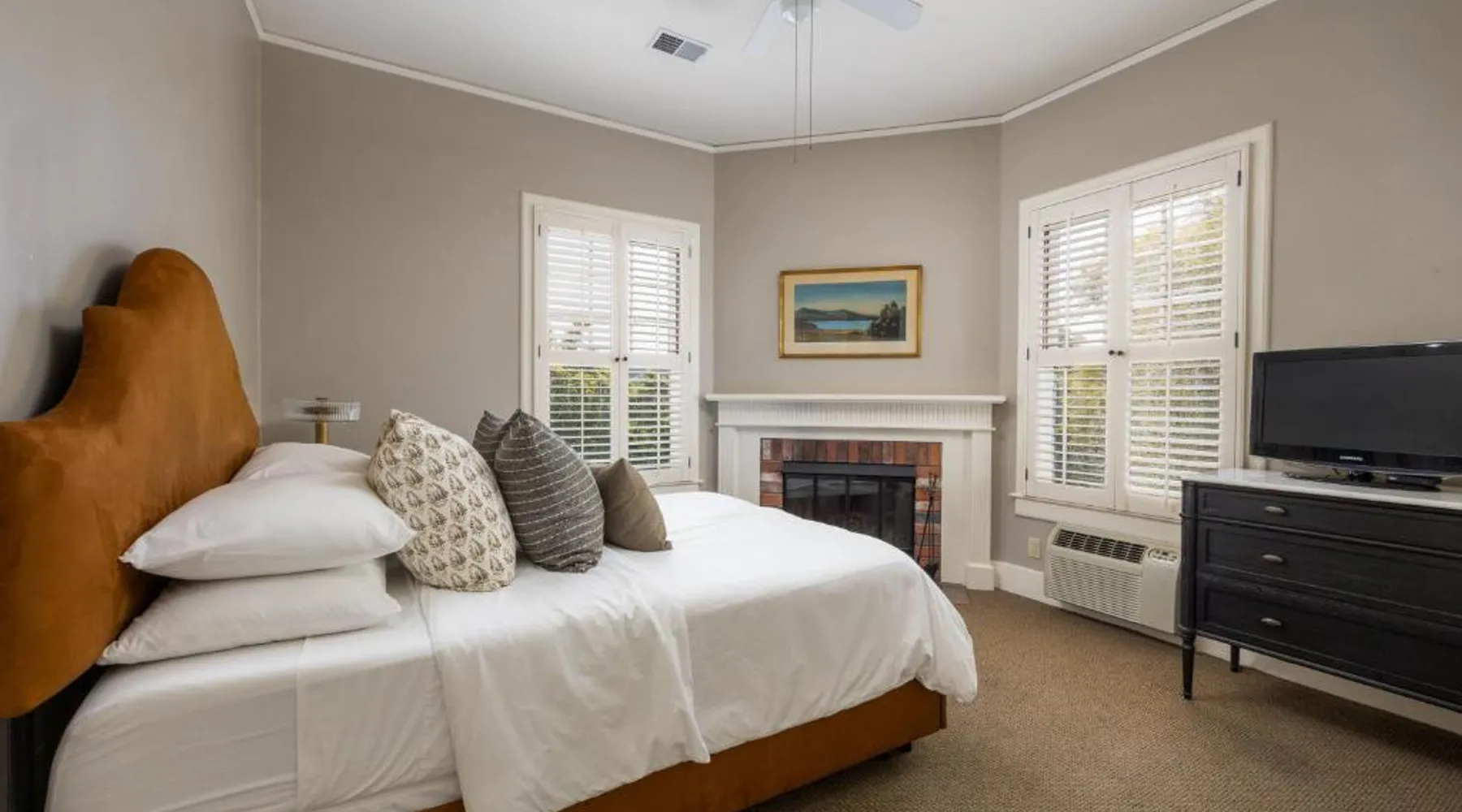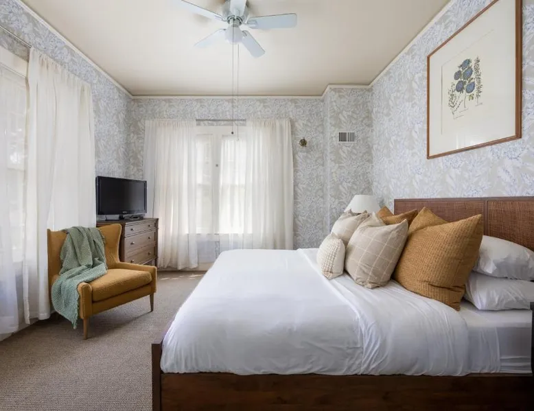 Historic Setting: De La Vina Inn in Santa Barbara is housed in a historic building, offering a unique and charming atmosphere. Outdoor Spaces: Guests can relax on the sun terrace or in the garden, enjoying sea views and a tranquil environment. Comfortable Accommodations: Rooms feature private bathrooms, air-conditioning, and modern amenities such as free WiFi and flat-screen TVs. Convenient Location: Located 8.7 mi from Santa Barbara Airport, the hotel is close to attractions like Granada Theater (1640 feet) and Santa Barbara Museum of Art (8-minute walk). Activities and Surroundings: Guests can engage in fishing, windsurfing, hiking, cycling, and snorkeling. Boating is available in the surrounding area. This double room features a bathrobe, flat screen TV, air conditioning and fireplace.