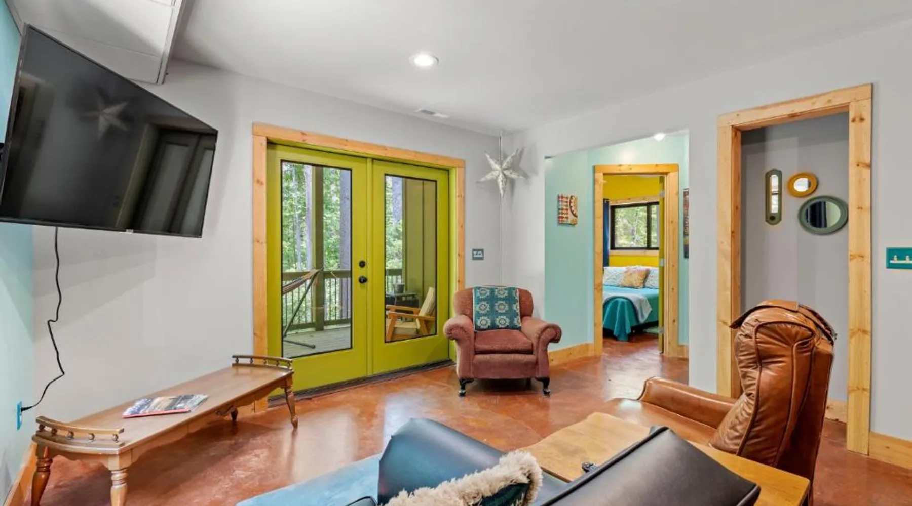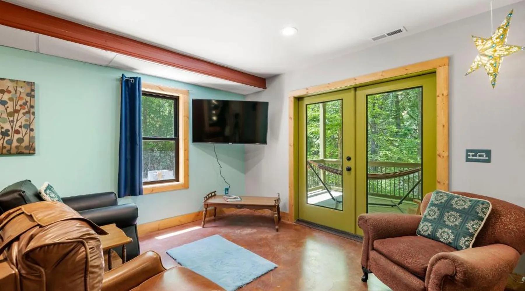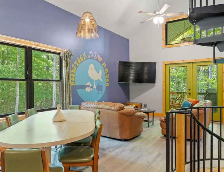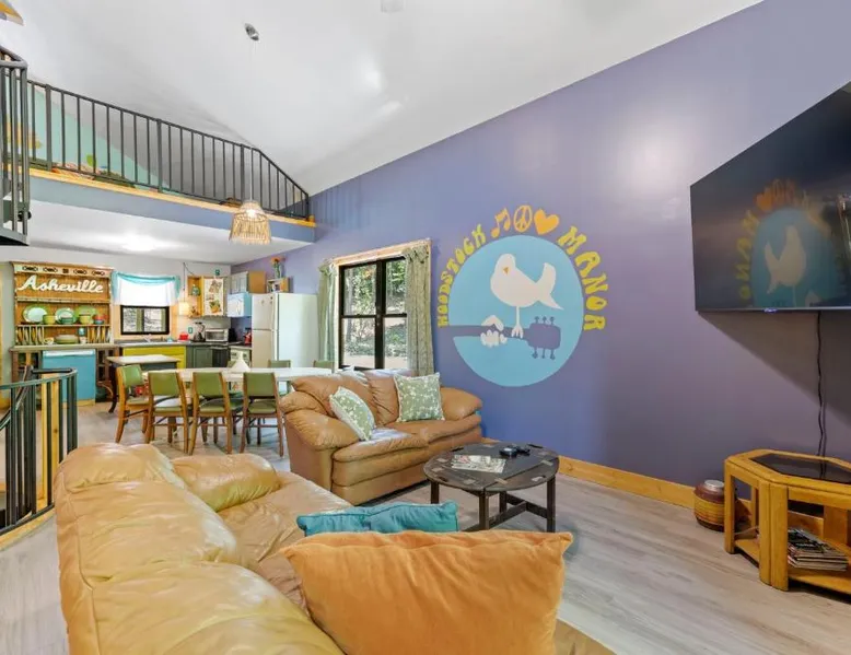 Spacious Accommodations: Woodstock Manor in Mills River offers a spacious holiday home with five bedrooms and four bathrooms. The property features family rooms, a hot tub, and an outdoor seating area. Modern Amenities: Guests enjoy free WiFi, air-conditioning, and a fully equipped kitchen with a dishwasher and microwave. Additional amenities include a washing machine, streaming services, and a barbecue area. Convenient Location: Located 6.8 mi from Asheville Regional Airport, the property is close to attractions such as Biltmore Estate (22 mi) and the North Carolina Arboretum (14 mi). Free on-site private parking is available. Highly Rated by Guests: Woodstock Manor receives high ratings from guests for its spaciousness and excellent facilities. Boasting a private entrance, this spacious holiday home also comes with 5 bedrooms, a seating area and 4 bathrooms with a shower and a hairdryer. Guests will find a stovetop, a refrigerator, a dishwasher and kitchenware in the fully equipped kitchen. The holiday home also includes a barbecue. This air-conditioned holiday home consists of a dining area, a flat-screen TV with streaming services a washing machine and a balcony. The unit has 6 beds.