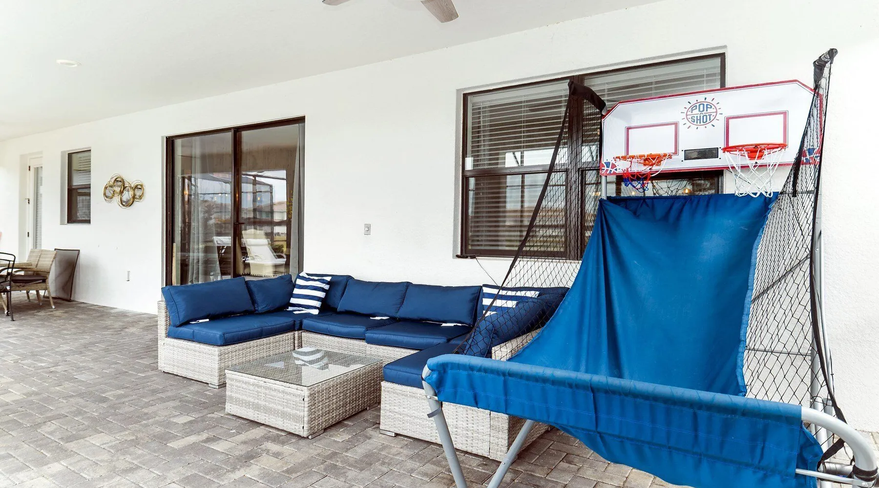 Located just 10 minutes from Disney, this modern 9-bedroom, 5-bathroom home has enough space to sleep up to 22 guests. Inside offers an open-plan living area, a fully equipped kitchen and a traditional dining area. Recreation room and home theater! Outside you will find a private screened swimming pool with a hot tub, sun loungers and an alfresco dining area which you can enjoy whilst soaking up the Florida sun. This home is located in the desirable Storey Lake Resort, just 5 miles from Disney World. Guests of this resort will have full access to a wide range of 5* amenities including a communal swimming pool, waterslides, a lazy river and a kids splash park. This family-friendly resort also benefits from a 9-hole mini golf course, sand volleyball courts, a fitness center and an impressive clubhouse serving a selection of drinks and food. Key Features * 9 bedrooms * 5 bathrooms * Sleeps 22 * Private pool * Hot tub * Game room * Home theater * Themed bedrooms * Access to resort amenities Bedrooms * Bedroom 1 - King-size bed * Bedroom 2 - King-size bed * Bedroom 3 - King-size bed * Bedroom 4 - Twin bed and double bed * Bedroom 5 - King-size bed * Bedroom 6 - Twin bed and double bed * Bedroom 7 - 2 double beds * Bedroom 8 - King-size bed * Bedroom 9 - 2 bunk beds (Twin/Twin) Living area * Open-plan living area * Fully equipped kitchen * Breakfast bar with seating * Dining table and chairs * Tastefully furnished living room with flat-screen TV and comfortable sofas * Upstairs loft area with flat-screen TV and sofas Pool area * Private pool * Hot tub (pool heat required) * Sunloungers * Covered lanai with table and chairs Home entertainment * Flat-screen TVs in living area and all bedrooms * Game room includes pool table and foosball table * Home theater includes large screen and cinema-style seating General * Air conditioning throughout * Complimentary wifi * Bedding and towels included * Private parking Laundry room * Washer and dryer * Iron and ironing board Children's equipment available for hire * Crib * Stroller * High chair * Pack and play Resort facilities Situated just 17 miles from Orlando International Airport, Storey Lake Resort is ideally located within close proximity to Orlando's major attractions. Guests at this resort can enjoy full access to a range of first-class amenities based around the impressive clubhouse 'The Hideaway'. Here, you will find a 9-hole mini golf course, volleyball courts, a fully-equipped fitness center and kayak rentals. The resort also features a large communal pool and spa, waterslides and a lazy river where guests can enjoy a 5* poolside dining and drinks service. Places of interest * Supermarket - 1 mile * Shopping mall - 2 miles * Disney World - 5 miles * Seaworld - 7 miles * Universal Studios - 10 miles * Legoland - 37 miles * Airport - 17 miles * Beaches - 69 miles Contained in the information pack that is sent prior to arrival.