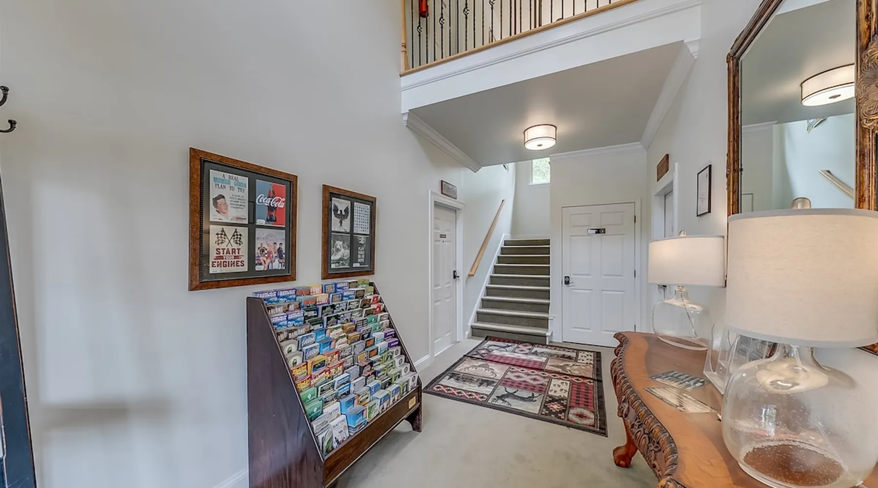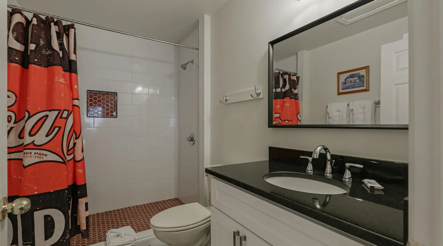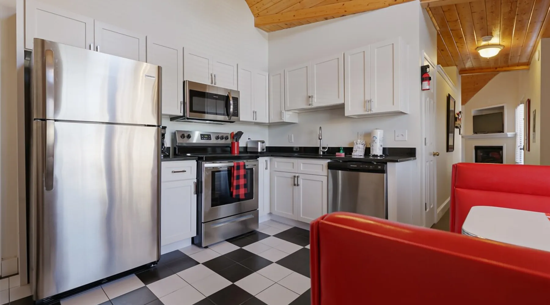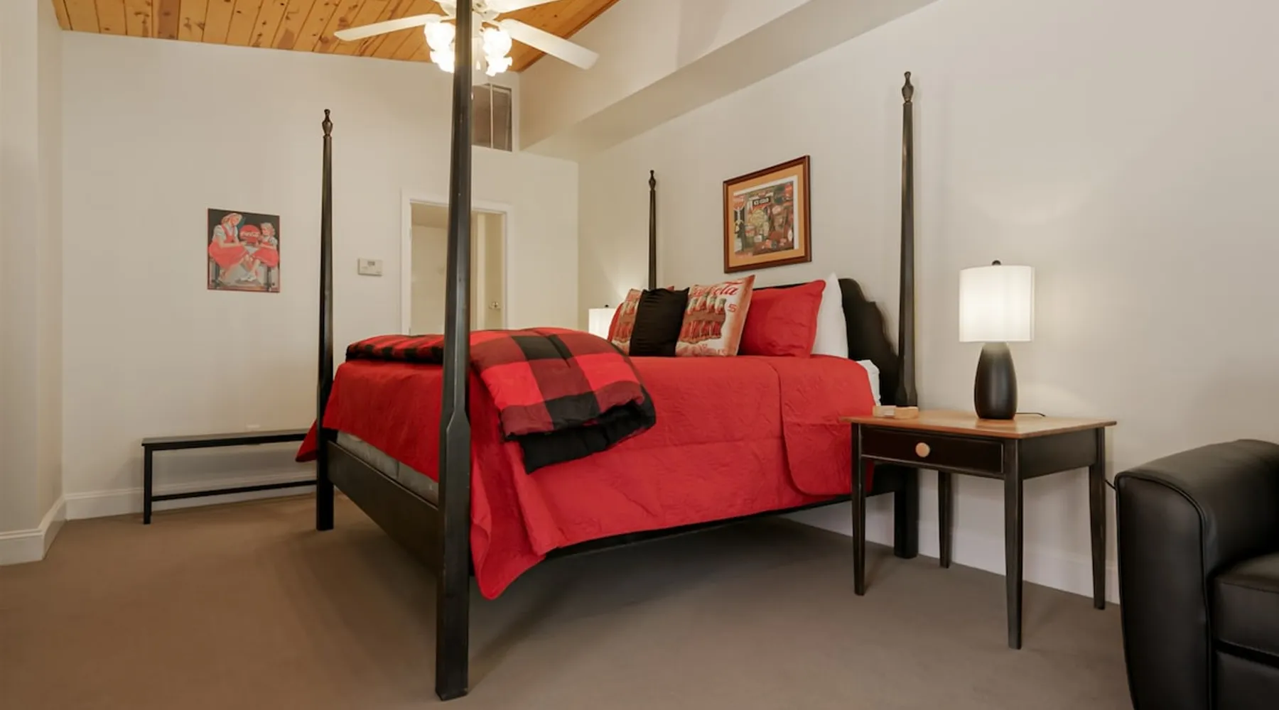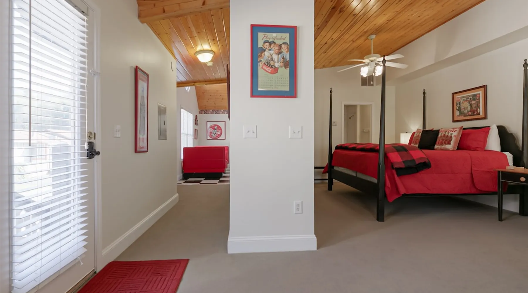 Enjoy this cozy Coca Cola Themed riverside condo minutes away from everything Helen has to offer. The space You are in the heart of all Helen has to offer. In the summer, you can walk to the access location for the Chattahoochee River Tubing. When you get back from tubing, grab a bite at the Pink Pig BBQ on your way back to the condo, or choose from one of the many other restaurants nearby. Sit out on the deck and enjoy the peacefulness as you watch the river flowing by. Grill out on the provided grill while you enjoy a glass of wine from one of our local wineries. There is so much to see and do in Helen. For the kids (and adults), there is the Alpine Coaster and several locations to play mini golf. Enjoy strolling the streets of Helen - whatever the season - and do some shopping or grab a funnel cake. Helen is a great location for family fun anytime of year. Come & visit during Oktoberfest where you can try German foods & beer, listen to authentic German music, and have the time of your life. If you prefer to enjoy nature and the more serene side of the area, there are some amazing hiking trails around Helen and outstanding waterfalls: Anna Ruby Falls near Unicoi State Park, Duke Creek Falls, or Raven Cliff Falls. There is something for everyone in Helen; make it your next vacation! Misc. - 2nd Level Unit - Coca-Cola Themed Interior - Parking for 1 Vehicle Living Room - High-Speed WiFi throughout unit - Fireplace with Gas Logs - Vaulted Tongue & Groove Ceilings - Smart TV with Streaming (Sign-In with your own accounts) - Leather Couch - Leather Recliner - Easy Access to Back Porch Overlooking River Bed Area - 1 King Bed - Dresser Bathroom - Essentials Provided - Single Vanity with Granite Countertops - Tiled Walk-In Shower Kitchen - Fully Equipped with Essentials Provided - Granite Countertops - Diner-Style Checkerboard Tiling - Stainless Steel Appliances - Refrigerator / Freezer - Oven / Range - Microwave - Toaster - Drip Coffee Maker - Coffee Mugs - Flatware - Glassware - Pots & Pans - Cookware - Stacked Washer & Dryer Dining Area - Diner Style Coca-Cola Themed Booth Dining Table Back Porch - Views of Chattahoochee River - Patio Table Common Area - Propane Grill (Propane Provided) Other things to note 25+ age requirement for lead guest. No exceptions. This property is not pet-friendly. No exceptions. Digital rental agreement will be required to sign and complete after property is booked. Tubes/kayaks not supplied. Georgia fishing license required for fishing on the property. This unit is on 2nd level of building. Parking available for 2 vehicles.
