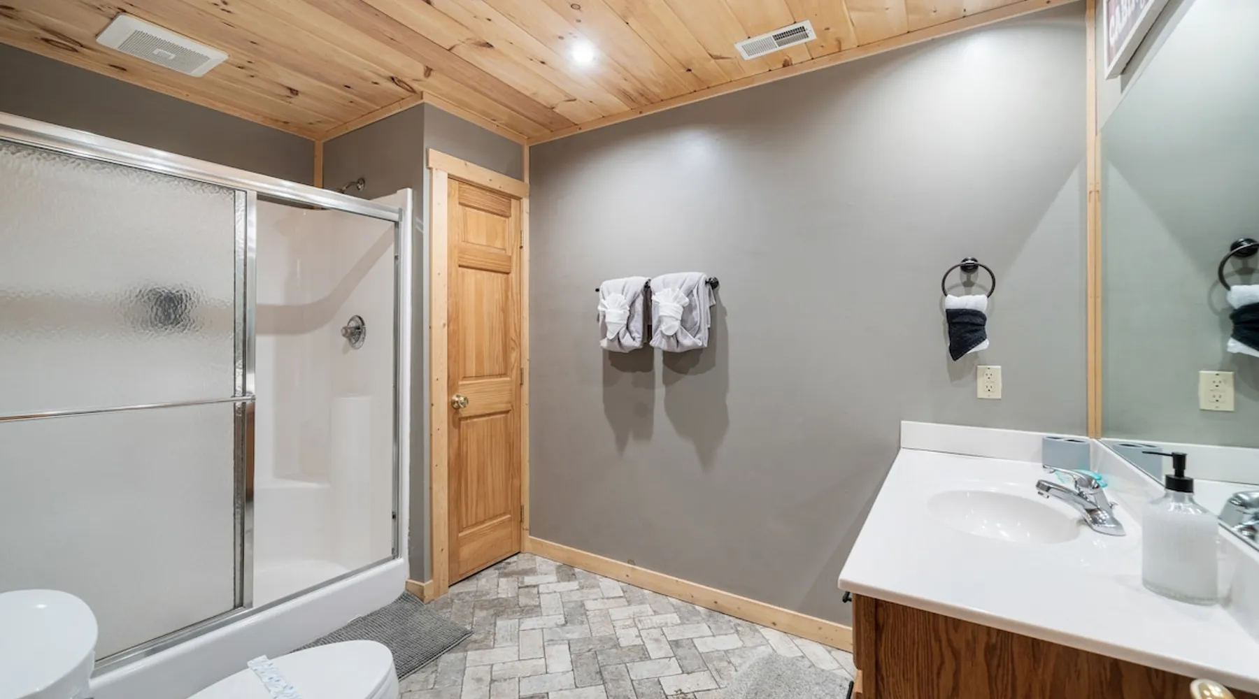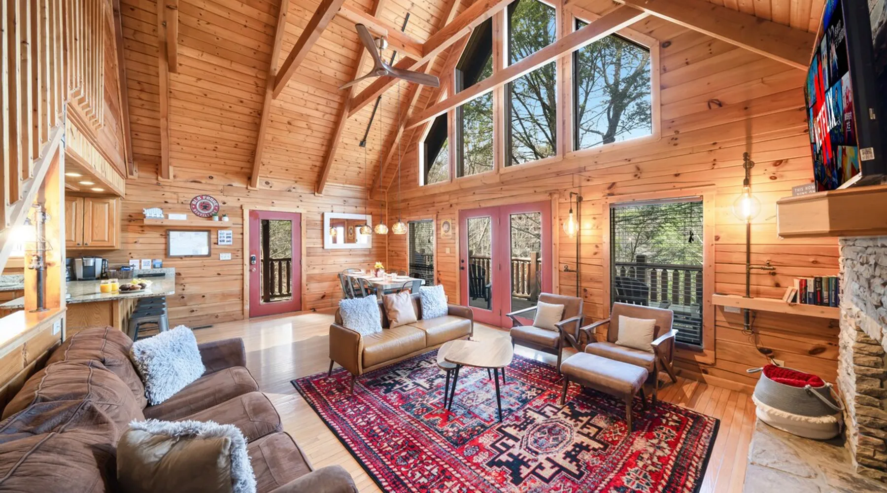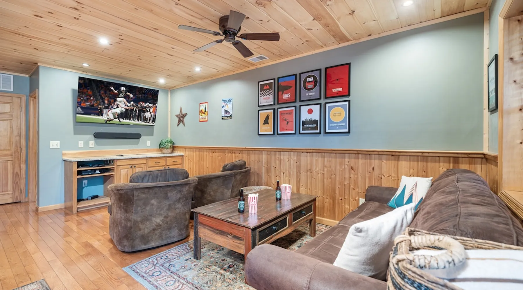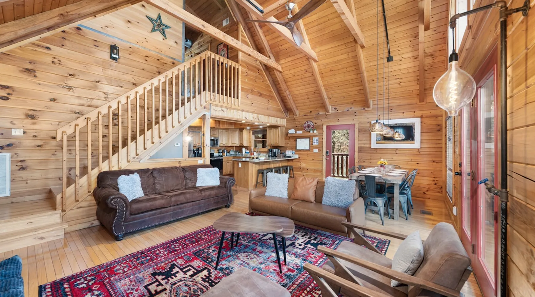 • LOCATION! centrally located in Pigeon Forge (Smoky Mountains) • 2 min drive to Pigeon Forge Parkway! • 8 min drive to Dollywood • Hot tub • Game Room w/ billiard table & arcade games • Community pool just 2 min walking distance from the cabin • 4 bedrooms / 4 bathrooms • Sleeps up to 14 guests • Pet friendly (up to 3 dogs) • Located within the renowned Brookstone Village Resort • Parking for 3+ vehicles • Fully stocked kitchen • All TV’s with 125+ channels and High Speed Wifi • SuperHost The space "Forge Ahead" is a Luxury 2,200 sqft log Cabin located in the beautiful Brookstone Village Resort with access to a community pool. Follow us on FB or Insta: smokymoutainsretreats ► COMMUNITY POOL Community pool is conveniently located just 3 minutes walking distance from the cabin. It is open from May-September. ► BEDROOMS This three-story cabin accommodates up to 14 guests. Main Level: - 1 Master bedroom with a King size bed & an in-suite bathroom (sleeps 2). - The living room can turn into a sleeping space with the queen sofa bed (sleeps 2). Lower Level: - 1 bedroom with a King size bed and a full bathroom (sleeps 2). Upper Level: - 1 bedroom with a Queen size bunk bed (sleeps 4) and an in-suite bathroom. - 1 bedroom with a Full size bunk bed (sleeps 4) and a bathroom. ► KITCHEN The kitchen is equipped with all the cookware, cutlery, and appliances you need to prepare delicious meals during your stay. Refrigerator, stove, microwave, dishwasher, toaster, blender, tea kettle, Crockpot, Keurig Duo with carafe & single serve pod coffee maker. The dining table comfortably seats eight, and there are four additional stools at the large kitchen island so everyone in your group can enjoy meals together. ► OUTDOOR GRILL There is a private Gas Grill. We provide the Gas. ► OUTDOOR SPACE After a day of hiking and sightseeing, you have a lot of options to chill: *soak in the private hot tub *kick back in the rocking chairs and enjoy the fresh mountain breeze *take a dip in the pool. Community pool is only 2 min walking distance (open May to September). ► GAME ROOM All ages will fall in love with this fun space! The room has a billiard table, an arcade game, a lounge area with a large TV where you can watch your favorite shows/games. There is also an assortment of board game & an Xbox. ► PETS We are a pet friendly cabin and you can bring up to 3 dogs as long as they are house broken/potty trained. We welcome all breeds of dogs and have no restrictions on weight. The pet fee is $175 for the whole stay for up to 3 dogs (the fee is not per dog). ► INTERNET/CABLE High Speed Wireless Internet Smart TVs in the living room/game room as well as in each bedrooms. ► LAUNDRY Full size washer and dryer. ► AMENITIES Our cleaning service provides start-up supplies including: paper towels, dish soap, dish washer soap, kitchen trash can liners, toilet paper, hand soap and bathroom trash liners. Depending on the length of your stay, you may need to purchase additional items when the initial supply runs out. ► PRIVATE PARKING Flat parking for up to 3 vehicles in the driveway. ► ENTRY The front door is equipped with an electronic keypad, we will send a personalized door code. ► SMOKING No Smoking indoors. You can smoke on the decks though. We will always strive to obtain a 5-star ★★★★★ review from all our guest and can’t wait to host your next holidays and make them UNFORGETTABLE! *** Please favorite the property by clicking "save" or "heart shape" in the upper right-hand corner, this will help you find it again and share with others *** Guest access Guests will enjoy the entire cabin/private hot tub and have access to the community pool (May to September). Other things to note For security reasons, we have placed 2 outside cameras, one is located on the entry porch facing the entrance door and one is located facing the driveway. Wyze cameras in place and actively recording. Wyze cameras are activated by motion and will record anyone that walks in front of them. These recordings are saved and can be reviewed and shared with the booking platform. If we believe that house rules are being violated, we have the ability to access these cameras in real time. Please remember that you are staying in our home away from home. Please treat our cabin with respect. "Out of our control" problems could arise, please note we will do everything in our power to resolve any issue ASAP, as your comfort means everything to us.