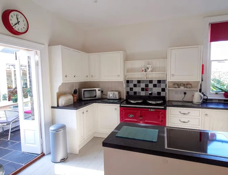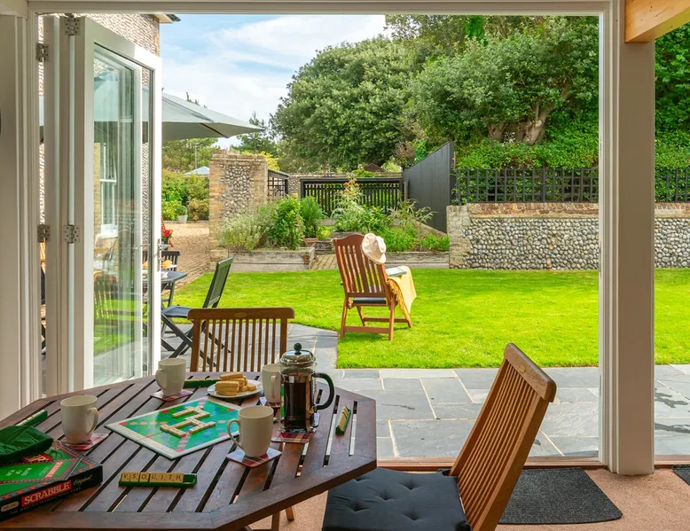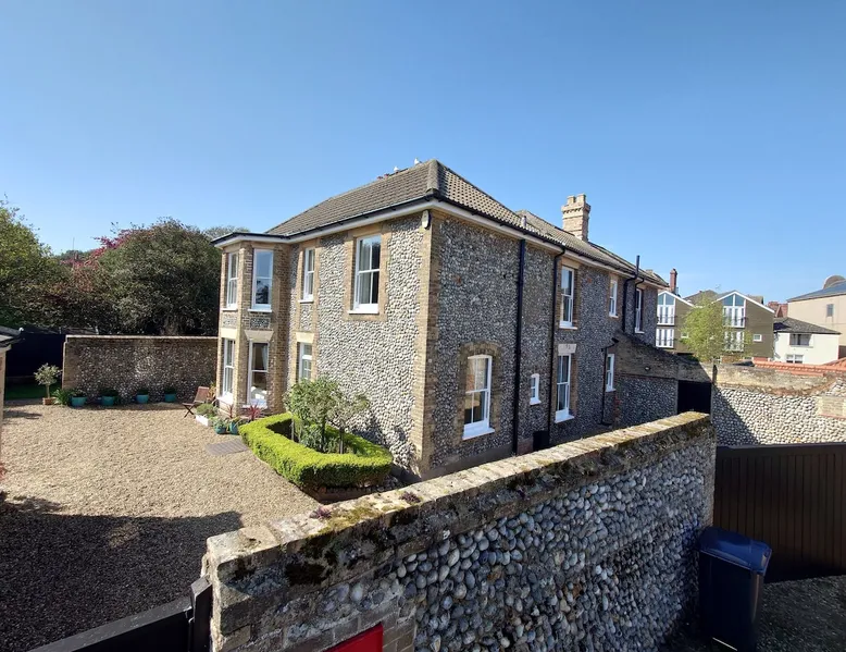 Award winning luxury! Magnificent seaside home perfect for memory making with family and friends. The heart of the house is the enormous 70m2 garden room, a spectacular space for 12 guests to relax and play. opening onto beautiful gardens. This cottage offers a snug with wood burner, chef's kitchen, dining room and conservatory. Amazing location - beach, pier, shops, pubs, restaurants - all just steps away. Ground floor King bedroom with access to step-free wet room. Secure parking 4/5 cars. The space North Cottage Cromer: Award Winning luxury and exclusive beach front location with sea views. Winner - Self Catering Accommodation of the Year 2025 Visit Norfolk and Suffolk Tourism Awards. Welcome to North Cottage Cromer a luxurious and exceptionally spacious seaside holiday cottage designed for large families or groups of friends to holiday or celebrate together. Sleeping up to 12 guests in 6 generous bedrooms. The house and garden are always pet-free and spotlessly clean. The most incredible asset is the location. North Cottage is set entirely within the tranquil and secluded grounds of North Lodge Park. You're just a short, safe walk (no roads to cross!) through the park to Cromer's award winning sandy, Blue Flag beach. What's more all Cromer's shops, cafes and attraction are just footsteps away beyond the park. You can enjoy peace and privacy in this very special location, but you're still in the heart of Cromer. Key features: Sleeps 12 across 6 large bedrooms, 3 king rooms, 1 double and 2 twin rooms. 1 king bedroom is on the ground floor with step free access to the wet room. 3 shower rooms, including 1 en-suite (master bedroom) with a bath. 4 elegant, luxuriously furnished, reception rooms - so there's plenty of space for everyone! The enormous (70m2) Garden games room is the heart of the house. A huge light filled space with comfortable seating for all 12 guests. This room opens directly onto the lawned gardens and terrace - perfect for indoor and outdoor pleasure. Entertainment: 55 inch Sony smart TV, DVD and video streaming via your apps. Games: Professional quality table football, classic board games, jigsaws, chess, children's games, and garden games (badminton, boules, croquet). Second living room come snug with wood burner, three comfortable sofas and a 50 inch Sony smart TV. A perfect peaceful escape for quieter evenings to retreat from the fun and games. Dining Room - links directly to the kitchen, so no one's left out while meals are prepared. Features an oval oak dining table with seating for 12 - ideal for celebratory feasts. All china, glass and cutlery for 12 provided. Chef's kitchen - fully equipped for all kinds of cooking, and featuring high quality appliances: AEG electric multi-function oven, AEG induction hob, Liebherr fridge / freezer, NEFF dishwasher and a Panasonic combination-microwave. 3 oven gas AGA is available (by request only at additional charge) from Christmas to Easter only. Conservatory - a bright sun trap, filled with many exotic plants, offering an additional dining table seating 8 adults with an additional bistro style 2 seater table. There's also comfy seating for cocktails, morning coffee or relaxing. All bedrooms feature light restricting curtains, white cotton linen, and hypo-allergenic bedding, blankets, cushions and additional pillows. All the bedrooms have original sanded floor boards covered with rugs, and are furnished with wardrobe, drawers, bedside reading lamp, chair, and retro alarm clock. Bedrooms: Master Bedroom - king bed and en-suite. Sea views. Midnight Blue room - king bed, garden view. Red Room - classic double bed (4'6') sea view. Sky Blue room - twin, 2 x 3 foot single beds, partial sea view restricted by trees in summer. Silver room - twin 2 x 3 foot single beds, view across the park of the boating pond. Green bedroom - ground floor king with step free access to the wet room along the hallway. Garden: the extensive garden is completely walled and fenced, offering a safe and secure space for children. Enjoy garden games (provided) on the lush lawn, relax on the benches and steamer chairs, or dine at the tables and chairs located around the gardens (note -garden furniture is only available during the warmer spring, summer and autumn months of April - October). Parking: It's rare to find a house so close to the beach with as much parking as we provide. Off-road parking is on our gravel driveway, secured by an electric parking gate. The driveway has space for up to 5 cars, or 4 large SUVs. Note parking requires reversing. EV charging is not available at the house, but is available nearby at Morrisons supermarket. Strictly no parking in North Lodge Park itself. There is additional street parking nearby if required. Security: for your peace of mind there are 2 external security cameras focussed on the 2 entrance gates. Our North Lodge Park advantage: Step outside the gate and you're in historic North Lodge Park - once the private estate that belonged to North Cottage and North Lodge. Amenities in the park include a cafe, rose garden, children's play area (at the furthest end across the wooden walkway) with swings and play equipment. Most importantly, the park provides super safe and convenient access to Cromer's Blue Flag beach with no roads to cross! We even provide a beach trolley to wheel your stuff there. The park also has a lift to promenade level at the Rocket House, again, this is just outside the house. Guest access Access to the beach is through the park outside the house - there are no roads to cross. Cromer is pedestrian friendly so you can park the car on our drive at the start of your stay and forget about it. All shops and restaurants are within easy walking distance. Cromer has a railway station served by Greater Anglia trains from Norwich for connections nationwide. Greater Anglia's fleet is modern, air-conditioned, with wi-fi and they're one of the most punctual operators on the train network. A highly recommended 