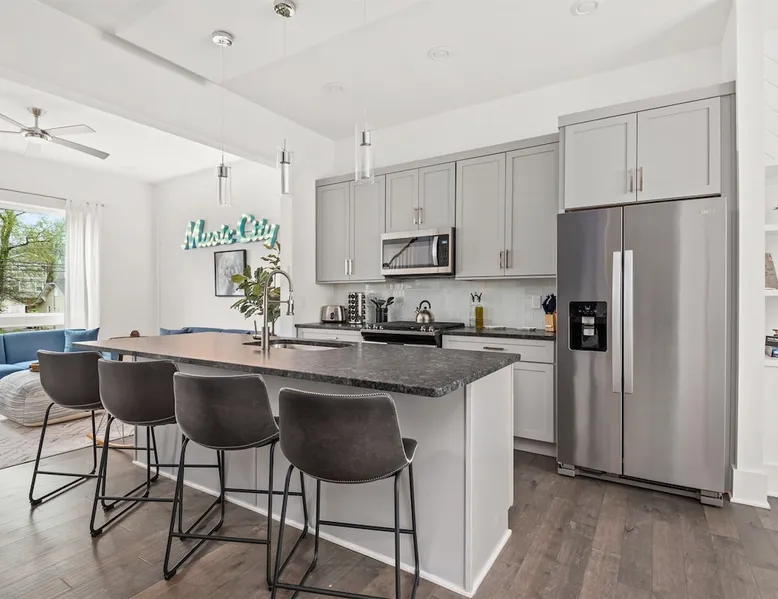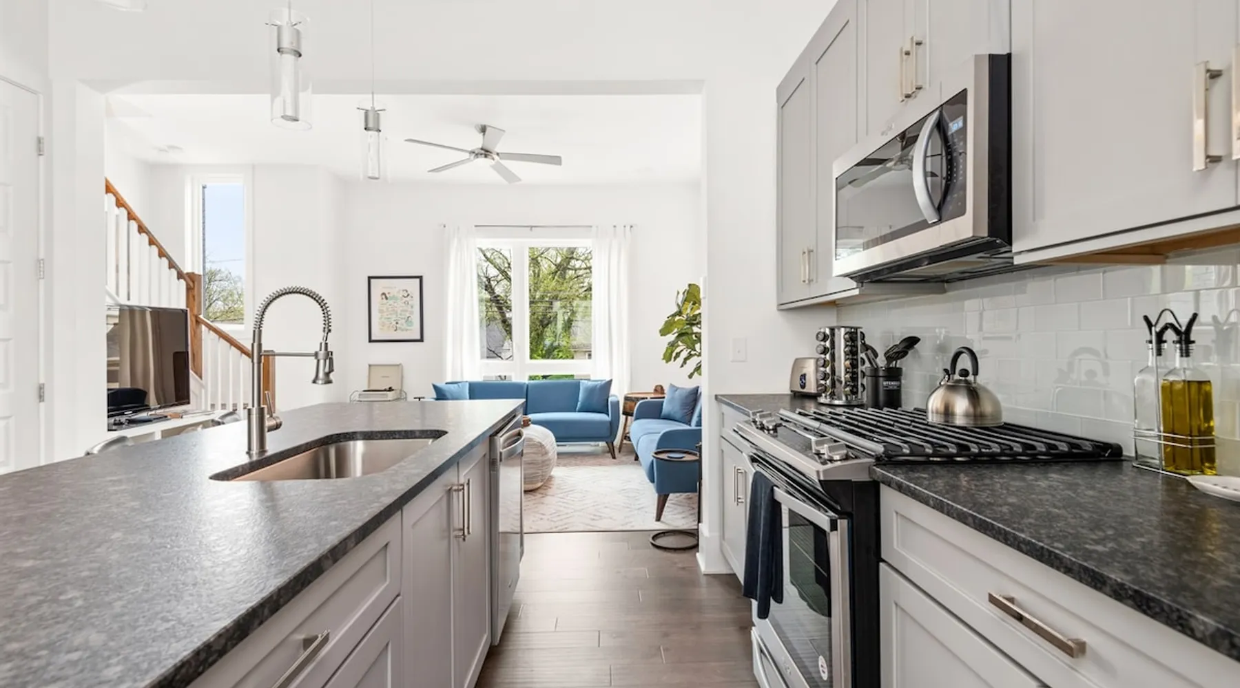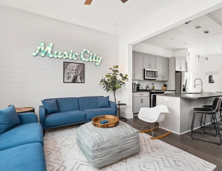 🛏️ 3 bedrooms + twin sofa beds—sleeps up to 10 comfortably 🛁 Spacious king suite w/ huge walk-in shower + 2.5 baths total 🍳 Chef-ready kitchen + open living space w/ vinyls & board games 🐾 Pet friendly! Up to 2 well-behaved dogs (small nightly fee) 🚗 Private garage with EV charger 🎶 Minutes to East Nashville hot spots & downtown attractions The space Welcome to Dolly’s Escape—a vibrant three-story townhome in the heart of East Nashville and part of the ComeVisitNashville collection of homes. Whether you’re here to explore Music City or unwind with friends and family, Dolly’s Escape is your stylish, comfortable home base for it all. ROOM TO RELAX 🛏️ Primary Suite (3rd Floor): King bed, Smart TV, and en-suite bath with a massive walk-in shower. 🛏️ Bedroom 2 (3rd Floor): Two queen beds and a full bathroom with a tub/shower combo. 🛏️ Bedroom 3 (1st Floor): Queen bed for a cozy, private setup. 🛋️ Extra Sleeping Space: Living room sofas convert into twin beds—perfect for kids or additional guests. 🌙 Sleep Soundly: Blackout curtains and white noise machines in every bedroom for peaceful nights. GATHER & UNWIND 🏡 Open-Plan Living (2nd Floor): Ample seating, large Smart TV, and board games for nights in. 🎶 Vinyl Collection: Set the mood with classic records and your own Nashville soundtrack. 📺 Smart TVs: In every bedroom and living room—just bring your streaming logins. 🚽 Half Bath: Conveniently located off the main living space. COOK & CONNECT 🍳 Fully Stocked Kitchen: Includes dishwasher, microwave, coffee maker, toaster, and all the essentials. 🍷 Dining Options: Eat at the bar or gather around the dining table—perfect for shared meals and morning coffee. EXTRAS THAT COUNT 🧺 Essentials Provided: Towels, hair dryers, ironing board, and washer/dryer for your convenience. 🐾 Pet Friendly: Up to 2 well-behaved, potty-trained dogs welcome for a small nightly fee. (See House Rules.) 👶 Little Ones Welcome: Pack ’n play, high chair, baby bath, and children’s books provided. 🔌 Private Garage: Fits 2 compact cars or 1 larger vehicle and includes a built-in EV charger. (Garage parking only.) EXPLORE EAST NASHVILLE & BEYOND 🎸 Live Like a Local: Just minutes from the best of East Nashville—local eats, shops, and music. 🚗 Easy Access: Quick ride to Broadway, the Ryman, Nissan Stadium, and other top spots in Music City. YOUR NASHVILLE ADVENTURE AWAITS Whether you’re here for a getaway with friends or a family trip to Music City, Dolly’s Escape is thoughtfully designed to make your stay easy, fun, and memorable. We can’t wait to host you! Guest access Guests have complete and private access to the entire townhome as well as the garage, with parking for 1-2 cars (depending on size). We provide starter supplies of toilet paper, paper towels, coffee/creamer/sugar, hand/dish soap, and toiletries. Other things to note Our nightly rate covers 8 guests or less. Additional guests (up to our max occupancy of 10) are charged at $20 per person per night. Accurate headcount must be confirmed no later than 24 hours prior to arrival. Our max occupancy is firm & we cannot accommodate groups larger than 10. We welcome potty-trained, well-behaved dogs, up to 2 dogs per stay, for a fee of $25 per night per dog. Dogs must remain on-leash at all times outside the rental. Please let us know ahead of time if you plan to bring pets. (More details in House Rules.) Guests are required to sign a digital rental agreement within 48 hours (or ASAP if you’re arriving in the next 5 days). Failure to do so may lead to guest-initiated cancellation under the agreed policy. Standard check-in is 4 PM or later, with check-out at 11 AM. In some cases it may be possible to arrange for earlier check-in or later check-out for an additional fee. For your safety and ours, two cameras are actively recording: one at the garage doors and a doorbell cam at your entry. We are fully permitted and abide by all local and state regulations governing short-term rentals. Registration Details 2022013862