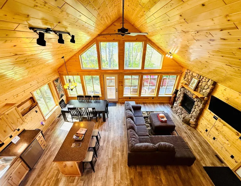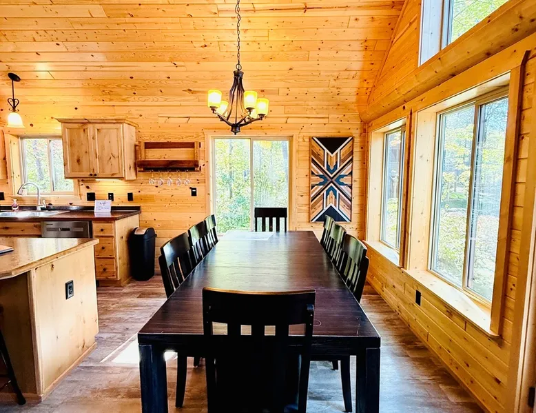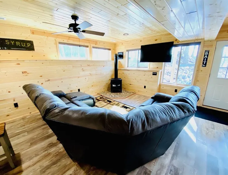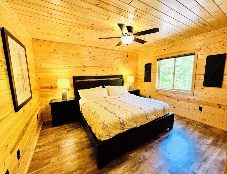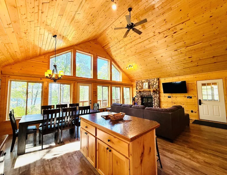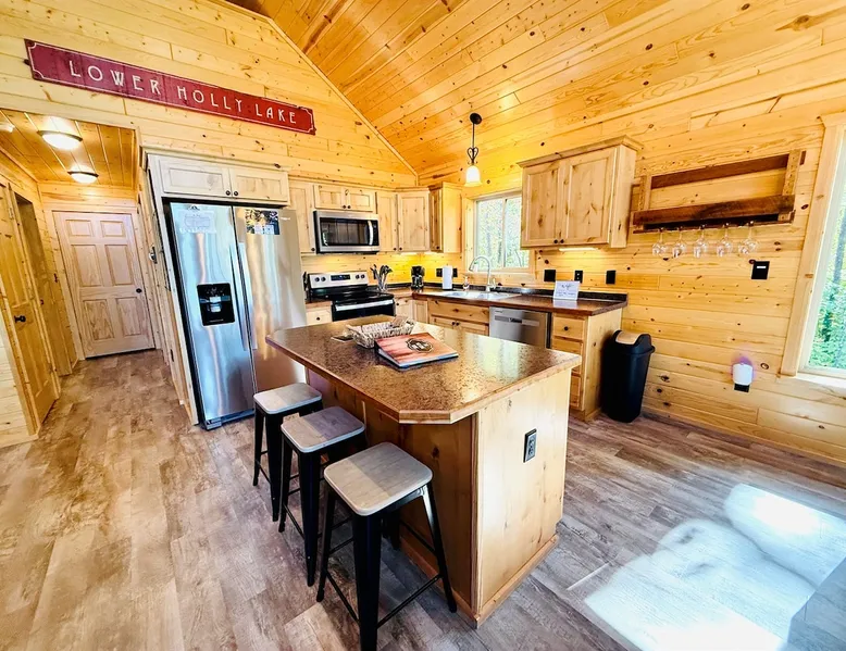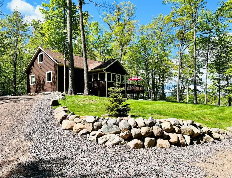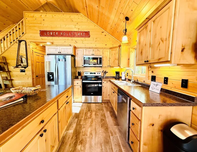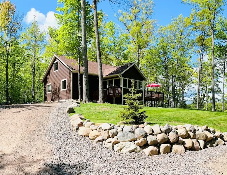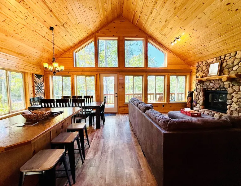 Welcome to Cattail Cottage, at O'Connell Cabin Company, your cozy retreat nestled on the shores of Lower Holly Lake, in Stone Lake, Wisconsin. This open-concept cabin, built in 2021, boasts a perfect blend of modern comfort and rustic charm. The space Cabin Highlights: • Spacious Living: With 4 bedrooms, 2 full bathrooms, and a finished walk-out basement, this 2,000 sq ft haven comfortably sleeps 8 guests. The cozy ambiance, complemented by central air and heating, ensures a delightful stay year-round. Note: The 4th bedroom is an open loft. Great for kids. Check out the photo gallery! • Scenic Views: Take in the fantastic view of 48-acre Lower Holly Lake from the large deck or unwind in the screened-in porch. The beauty of the lake is right at your doorstep. • Entertainment Galore: The fully finished walk-out basement is a game-lover's paradise, featuring a ping pong table. For those seeking relaxation, the gas fireplaces on the main floor and in the basement provide warmth and charm during the winter months. • Full Kitchen: The complete kitchen, with a spacious center island, is a chef's dream. The dining table, seating 10, is perfect for shared meals and memorable conversations. Perfect Location: Cattail Cottage is ideally situated just a 10-minute drive from the charming town of Stone Lake. Explore pubs, antique stores, a micro-brew/coffee house, and a wine bar, all contributing to the town's unique charm. For those craving more excitement, the bustling town of Hayward is a short 15-minute drive away, known for its food, shopping, year-round events, festivals, and tourist attractions. Outdoor Adventures: The cabin sits on a snowmobile and ATV trail, making it a haven for outdoor enthusiasts. Cattail Cottage, with its own dock, is perfect for kayaking, canoeing, and fishing. This hidden gem offers a quiet escape with amazing fishing opportunities, including Northern Pike and pan fish. For bikers, Northern Wisconsin is home to some of the best biking trails in the world! & The CAMBA (Chequamegon Area Mountain Bike Association) trail system offers over 300 miles of trails that wind through beautiful forests, alongside pristine lakes, and over challenging terrain. Whether you're a seasoned biker or just starting out, these trails have something for everyone. Come stay with us and experience these world-class trails for yourself! Amenities Galore: Your stay includes 2 kayaks, a canoe, firewood for the fire pit, and a gas grill for outdoor feasts. We're pet-friendly, ensuring the whole family can enjoy the getaway. Inside, enjoy high-speed internet, Smart HDTVs, a king bed in the master bedroom, laundry facilities, and a collection of books and games. Cattail Cottage is more than a cabin; it's a haven where every detail has been considered to ensure your stay is unforgettable. Book your escape now and experience the tranquility and adventure that await at Cattail Cottage in Stone Lake, Wisconsin! Guest access With the exception of the storage closet in the basement, guests will have access to the entire cabin. Other things to note Parking -- We kindly ask for a 4 vehicle limit. The driveway is the only place to park and it is not very big :-). Dock Install/removal -- Our dock for Cattail Cottage is located within short walking distance from the property. Check out the illustration we have in the photo gallery that shows where the dock is! We usually take the dock out of the water late October (we wait as long as we can) and we usually put it back in around mid/late April (we try to get it in as soon as we can). If you are looking at dates during either of these times of the year, don't hesitate to reach out to confirm status before booking. If you are thinking of bringing your own boat, ATV's, snowmobiles, etc, get a hold of me so we can talk logistics. The road coming into the cabin is tight, and so is the driveway. Cattail Chalet is one of 4 lakefront properties that we own in the area. Click on my profile picture to view all of our properties!