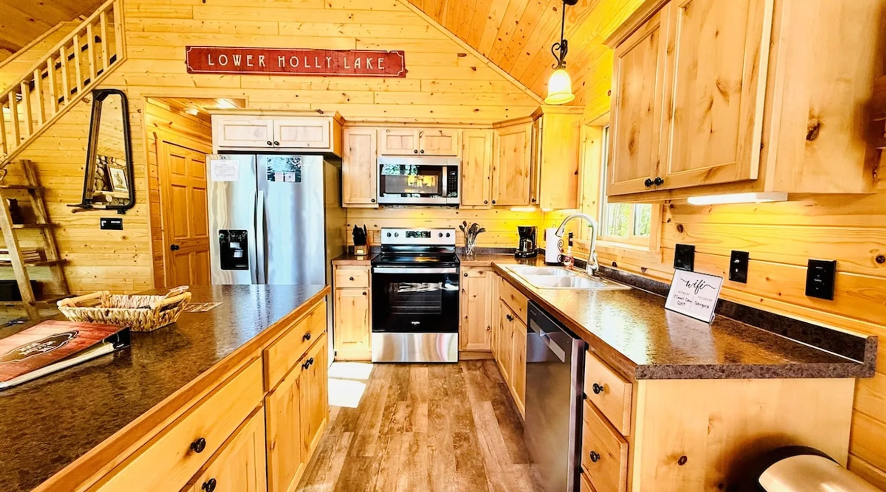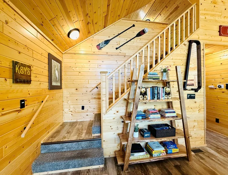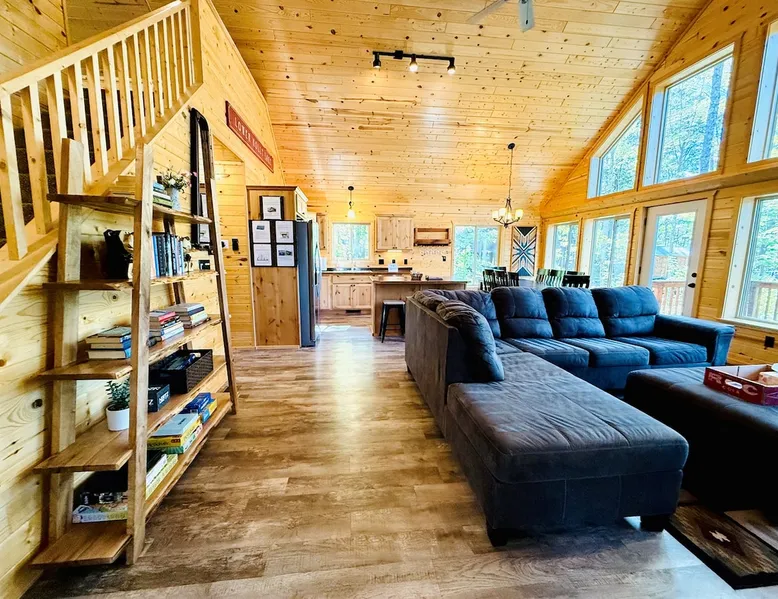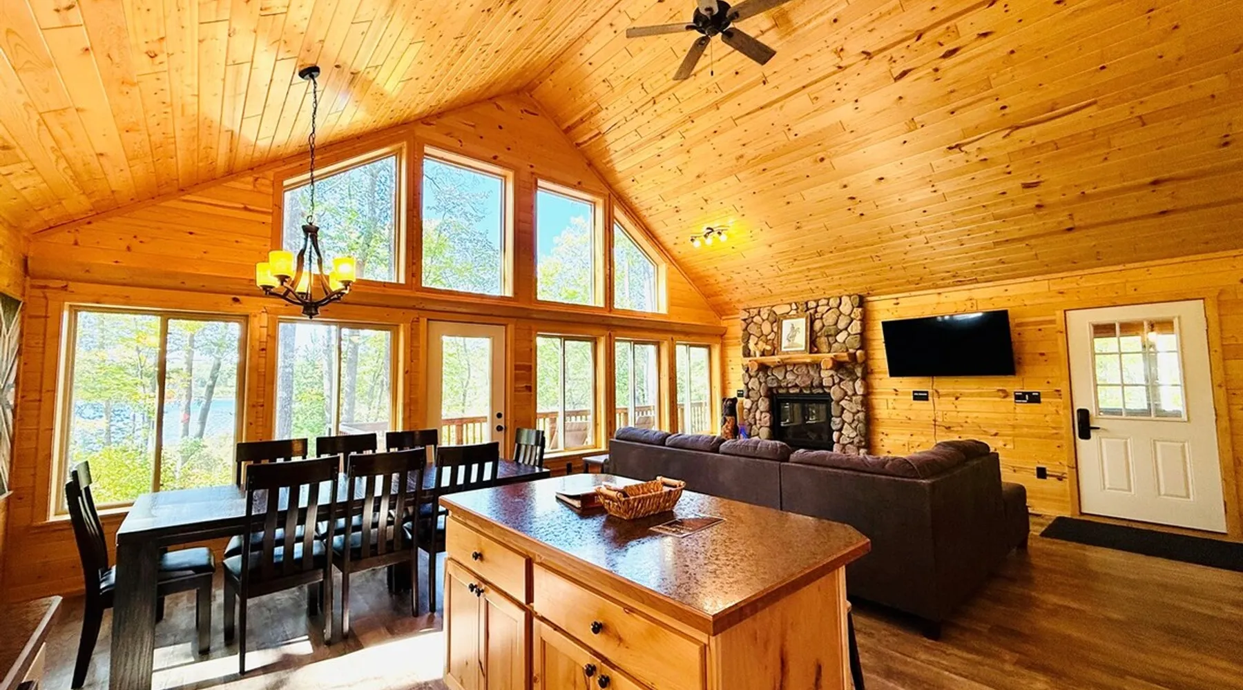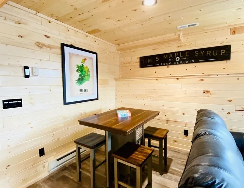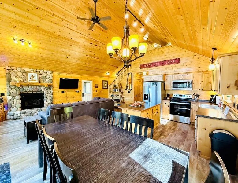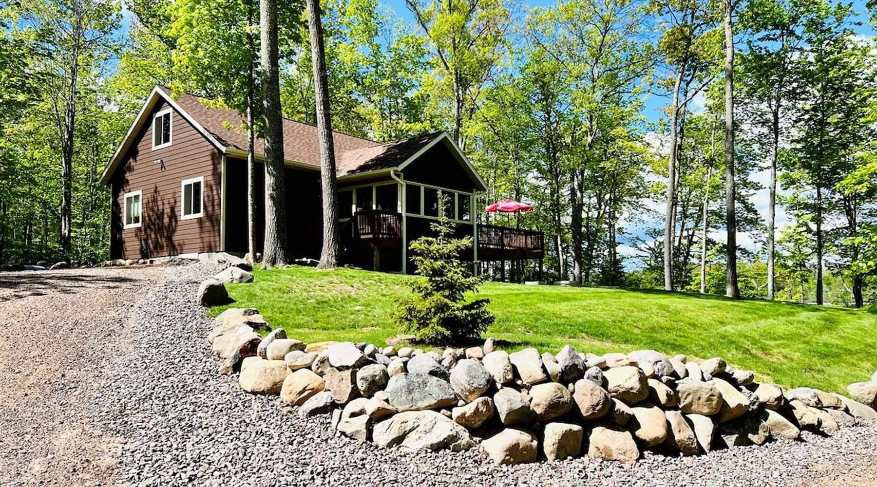 Welcome to Cattail Cottage, at O'Connell Cabin Company, your cozy retreat nestled on the shores of Lower Holly Lake, in Stone Lake, Wisconsin. This open-concept cabin, built in 2021, boasts a perfect blend of modern comfort and rustic charm. The space Cabin Highlights: • Spacious Living: With 4 bedrooms, 2 full bathrooms, and a finished walk-out basement, this 2,000 sq ft haven comfortably sleeps 8 guests. The cozy ambiance, complemented by central air and heating, ensures a delightful stay year-round. Note: The 4th bedroom is an open loft. Great for kids. Check out the photo gallery! • Scenic Views: Take in the fantastic view of 48-acre Lower Holly Lake from the large deck or unwind in the screened-in porch. The beauty of the lake is right at your doorstep. • Entertainment Galore: The fully finished walk-out basement is a game-lover's paradise, featuring a ping pong table. For those seeking relaxation, the gas fireplaces on the main floor and in the basement provide warmth and charm during the winter months. • Full Kitchen: The complete kitchen, with a spacious center island, is a chef's dream. The dining table, seating 10, is perfect for shared meals and memorable conversations. Perfect Location: Cattail Cottage is ideally situated just a 10-minute drive from the charming town of Stone Lake. Explore pubs, antique stores, a micro-brew/coffee house, and a wine bar, all contributing to the town's unique charm. For those craving more excitement, the bustling town of Hayward is a short 15-minute drive away, known for its food, shopping, year-round events, festivals, and tourist attractions. Outdoor Adventures: The cabin sits on a snowmobile and ATV trail, making it a haven for outdoor enthusiasts. Cattail Cottage, with its own dock, is perfect for kayaking, canoeing, and fishing. This hidden gem offers a quiet escape with amazing fishing opportunities, including Northern Pike and pan fish. For bikers, Northern Wisconsin is home to some of the best biking trails in the world! & The CAMBA (Chequamegon Area Mountain Bike Association) trail system offers over 300 miles of trails that wind through beautiful forests, alongside pristine lakes, and over challenging terrain. Whether you're a seasoned biker or just starting out, these trails have something for everyone. Come stay with us and experience these world-class trails for yourself! Amenities Galore: Your stay includes 2 kayaks, a canoe, firewood for the fire pit, and a gas grill for outdoor feasts. We're pet-friendly, ensuring the whole family can enjoy the getaway. Inside, enjoy high-speed internet, Smart HDTVs, a king bed in the master bedroom, laundry facilities, and a collection of books and games. Cattail Cottage is more than a cabin; it's a haven where every detail has been considered to ensure your stay is unforgettable. Book your escape now and experience the tranquility and adventure that await at Cattail Cottage in Stone Lake, Wisconsin! Guest access With the exception of the storage closet in the basement, guests will have access to the entire cabin. Other things to note Parking -- We kindly ask for a 4 vehicle limit. The driveway is the only place to park and it is not very big :-). Dock Install/removal -- Our dock for Cattail Cottage is located within short walking distance from the property. Check out the illustration we have in the photo gallery that shows where the dock is! We usually take the dock out of the water late October (we wait as long as we can) and we usually put it back in around mid/late April (we try to get it in as soon as we can). If you are looking at dates during either of these times of the year, don't hesitate to reach out to confirm status before booking. If you are thinking of bringing your own boat, ATV's, snowmobiles, etc, get a hold of me so we can talk logistics. The road coming into the cabin is tight, and so is the driveway. Cattail Chalet is one of 4 lakefront properties that we own in the area. Click on my profile picture to view all of our properties!