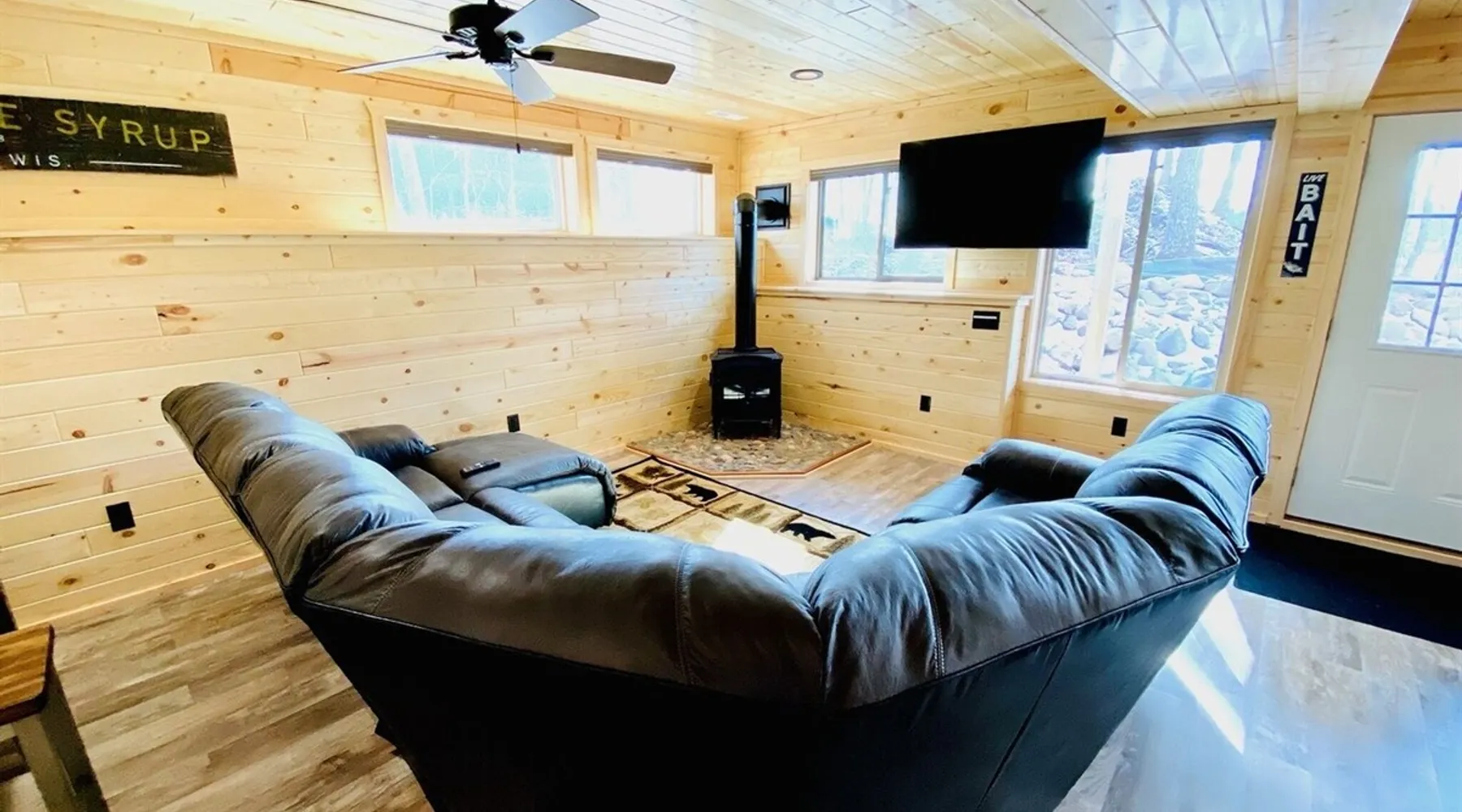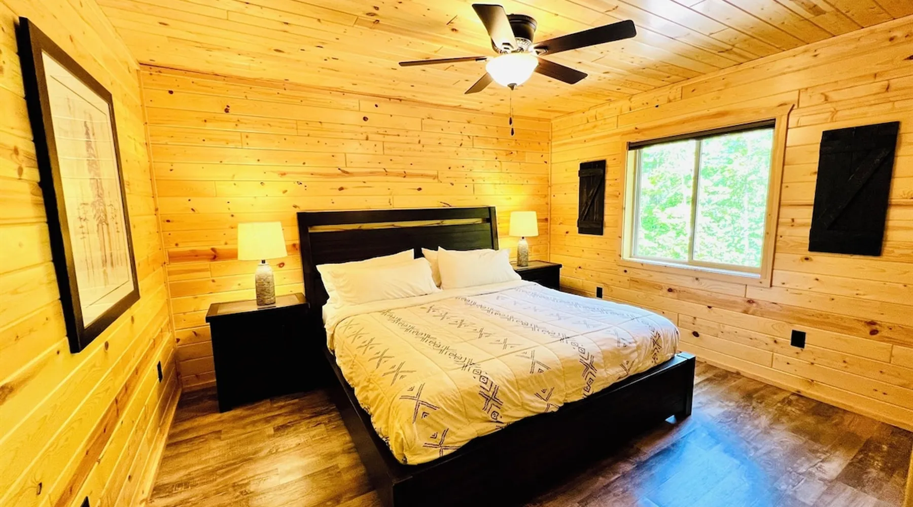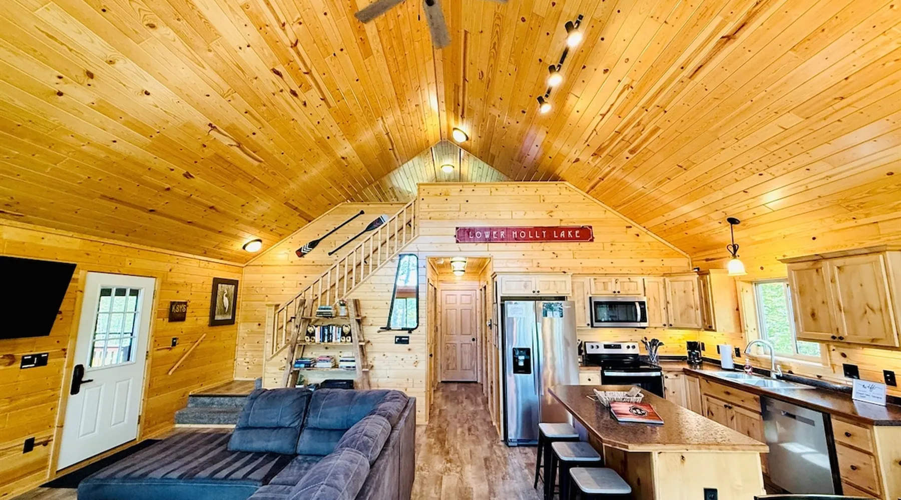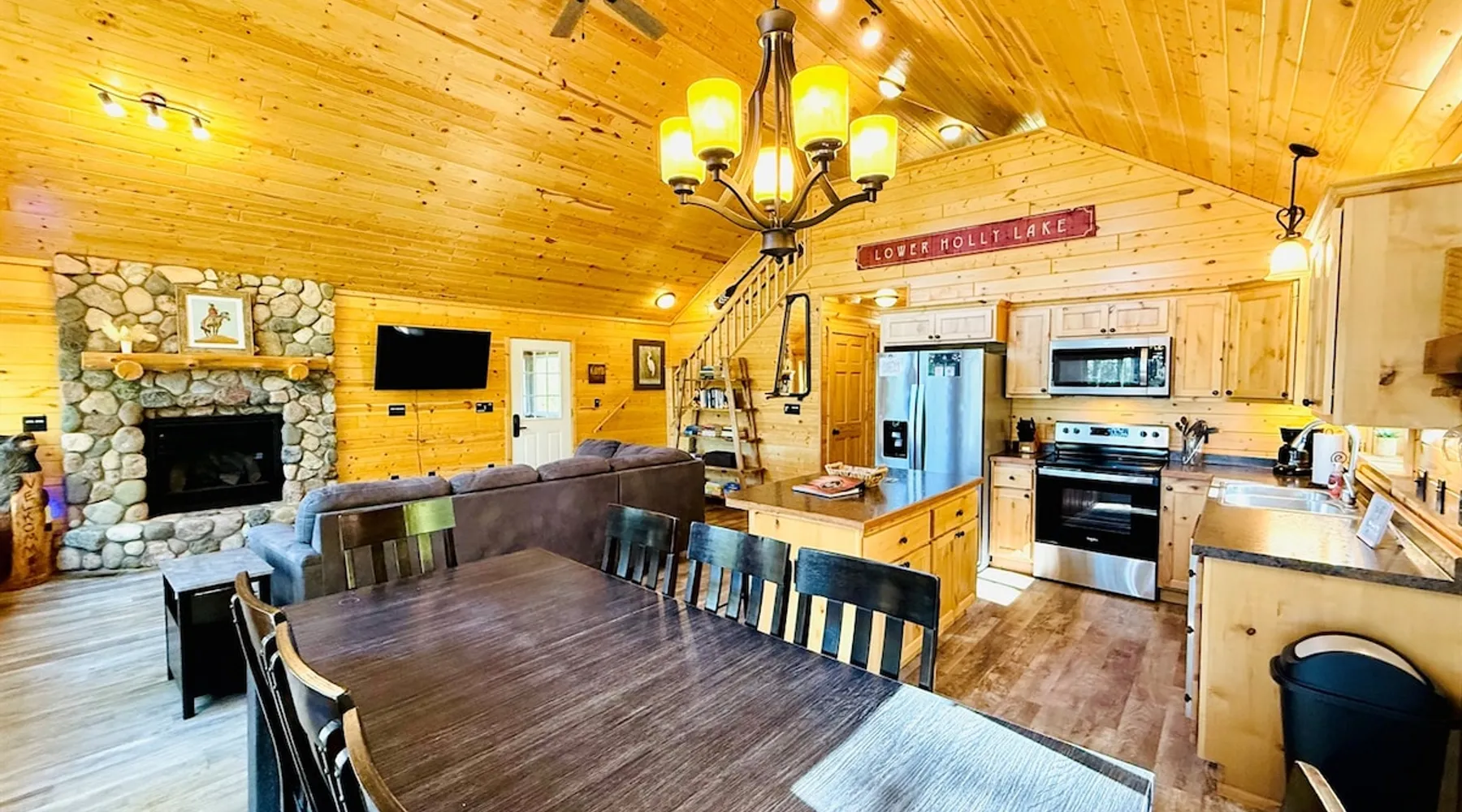 Welcome to Cattail Cottage, at O'Connell Cabin Company, your cozy retreat nestled on the shores of Lower Holly Lake, in Stone Lake, Wisconsin. This open-concept cabin, built in 2021, boasts a perfect blend of modern comfort and rustic charm. The space Cabin Highlights: • Spacious Living: With 4 bedrooms, 2 full bathrooms, and a finished walk-out basement, this 2,000 sq ft haven comfortably sleeps 8 guests. The cozy ambiance, complemented by central air and heating, ensures a delightful stay year-round. Note: The 4th bedroom is an open loft. Great for kids. Check out the photo gallery! • Scenic Views: Take in the fantastic view of 48-acre Lower Holly Lake from the large deck or unwind in the screened-in porch. The beauty of the lake is right at your doorstep. • Entertainment Galore: The fully finished walk-out basement is a game-lover's paradise, featuring a ping pong table. For those seeking relaxation, the gas fireplaces on the main floor and in the basement provide warmth and charm during the winter months. • Full Kitchen: The complete kitchen, with a spacious center island, is a chef's dream. The dining table, seating 10, is perfect for shared meals and memorable conversations. Perfect Location: Cattail Cottage is ideally situated just a 10-minute drive from the charming town of Stone Lake. Explore pubs, antique stores, a micro-brew/coffee house, and a wine bar, all contributing to the town's unique charm. For those craving more excitement, the bustling town of Hayward is a short 15-minute drive away, known for its food, shopping, year-round events, festivals, and tourist attractions. Outdoor Adventures: The cabin sits on a snowmobile and ATV trail, making it a haven for outdoor enthusiasts. Cattail Cottage, with its own dock, is perfect for kayaking, canoeing, and fishing. This hidden gem offers a quiet escape with amazing fishing opportunities, including Northern Pike and pan fish. For bikers, Northern Wisconsin is home to some of the best biking trails in the world! & The CAMBA (Chequamegon Area Mountain Bike Association) trail system offers over 300 miles of trails that wind through beautiful forests, alongside pristine lakes, and over challenging terrain. Whether you're a seasoned biker or just starting out, these trails have something for everyone. Come stay with us and experience these world-class trails for yourself! Amenities Galore: Your stay includes 2 kayaks, a canoe, firewood for the fire pit, and a gas grill for outdoor feasts. We're pet-friendly, ensuring the whole family can enjoy the getaway. Inside, enjoy high-speed internet, Smart HDTVs, a king bed in the master bedroom, laundry facilities, and a collection of books and games. Cattail Cottage is more than a cabin; it's a haven where every detail has been considered to ensure your stay is unforgettable. Book your escape now and experience the tranquility and adventure that await at Cattail Cottage in Stone Lake, Wisconsin! Guest access With the exception of the storage closet in the basement, guests will have access to the entire cabin. Other things to note Parking -- We kindly ask for a 4 vehicle limit. The driveway is the only place to park and it is not very big :-). Dock Install/removal -- Our dock for Cattail Cottage is located within short walking distance from the property. Check out the illustration we have in the photo gallery that shows where the dock is! We usually take the dock out of the water late October (we wait as long as we can) and we usually put it back in around mid/late April (we try to get it in as soon as we can). If you are looking at dates during either of these times of the year, don't hesitate to reach out to confirm status before booking. If you are thinking of bringing your own boat, ATV's, snowmobiles, etc, get a hold of me so we can talk logistics. The road coming into the cabin is tight, and so is the driveway. Cattail Chalet is one of 4 lakefront properties that we own in the area. Click on my profile picture to view all of our properties!