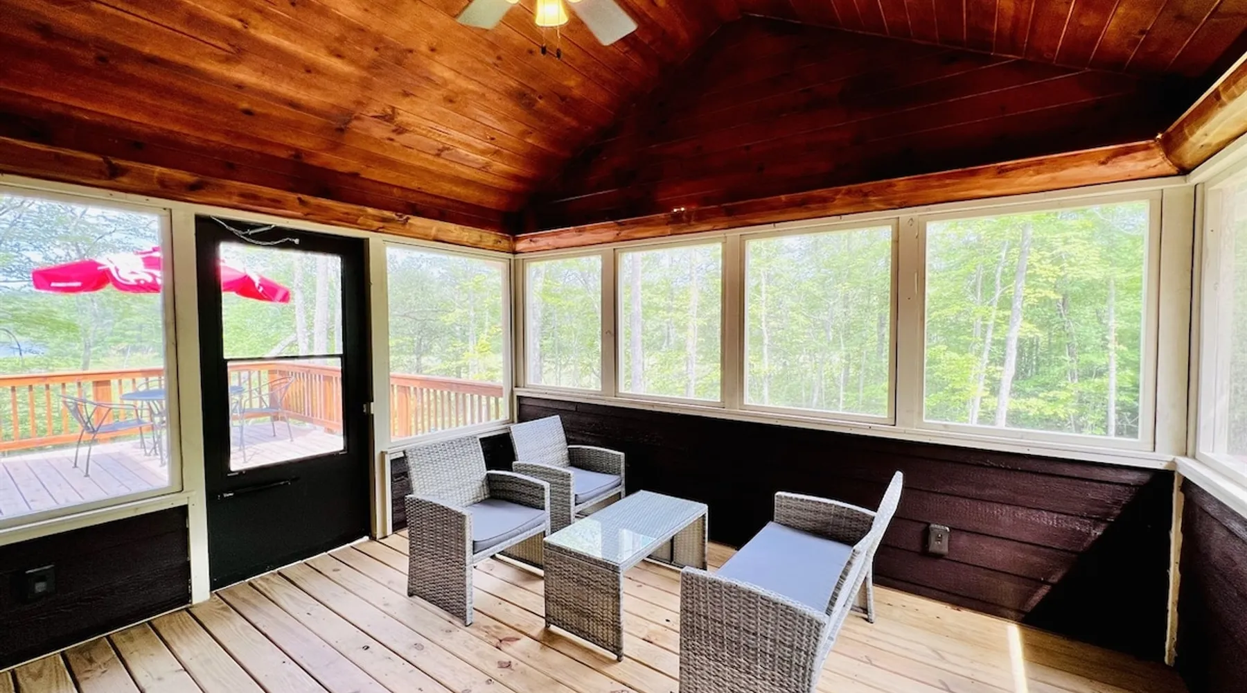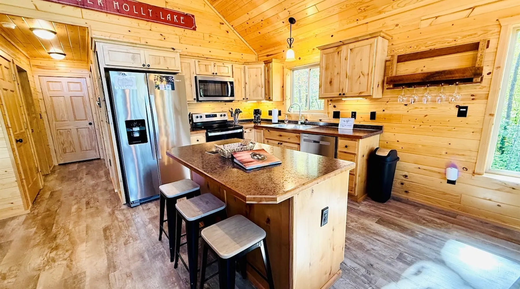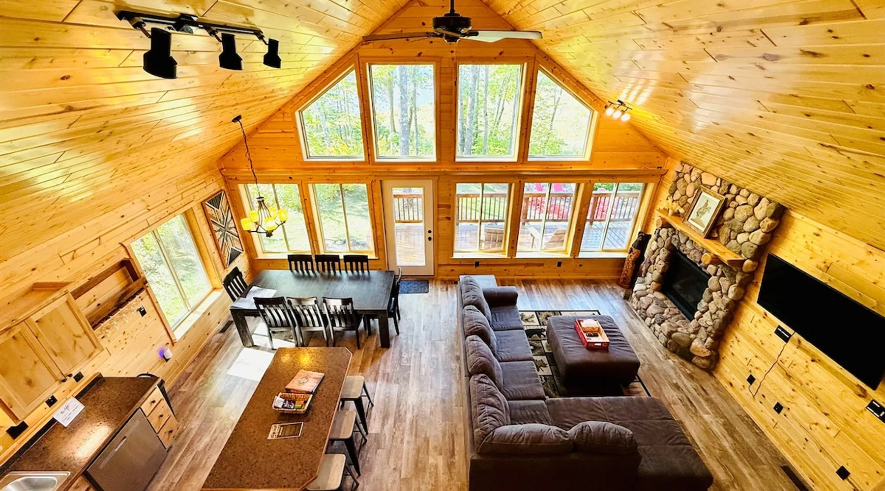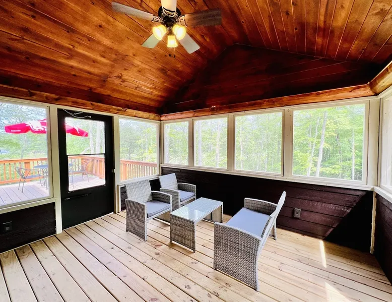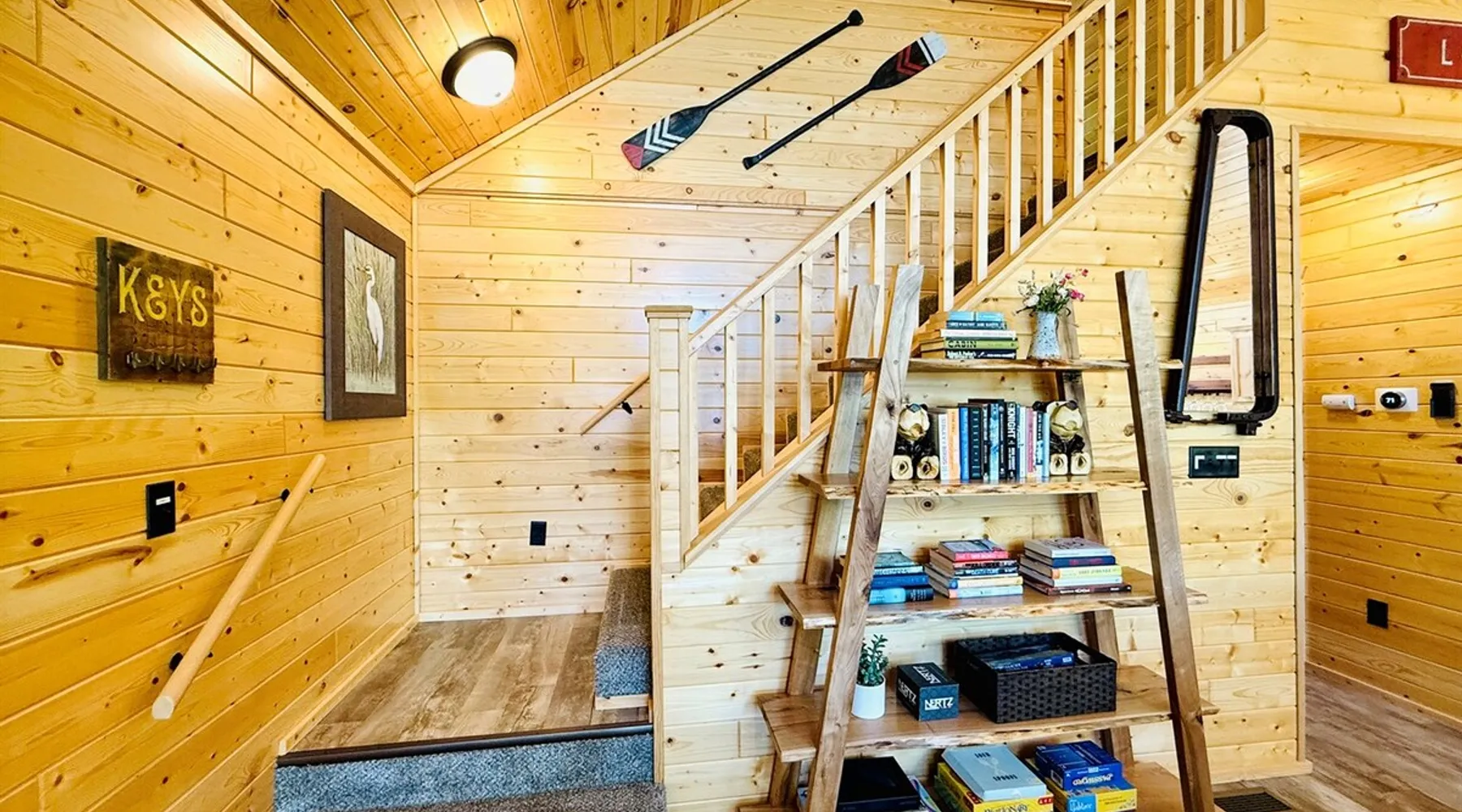 Welcome to Cattail Cottage, at O'Connell Cabin Company, your cozy retreat nestled on the shores of Lower Holly Lake, in Stone Lake, Wisconsin. This open-concept cabin, built in 2021, boasts a perfect blend of modern comfort and rustic charm. The space Cabin Highlights: • Spacious Living: With 4 bedrooms, 2 full bathrooms, and a finished walk-out basement, this 2,000 sq ft haven comfortably sleeps 8 guests. The cozy ambiance, complemented by central air and heating, ensures a delightful stay year-round. Note: The 4th bedroom is an open loft. Great for kids. Check out the photo gallery! • Scenic Views: Take in the fantastic view of 48-acre Lower Holly Lake from the large deck or unwind in the screened-in porch. The beauty of the lake is right at your doorstep. • Entertainment Galore: The fully finished walk-out basement is a game-lover's paradise, featuring a ping pong table. For those seeking relaxation, the gas fireplaces on the main floor and in the basement provide warmth and charm during the winter months. • Full Kitchen: The complete kitchen, with a spacious center island, is a chef's dream. The dining table, seating 10, is perfect for shared meals and memorable conversations. Perfect Location: Cattail Cottage is ideally situated just a 10-minute drive from the charming town of Stone Lake. Explore pubs, antique stores, a micro-brew/coffee house, and a wine bar, all contributing to the town's unique charm. For those craving more excitement, the bustling town of Hayward is a short 15-minute drive away, known for its food, shopping, year-round events, festivals, and tourist attractions. Outdoor Adventures: The cabin sits on a snowmobile and ATV trail, making it a haven for outdoor enthusiasts. Cattail Cottage, with its own dock, is perfect for kayaking, canoeing, and fishing. This hidden gem offers a quiet escape with amazing fishing opportunities, including Northern Pike and pan fish. For bikers, Northern Wisconsin is home to some of the best biking trails in the world! & The CAMBA (Chequamegon Area Mountain Bike Association) trail system offers over 300 miles of trails that wind through beautiful forests, alongside pristine lakes, and over challenging terrain. Whether you're a seasoned biker or just starting out, these trails have something for everyone. Come stay with us and experience these world-class trails for yourself! Amenities Galore: Your stay includes 2 kayaks, a canoe, firewood for the fire pit, and a gas grill for outdoor feasts. We're pet-friendly, ensuring the whole family can enjoy the getaway. Inside, enjoy high-speed internet, Smart HDTVs, a king bed in the master bedroom, laundry facilities, and a collection of books and games. Cattail Cottage is more than a cabin; it's a haven where every detail has been considered to ensure your stay is unforgettable. Book your escape now and experience the tranquility and adventure that await at Cattail Cottage in Stone Lake, Wisconsin! Guest access With the exception of the storage closet in the basement, guests will have access to the entire cabin. Other things to note Parking -- We kindly ask for a 4 vehicle limit. The driveway is the only place to park and it is not very big :-). Dock Install/removal -- Our dock for Cattail Cottage is located within short walking distance from the property. Check out the illustration we have in the photo gallery that shows where the dock is! We usually take the dock out of the water late October (we wait as long as we can) and we usually put it back in around mid/late April (we try to get it in as soon as we can). If you are looking at dates during either of these times of the year, don't hesitate to reach out to confirm status before booking. If you are thinking of bringing your own boat, ATV's, snowmobiles, etc, get a hold of me so we can talk logistics. The road coming into the cabin is tight, and so is the driveway. Cattail Chalet is one of 4 lakefront properties that we own in the area. Click on my profile picture to view all of our properties!