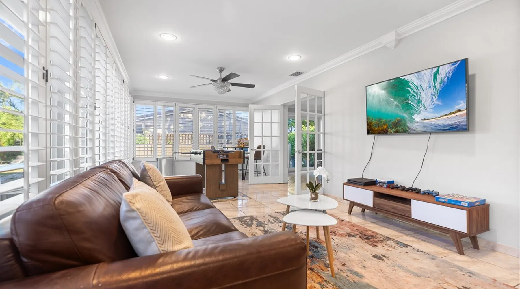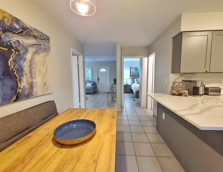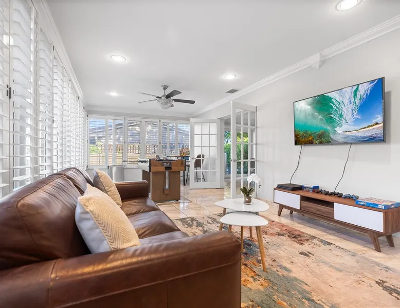 Our fresh new vacation rental has been updated with tons of fun amenities. We are right on the water with ocean access and a 34-foot dock to park your boat. We also have 2 kayaks for your use. Enjoy a private heated pool and gas grill. We have game stations with foosball and a large poker table. Our home has new interior furnishings and a large chef's kitchen. We are less than 2 miles from famous Lauderdale by the Sea Beach, which features a beautiful fishing pier, restaurants, and live music The space This home is 2 separate units with 2 kitchens and 2 laundry rooms. Perfect for families. You can easily go between the 2 units through the two laundry rooms. We have fun games in a game room area with a large poker table and foosball. The waterway at the property is accessible from the ocean, however, boats must clear several low, fixed bridges. Check clearances, depth, and tides before bringing your boat. Small powerboats may be able to access the dock. However, the owner makes no warranties or representations regarding clearances and maximum draft. Dock at your own risk Guest access Guests will have access to the private pool, boat dock, 2 kayaks, life vests/jackets, private laundry room, and a waterfront back yard. You must sign a liability waiver to use the kayaks. The pool is only heated in the winter months. We need 24 hours notice to heat the pool and the fee is $45.00 per day and must be for the entire duration of the stay. Other things to note Outdoor surveillance security cameras are on the property. *Please note that we have weekly pool maintenance, landscaping, and general maintenance workers who may need access to the home/pool area. We reserve the right to be on the property for necessary maintenance/repairs. The pool is only heated in the winter months. We need 24 hours notice to heat the pool and the fee is $45.00 per day and must be for the entire duration of the stay. We provide a starter kit of supplies for your convenience.