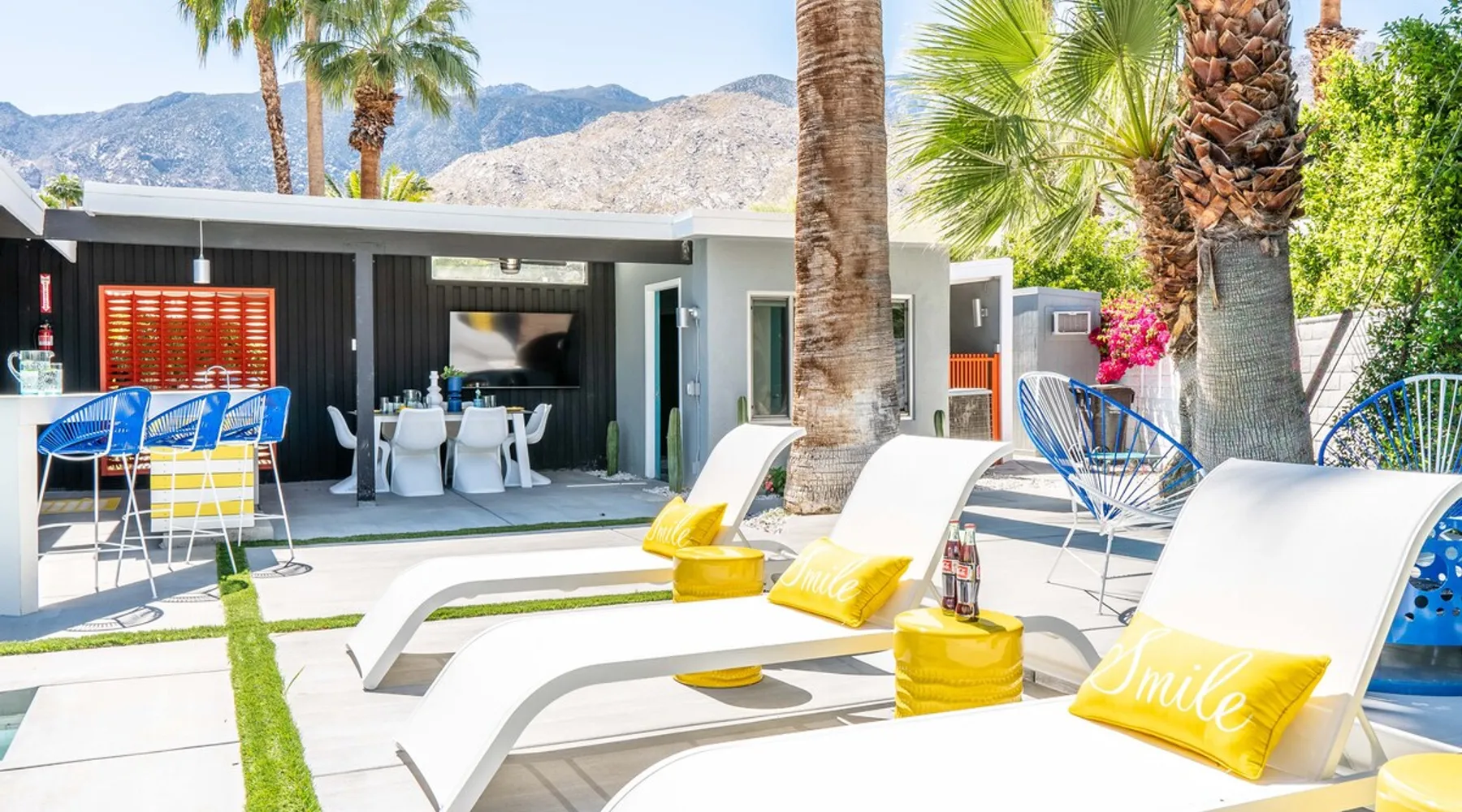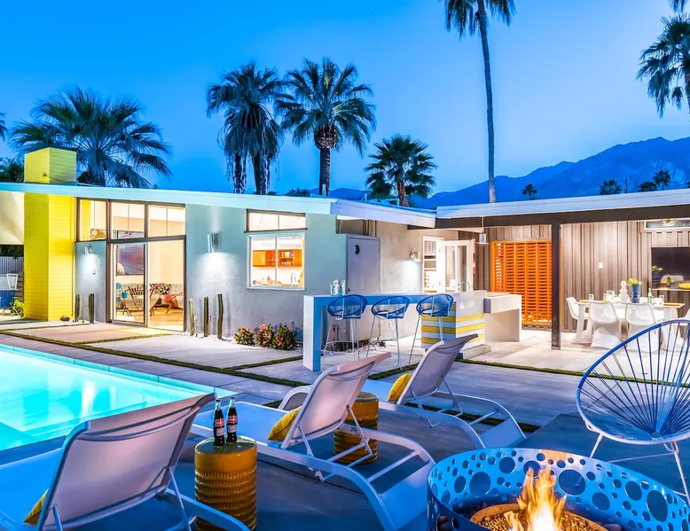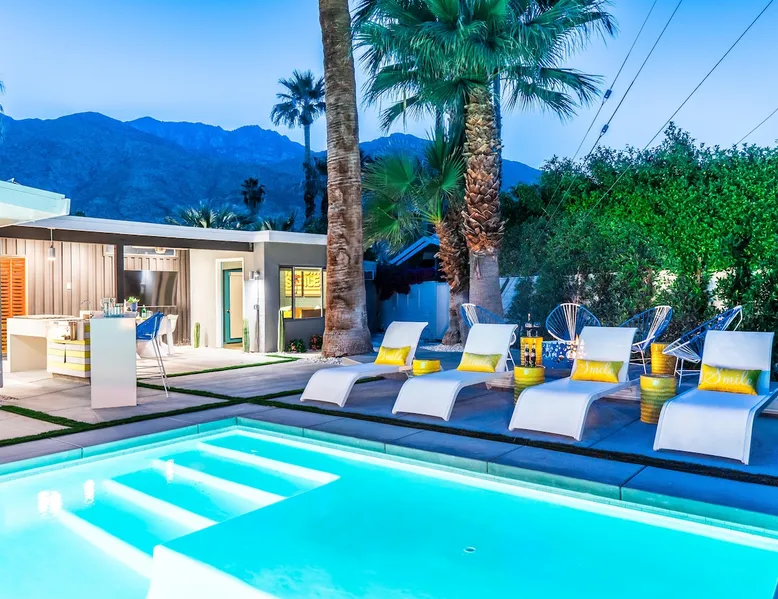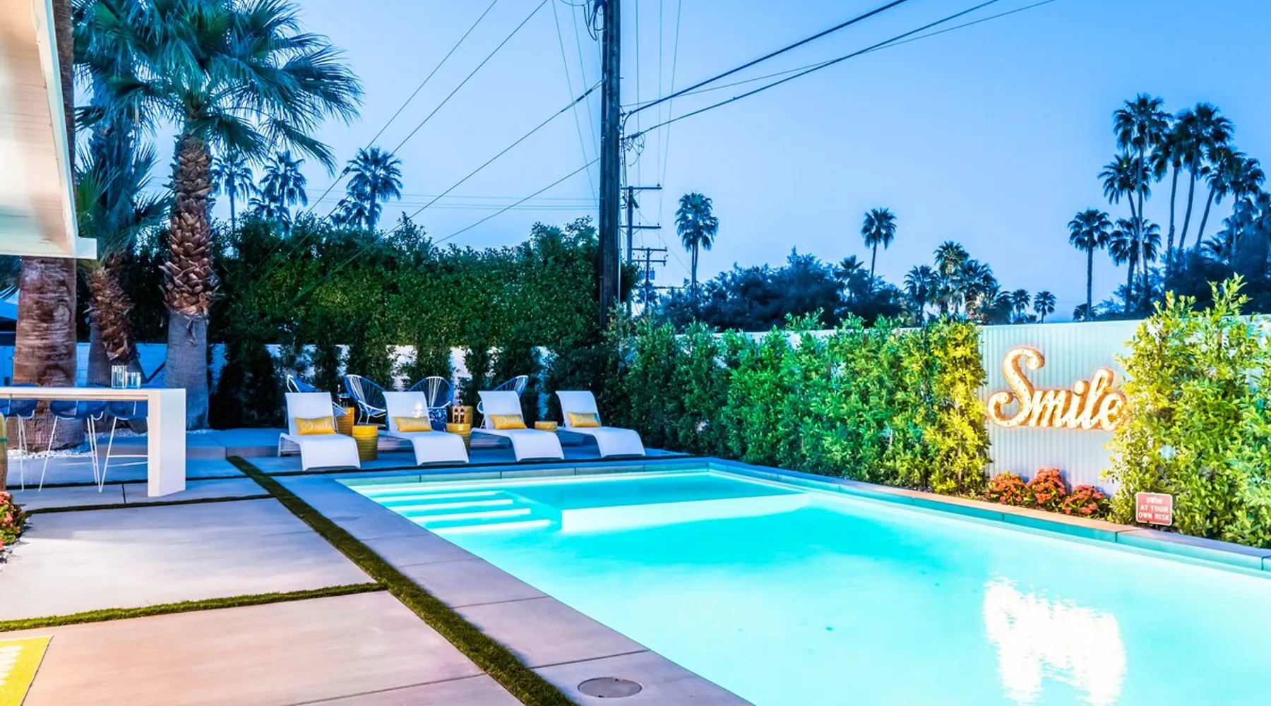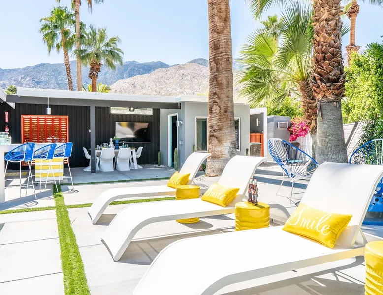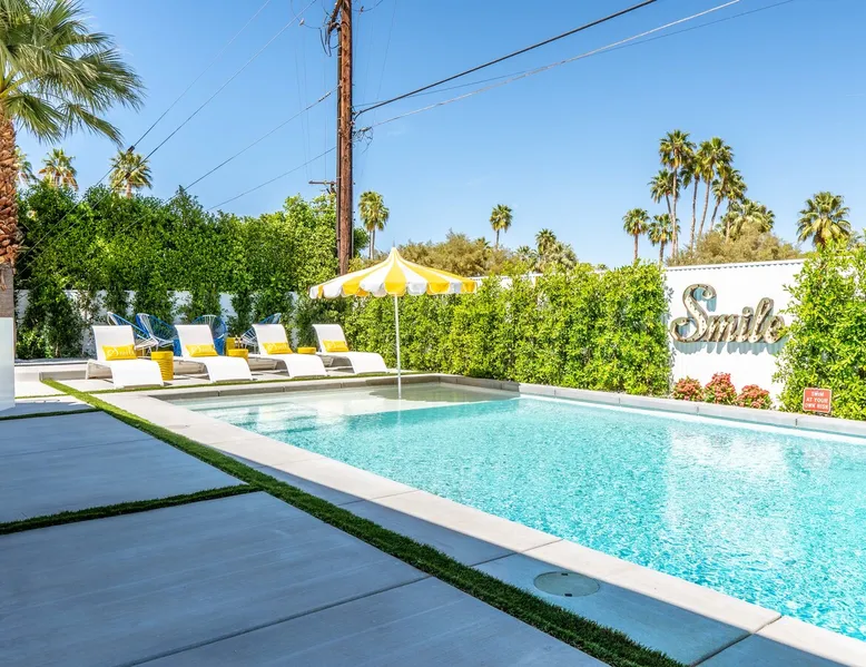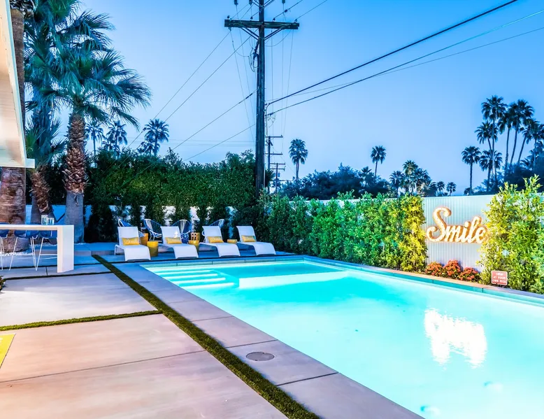 P.S. City ID #002248 | Primary renter must be at least 25 years of age to rent Designed by Starchitect Willian Krisel in 1958. Historic Twin Palms neighborhood. Modernism Week showpiece. Featured in Atomic Ranch Magazine. Saltwater pool, spa, firepit lounge and covered outdoor dining pavilion. Mountain views. Beds: CK,K,K Other things to note P.S. City ID #002248 | Primary renter must be at least 25 years of age to rent Fabulous Location! Completely renovated and restored Mid Mod pool home by iconic Starchitect William Krisel. Recently updated by the PS Homeboys Design Team. Prime location in the historic Twin Palms neighborhood… just a quick stroll from the world famous Palm Canyon Drive. Beds: CK, K, K A HAPPY PLACE IN THE HEART OF PALM SPRINGS PS Smile is a Happy Place in the heart of Palm Springs. Created for Modernism Purists by Modernism Purists. This is the quintessential Palm Springs experience where it is all about the architecture, design, Mid Mod lifestyle and relaxing in the sunshine! Open concept floor plan, walls of glass, saltwater pool, spa, fire feature, covered outdoor dining pavilion w/ barbecue bar. Breathtaking mountain views. Flexible sleeping quarters for 6 adults plus two children. MODERNISM WEEK SHOW PIECE PS Smile has been showcased during Modernism Week for several years and was featured in Atomic Ranch Magazine. OUTDOOR LIVING SPACES Walled and gated for privacy, this property captures the nostalgic vibe of Palm Springs yesteryear while still being fresh and current - updated for the way we live today. The backyard itself has been carefully space planned - w/lots of different gathering places. The heated saltwater pool has an integrated waterfall spa and a tanning deck. The yard also has a fire feature, covered outdoor dining pavilion, hard-lined gas BBQ, outdoor sink and island bar w/ seating. Cactus, palm trees and stunning mountain views all add to the magic of this special property. ** The pool will be heated upon request with an additional service fee. Please let us know if you'd like to heat the pool so we can ensure it is heated before your arrival. If you home has a spa or hot tub, heating the spa is included with your rental at no extra cost ** ** Please Note: 1. This fee is not included in the quoted price on some booking platforms. 2. Pool heating may be added in minimum of 3 day blocks per request ** INDOOR LIVING SPACES PS Smile has an eye popping chic designer style - w/ social media moments around every corner. The property owners worked w/ their design team to create the ultimate Palm Springs getaway. This is the type of property visitors return to year after year. It’s truly a delight to experience this phenomenal property - you will never want to leave. This classic midcentury Butterfly has been completely remodeled - yet still honors the home's midcentury architecture - preserving its clean lines, clerestory windows, open concept floor plan and walls of glass that blur the lines between indoor outdoor living. The living room, dining area and kitchen are all open to each other - providing enough space for your entire group to relax and enjoy. Everything has been updated for the way we live today - including new bathrooms, new kitchen, upgraded heating and cooling systems, high speed internet, 4 flat screen TVs and a classically-Krisel gas fireplace. ** The term "Pets Allowed” or “Pets Accepted" at an ACME House Company vacation rental means that we welcome dogs only. No other pets are allowed. ** SLEEPING QUARTERS The high-style sleeping quarters offer flexible accommodations for all different types of traveling groups - from multi-generational families and golf foursomes to reunions for college friends and girls weekends. Plenty of room for everyone! Each bedroom features an ultra-comfortable hotel-quality mattress, flatscreen TV, private yard access and ample storage. The Master Suite has a King bed, private patio and en suite bath. There are also two King Guest Rooms in the main house that share easy access to the hall bathroom. THE LOCATION PS Smile is perfectly located for those who want to be close to everything! This quiet residential neighborhood is ideal for walking and bike riding. Flat picturesque streets are lined w/ towering Palm Trees and gorgeous architecturally significant properties. You will be close to hiking trails, fine dining restaurants, coffee houses, entertainment venues and local conveniences are close by. Registration Details P S City ID 2248