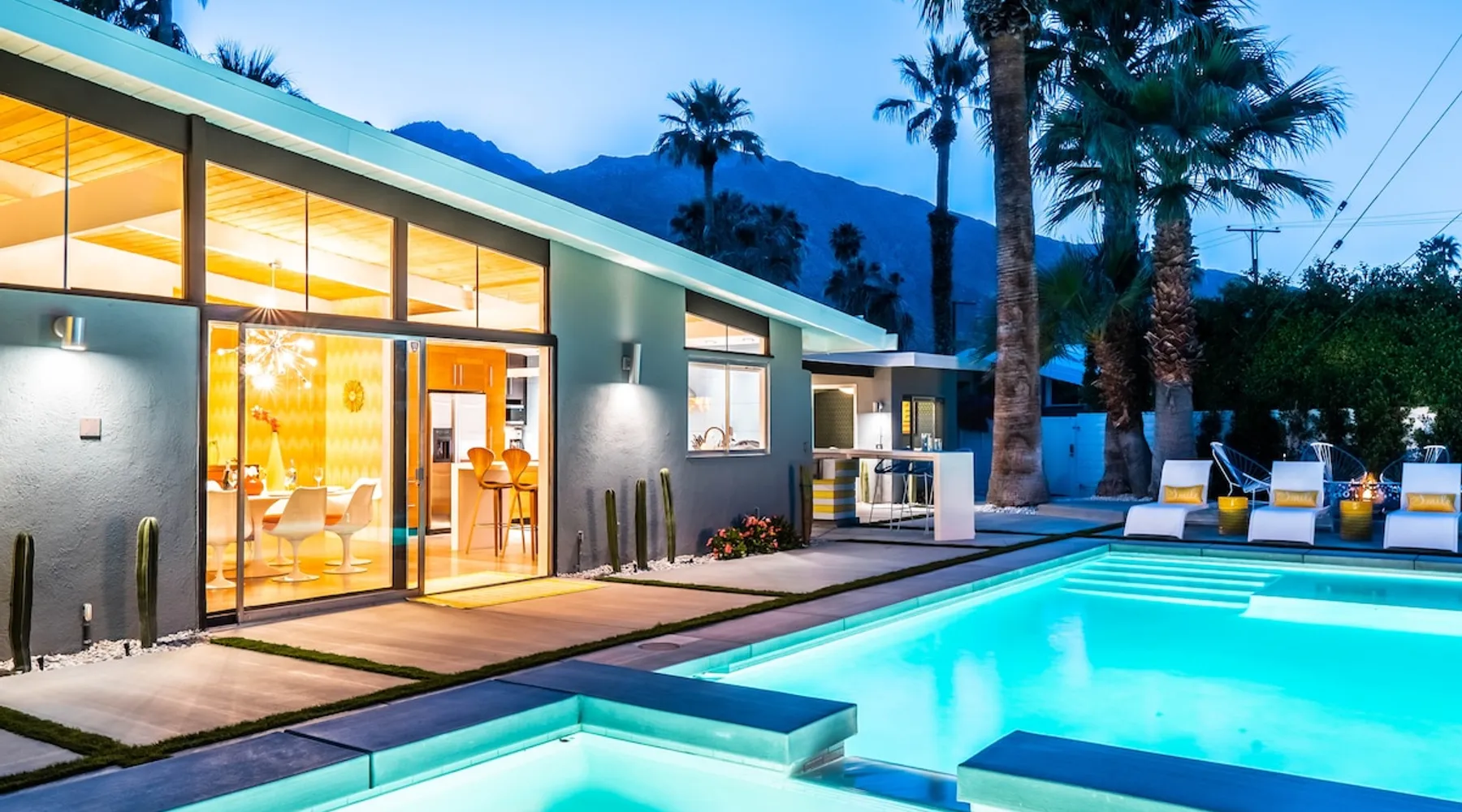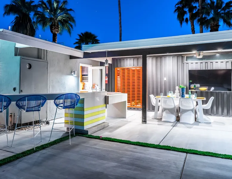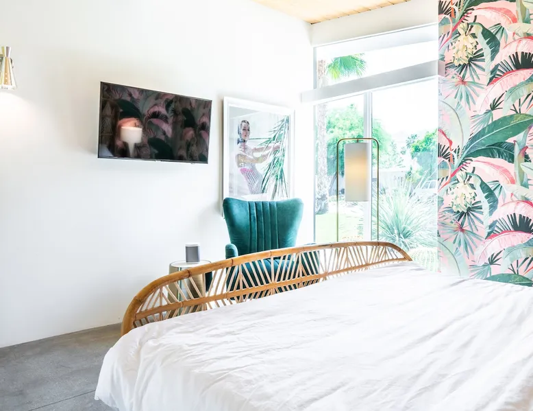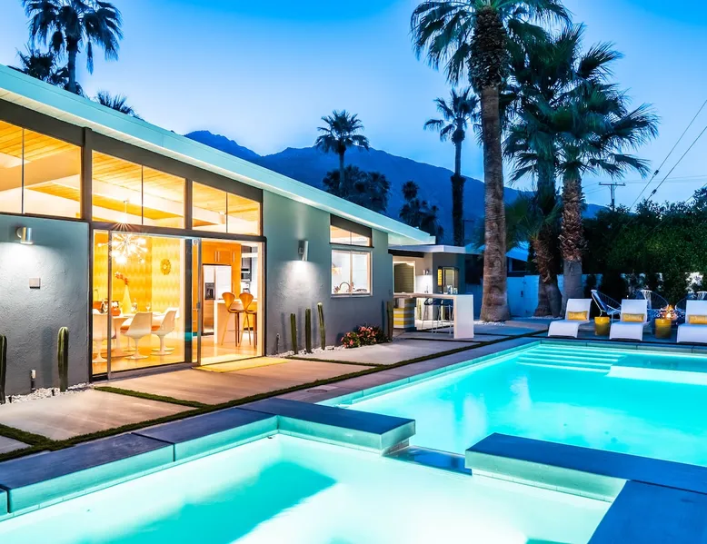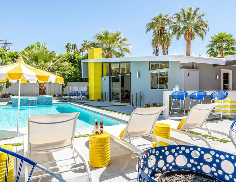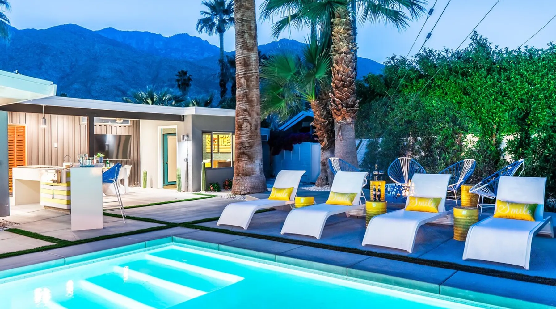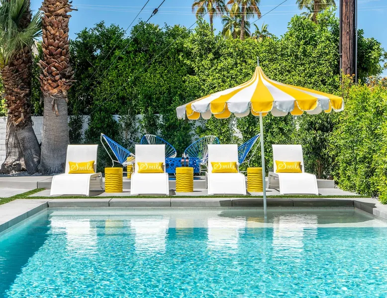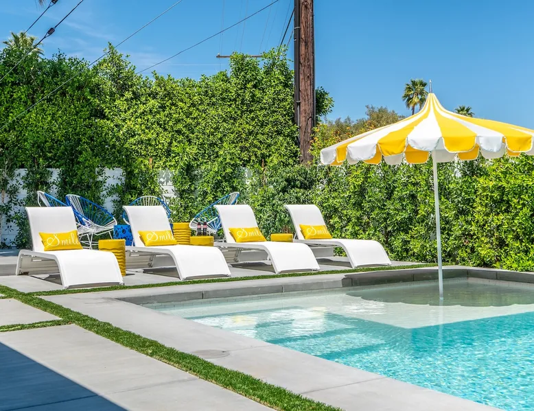 P.S. City ID #002248 | Primary renter must be at least 25 years of age to rent Designed by Starchitect Willian Krisel in 1958. Historic Twin Palms neighborhood. Modernism Week showpiece. Featured in Atomic Ranch Magazine. Saltwater pool, spa, firepit lounge and covered outdoor dining pavilion. Mountain views. Beds: CK,K,K Other things to note P.S. City ID #002248 | Primary renter must be at least 25 years of age to rent Fabulous Location! Completely renovated and restored Mid Mod pool home by iconic Starchitect William Krisel. Recently updated by the PS Homeboys Design Team. Prime location in the historic Twin Palms neighborhood… just a quick stroll from the world famous Palm Canyon Drive. Beds: CK, K, K A HAPPY PLACE IN THE HEART OF PALM SPRINGS PS Smile is a Happy Place in the heart of Palm Springs. Created for Modernism Purists by Modernism Purists. This is the quintessential Palm Springs experience where it is all about the architecture, design, Mid Mod lifestyle and relaxing in the sunshine! Open concept floor plan, walls of glass, saltwater pool, spa, fire feature, covered outdoor dining pavilion w/ barbecue bar. Breathtaking mountain views. Flexible sleeping quarters for 6 adults plus two children. MODERNISM WEEK SHOW PIECE PS Smile has been showcased during Modernism Week for several years and was featured in Atomic Ranch Magazine. OUTDOOR LIVING SPACES Walled and gated for privacy, this property captures the nostalgic vibe of Palm Springs yesteryear while still being fresh and current - updated for the way we live today. The backyard itself has been carefully space planned - w/lots of different gathering places. The heated saltwater pool has an integrated waterfall spa and a tanning deck. The yard also has a fire feature, covered outdoor dining pavilion, hard-lined gas BBQ, outdoor sink and island bar w/ seating. Cactus, palm trees and stunning mountain views all add to the magic of this special property. ** The pool will be heated upon request with an additional service fee. Please let us know if you'd like to heat the pool so we can ensure it is heated before your arrival. If you home has a spa or hot tub, heating the spa is included with your rental at no extra cost ** ** Please Note: 1. This fee is not included in the quoted price on some booking platforms. 2. Pool heating may be added in minimum of 3 day blocks per request ** INDOOR LIVING SPACES PS Smile has an eye popping chic designer style - w/ social media moments around every corner. The property owners worked w/ their design team to create the ultimate Palm Springs getaway. This is the type of property visitors return to year after year. It’s truly a delight to experience this phenomenal property - you will never want to leave. This classic midcentury Butterfly has been completely remodeled - yet still honors the home's midcentury architecture - preserving its clean lines, clerestory windows, open concept floor plan and walls of glass that blur the lines between indoor outdoor living. The living room, dining area and kitchen are all open to each other - providing enough space for your entire group to relax and enjoy. Everything has been updated for the way we live today - including new bathrooms, new kitchen, upgraded heating and cooling systems, high speed internet, 4 flat screen TVs and a classically-Krisel gas fireplace. ** The term "Pets Allowed” or “Pets Accepted" at an ACME House Company vacation rental means that we welcome dogs only. No other pets are allowed. ** SLEEPING QUARTERS The high-style sleeping quarters offer flexible accommodations for all different types of traveling groups - from multi-generational families and golf foursomes to reunions for college friends and girls weekends. Plenty of room for everyone! Each bedroom features an ultra-comfortable hotel-quality mattress, flatscreen TV, private yard access and ample storage. The Master Suite has a King bed, private patio and en suite bath. There are also two King Guest Rooms in the main house that share easy access to the hall bathroom. THE LOCATION PS Smile is perfectly located for those who want to be close to everything! This quiet residential neighborhood is ideal for walking and bike riding. Flat picturesque streets are lined w/ towering Palm Trees and gorgeous architecturally significant properties. You will be close to hiking trails, fine dining restaurants, coffee houses, entertainment venues and local conveniences are close by. Registration Details P S City ID 2248