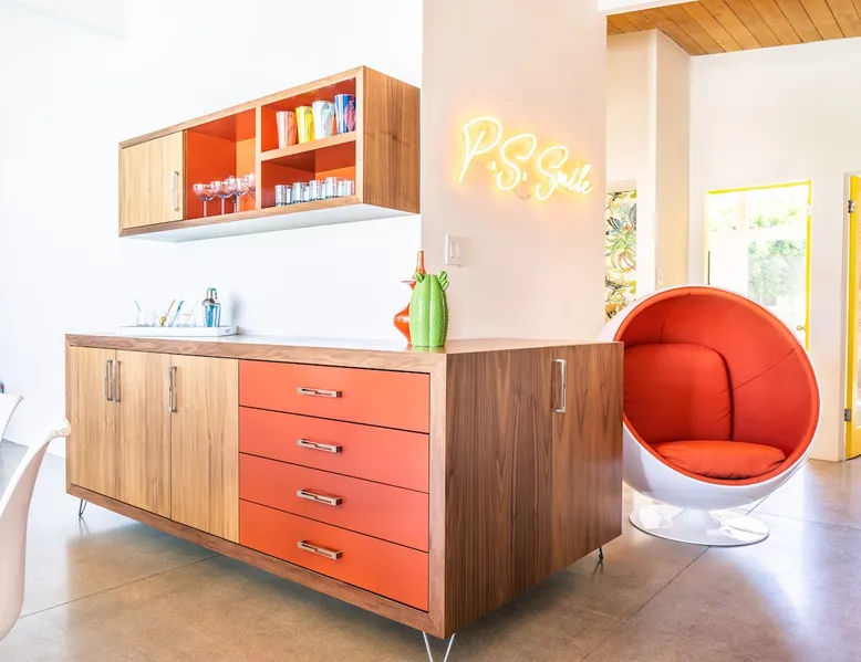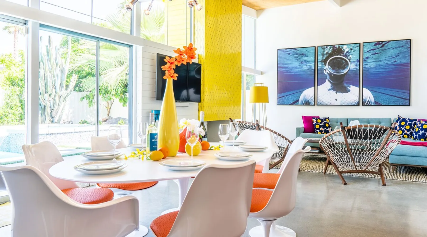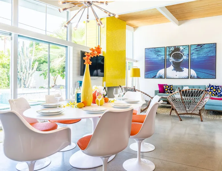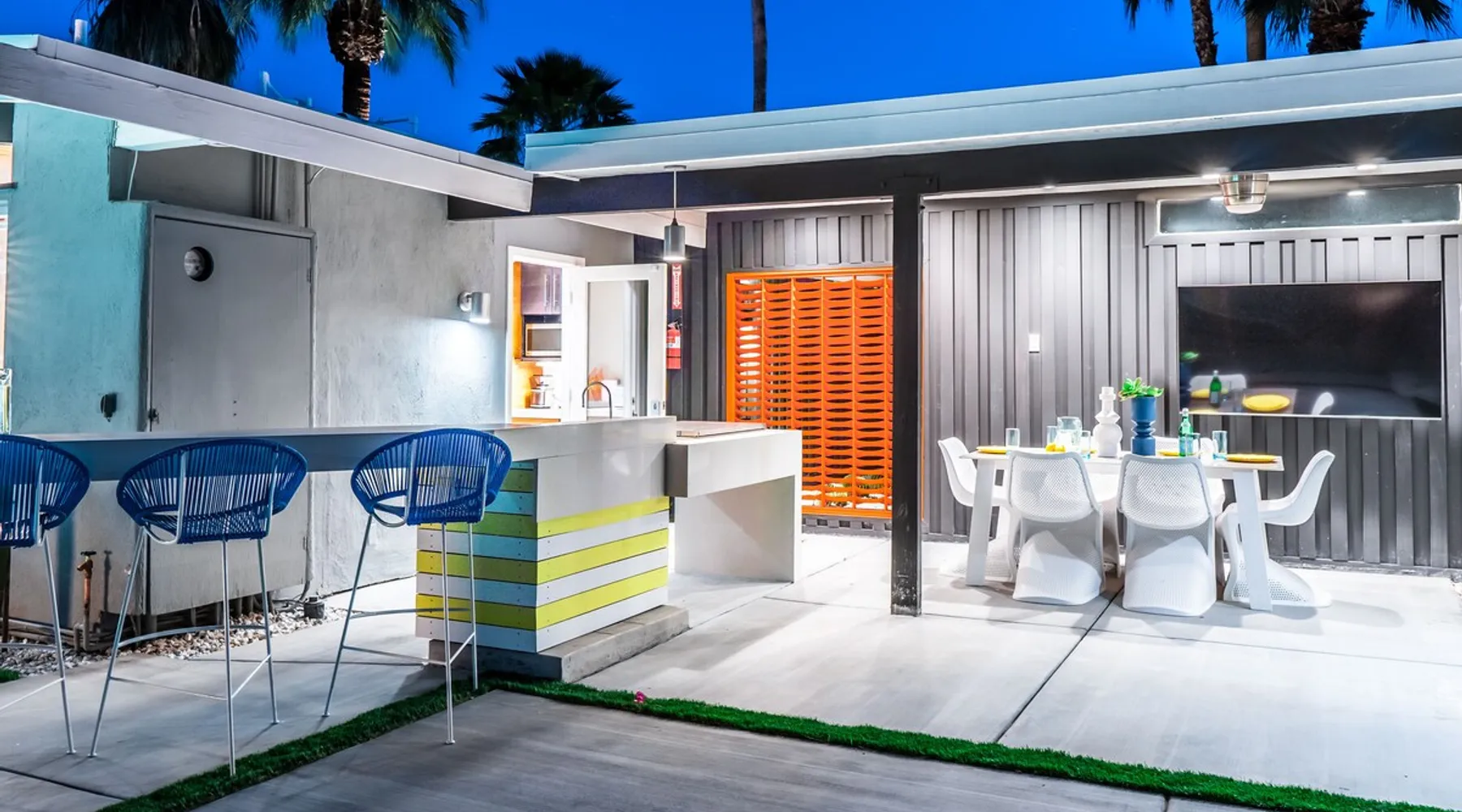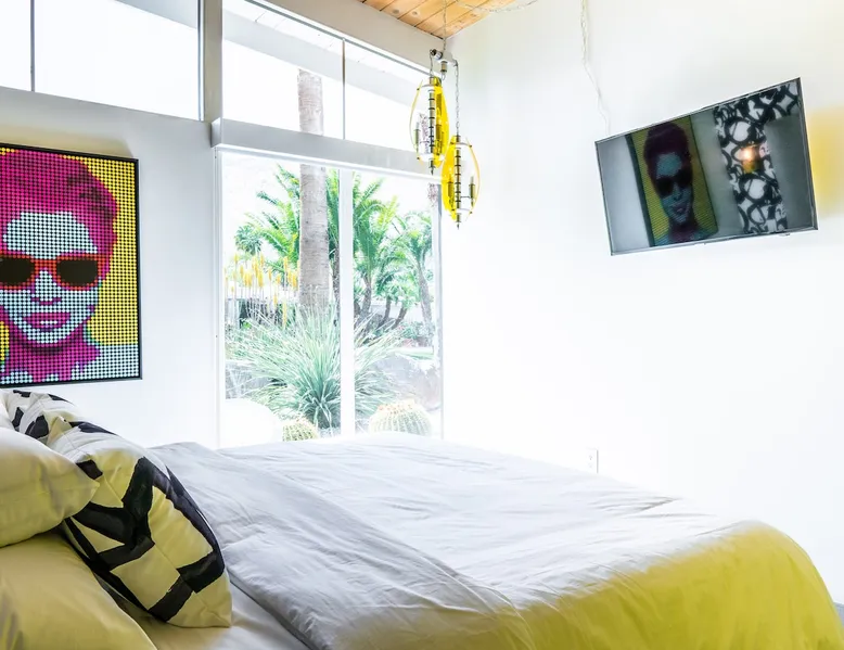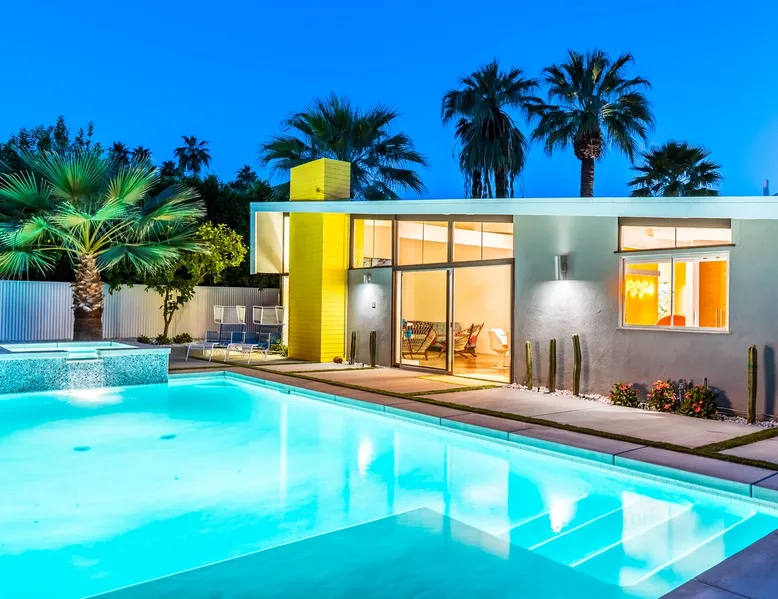 P.S. City ID #002248 | Primary renter must be at least 25 years of age to rent Designed by Starchitect Willian Krisel in 1958. Historic Twin Palms neighborhood. Modernism Week showpiece. Featured in Atomic Ranch Magazine. Saltwater pool, spa, firepit lounge and covered outdoor dining pavilion. Mountain views. Beds: CK,K,K Other things to note P.S. City ID #002248 | Primary renter must be at least 25 years of age to rent Fabulous Location! Completely renovated and restored Mid Mod pool home by iconic Starchitect William Krisel. Recently updated by the PS Homeboys Design Team. Prime location in the historic Twin Palms neighborhood… just a quick stroll from the world famous Palm Canyon Drive. Beds: CK, K, K A HAPPY PLACE IN THE HEART OF PALM SPRINGS PS Smile is a Happy Place in the heart of Palm Springs. Created for Modernism Purists by Modernism Purists. This is the quintessential Palm Springs experience where it is all about the architecture, design, Mid Mod lifestyle and relaxing in the sunshine! Open concept floor plan, walls of glass, saltwater pool, spa, fire feature, covered outdoor dining pavilion w/ barbecue bar. Breathtaking mountain views. Flexible sleeping quarters for 6 adults plus two children. MODERNISM WEEK SHOW PIECE PS Smile has been showcased during Modernism Week for several years and was featured in Atomic Ranch Magazine. OUTDOOR LIVING SPACES Walled and gated for privacy, this property captures the nostalgic vibe of Palm Springs yesteryear while still being fresh and current - updated for the way we live today. The backyard itself has been carefully space planned - w/lots of different gathering places. The heated saltwater pool has an integrated waterfall spa and a tanning deck. The yard also has a fire feature, covered outdoor dining pavilion, hard-lined gas BBQ, outdoor sink and island bar w/ seating. Cactus, palm trees and stunning mountain views all add to the magic of this special property. ** The pool will be heated upon request with an additional service fee. Please let us know if you'd like to heat the pool so we can ensure it is heated before your arrival. If you home has a spa or hot tub, heating the spa is included with your rental at no extra cost ** ** Please Note: 1. This fee is not included in the quoted price on some booking platforms. 2. Pool heating may be added in minimum of 3 day blocks per request ** INDOOR LIVING SPACES PS Smile has an eye popping chic designer style - w/ social media moments around every corner. The property owners worked w/ their design team to create the ultimate Palm Springs getaway. This is the type of property visitors return to year after year. It’s truly a delight to experience this phenomenal property - you will never want to leave. This classic midcentury Butterfly has been completely remodeled - yet still honors the home's midcentury architecture - preserving its clean lines, clerestory windows, open concept floor plan and walls of glass that blur the lines between indoor outdoor living. The living room, dining area and kitchen are all open to each other - providing enough space for your entire group to relax and enjoy. Everything has been updated for the way we live today - including new bathrooms, new kitchen, upgraded heating and cooling systems, high speed internet, 4 flat screen TVs and a classically-Krisel gas fireplace. ** The term "Pets Allowed” or “Pets Accepted" at an ACME House Company vacation rental means that we welcome dogs only. No other pets are allowed. ** SLEEPING QUARTERS The high-style sleeping quarters offer flexible accommodations for all different types of traveling groups - from multi-generational families and golf foursomes to reunions for college friends and girls weekends. Plenty of room for everyone! Each bedroom features an ultra-comfortable hotel-quality mattress, flatscreen TV, private yard access and ample storage. The Master Suite has a King bed, private patio and en suite bath. There are also two King Guest Rooms in the main house that share easy access to the hall bathroom. THE LOCATION PS Smile is perfectly located for those who want to be close to everything! This quiet residential neighborhood is ideal for walking and bike riding. Flat picturesque streets are lined w/ towering Palm Trees and gorgeous architecturally significant properties. You will be close to hiking trails, fine dining restaurants, coffee houses, entertainment venues and local conveniences are close by. Registration Details P S City ID 2248