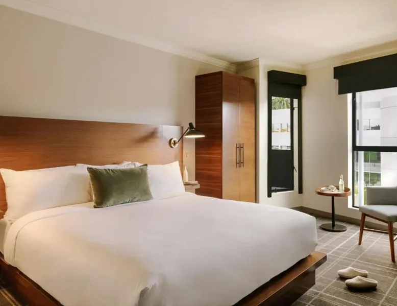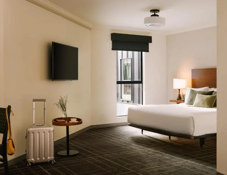 Comfortable Accommodations: FOUND Hotel in Santa Monica offers air-conditioned rooms with private bathrooms, free WiFi, and modern amenities including a work desk, TV, and wardrobe. Each room features a refrigerator, hairdryer, and free toiletries. Convenient Facilities: Guests can enjoy a bar and relax at the on-site restaurant. The hotel provides a elevator, 24-hour front desk, concierge service, and housekeeping. Paid on-site private parking is available. Prime Location: Located 9.3 mi from Los Angeles International Airport, the hotel is near attractions such as Third Street Promenade (2.5 mi), Santa Monica Pier and Pacific Park (3.7 mi), and Venice Beach Boardwalk (5 mi). A restaurant is in the surroundings. Guest Satisfaction: Guests appreciate the convenient location, room cleanliness, and attentive property staff and service support. The quadruple room features air conditioning, a wardrobe, as well as a private bathroom boasting a shower and a hairdryer. Rooms on the upper floors are reachable by elevator. The unit has 4 beds.