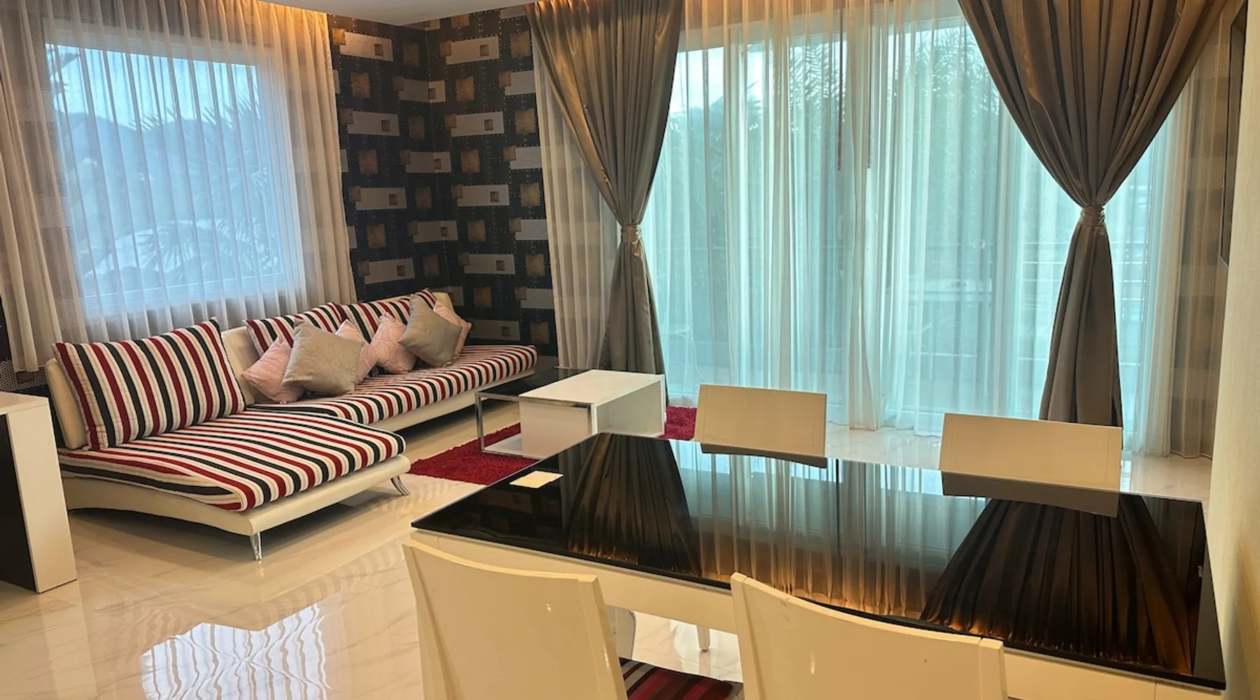 The apartment of 93 m² and a balcony of 5 m² equipped with double window with 3 air conditioners of 3 TVs with IPTV YouTube Internet very high speed a large living room, 2 large bedrooms with queen bed 1 with sea view, 2 private bathrooms, kitchen equipped with all amenities . Close to all shops and many restaurants You have 2 swimming pools and a children's paddling pool Parking. 600 meters from Karon Beach at1.1 Km from Kata Beach Electricity Free The space the kitchen is equipped with four electric hobs of a micro-world electric coffee maker of a fridge with freezer of kitchen utensils. Equipped with two large bedrooms with bathroom and private toilet and shower, a large bed of 1.80 m by 2 m and 1.60 m by 2 m the bedrooms being equipped with air conditioner and TV Iptv Internet at water and electricity flow included in the price.We can if you wish rent motorcycles, in order to enjoy the wonderful landscapes that there is on Phuket Water and electricity is included in the price Guest access From the airport by taxi or bus taxi price 900 bath Bus price 200 bath per person
