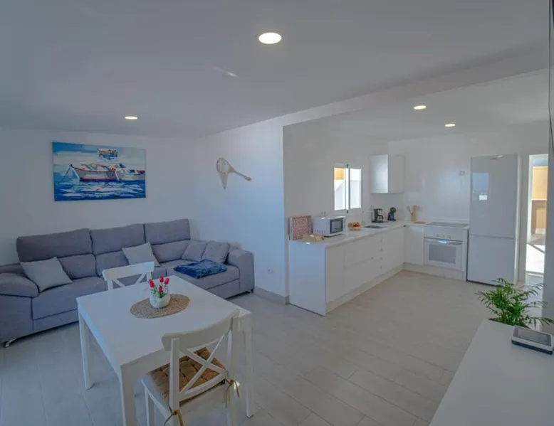 Comfortable Living Space: View Ático Corralejo Parking gratuito in Corralejo offers a one-bedroom apartment with a terrace and free WiFi. The property includes a fully equipped kitchen, washing machine, and a work desk. Modern Amenities: Guests enjoy sea views, a dining table, and a sofa. The apartment features a TV, microwave, and a private entrance. Additional amenities include a hairdryer, coffee machine, and a refrigerator. Convenient Location: Corralejo Beach is a 4-minute walk away. Fuerteventura Airport is 22 mi from the property. Nearby attractions include Eco Museo de Alcogida (19 mi) and Casa Museo Unamuno Fuerteventura (20 mi). Highly Rated by Guests: Guests appreciate the friendly host, scenic views, and convenient location. The property is ideal for surfing enthusiasts. Featuring a private entrance, this apartment consists of a kitchen, 1 bedroom and 1 bathroom with a shower and a hairdryer. Meals can be prepared in the kitchen, which comes with a refrigerator, kitchenware, an oven and a microwave. Boasting a terrace with sea views, this apartment also provides a washing machine and a flat-screen TV. The unit offers 1 bed.