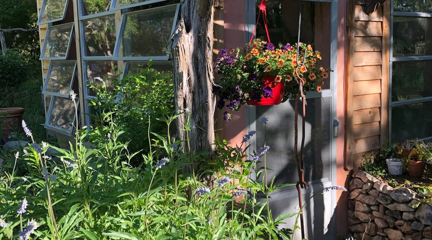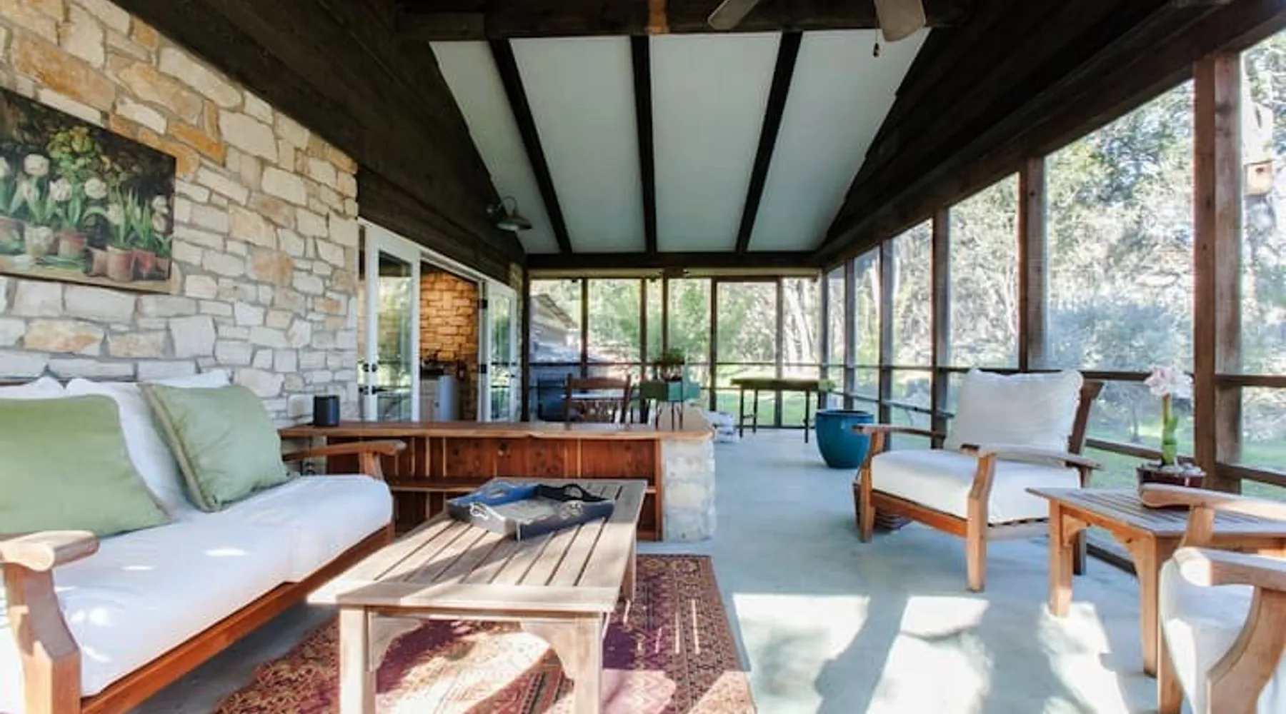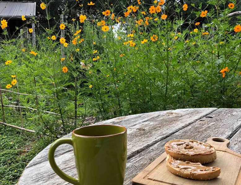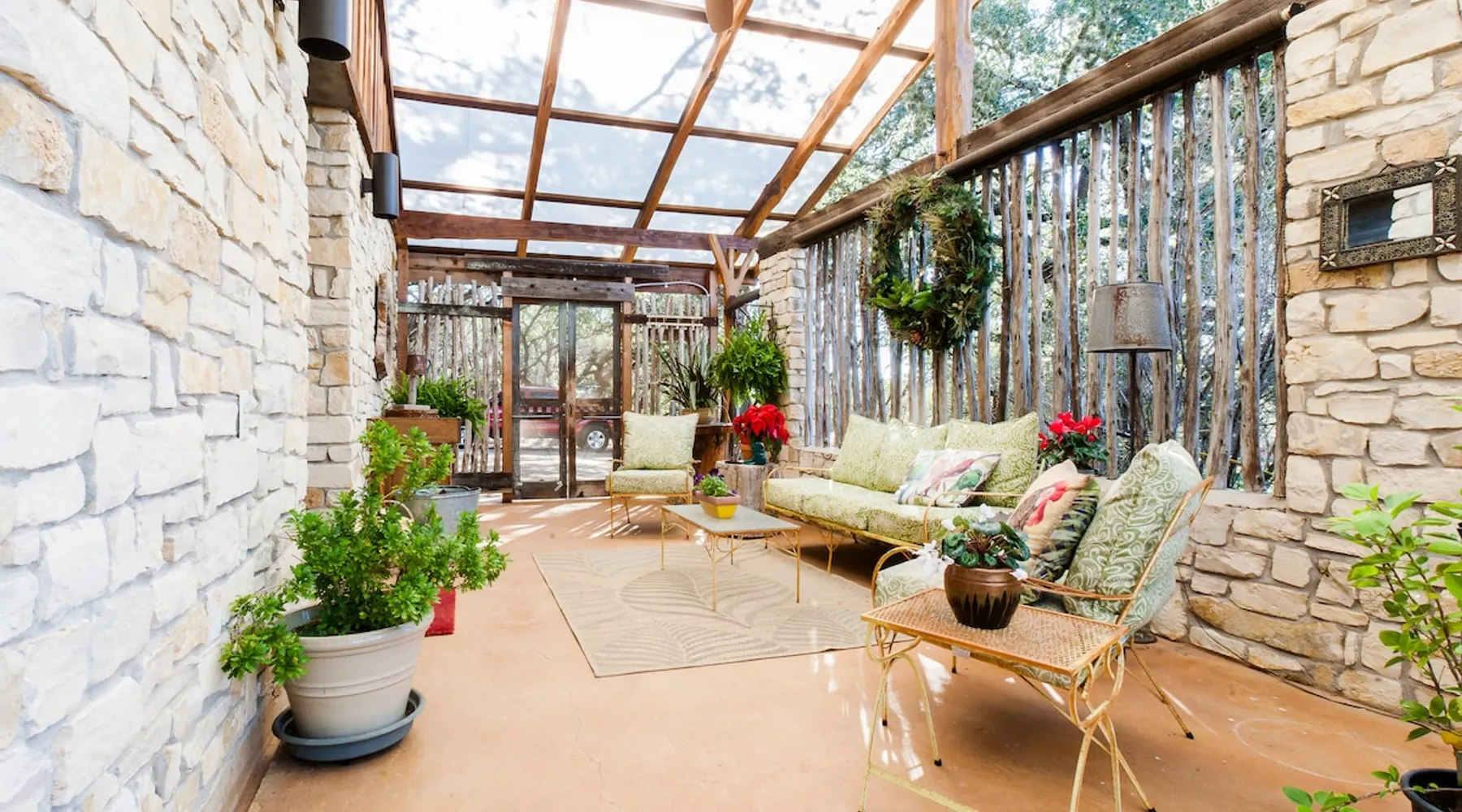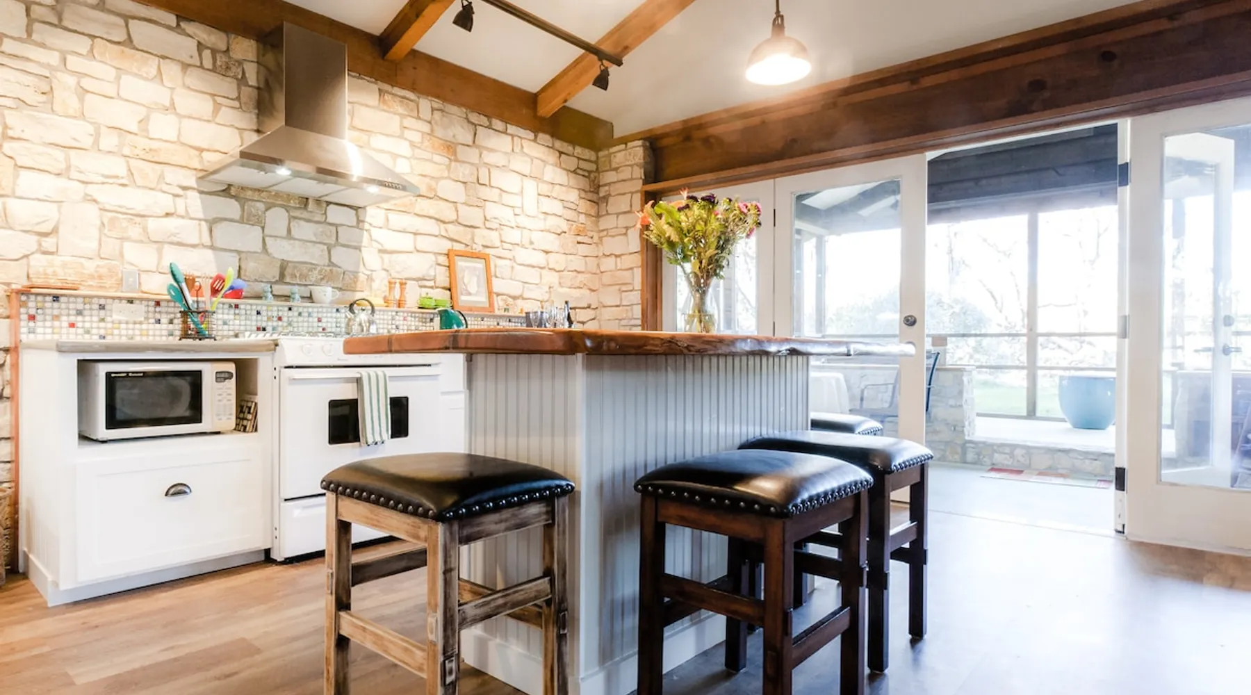 Located 10 miles NW of Wimberley, TX in the Blanco river valley. Majestic oaks, starry nights and a wonderful, quiet stone house so comfortable you won't want to leave. Adults only, must be 21 years of age to reserve. Longer stays with reduced pricing are possible, subject to existing reservations. The space As you enter the driveway you'll pass a magnificent 200 year old oak tree and enter the cottage thru a spacious outdoor living area with a view of the garden. We have laying hens in the coop along the driveway and most afternoons we let them out to free range. Pull up a chair with your favorite beverage and enjoy "chick TV"!! Thick stone exterior walls make for a quiet, relaxing retreat. A fully equipped kitchen and casual dining center around a handcrafted cherry wood topped island. The living area, anchored by a floor to ceiling rock fireplace, beckons you with comfy sofa and sumptuous leather chairs. Light fills the living area thru large patio doors opening onto a screened porch that extends across the entire back of the house with relaxing seating and dining. Outside off the stone patio is a deck overlooking a dry creek. Tucked behind the oak tree is a (cold) outdoor shower. Enjoy a peaceful night's rest on a queen size bed in a quiet, cozy bedroom. The spacious bathroom, with a window to the garden, has a large tiled shower with a stone floor. Guest access Guest have access to entire property including deck overlooking a dry creek, grill area, outdoor shower (cold only) and a large garden with a greenhouse - perfect for morning jo and evening beverages... check it out! The garden area is shared with the tenant in the house next door. Other things to note The Cowboy is great for a couple or friends that want to get away, cook a great meal and chill. Excellent setting for artist and writers. Internet access for browsing and streaming music, satellite TV, AT&T cell service - all others iffy. Guest supply their own firewood, which can be purchased locally at HEB, Ace Hardware and Brookshire Bro’s. Duraflame type logs are not allowed. For your listening enjoyment, we have the Sonos wireless speaker system that you can access by downloading the Sonos app. Pandora and Sonos music is provided and you can also add your own music service. Many scenic drives, an award winning regional park-Blue Hole in Wimberley, famous Jacobs Well natural area, Emily Ann theatre, The Wimberley Players theater and local restaurants, to name a few : Mima's (TexMex), The Leaning Pear, Wimberley Cafe, Chills, The Shady Llama (beer/wine, great views) and others. Casual attire at all establishments. And don't forget the many shops in and around the town square. Book your stay over the first Saturday, March thru December, and enjoy Market Days - a flea market that draws shoppers from across the region.