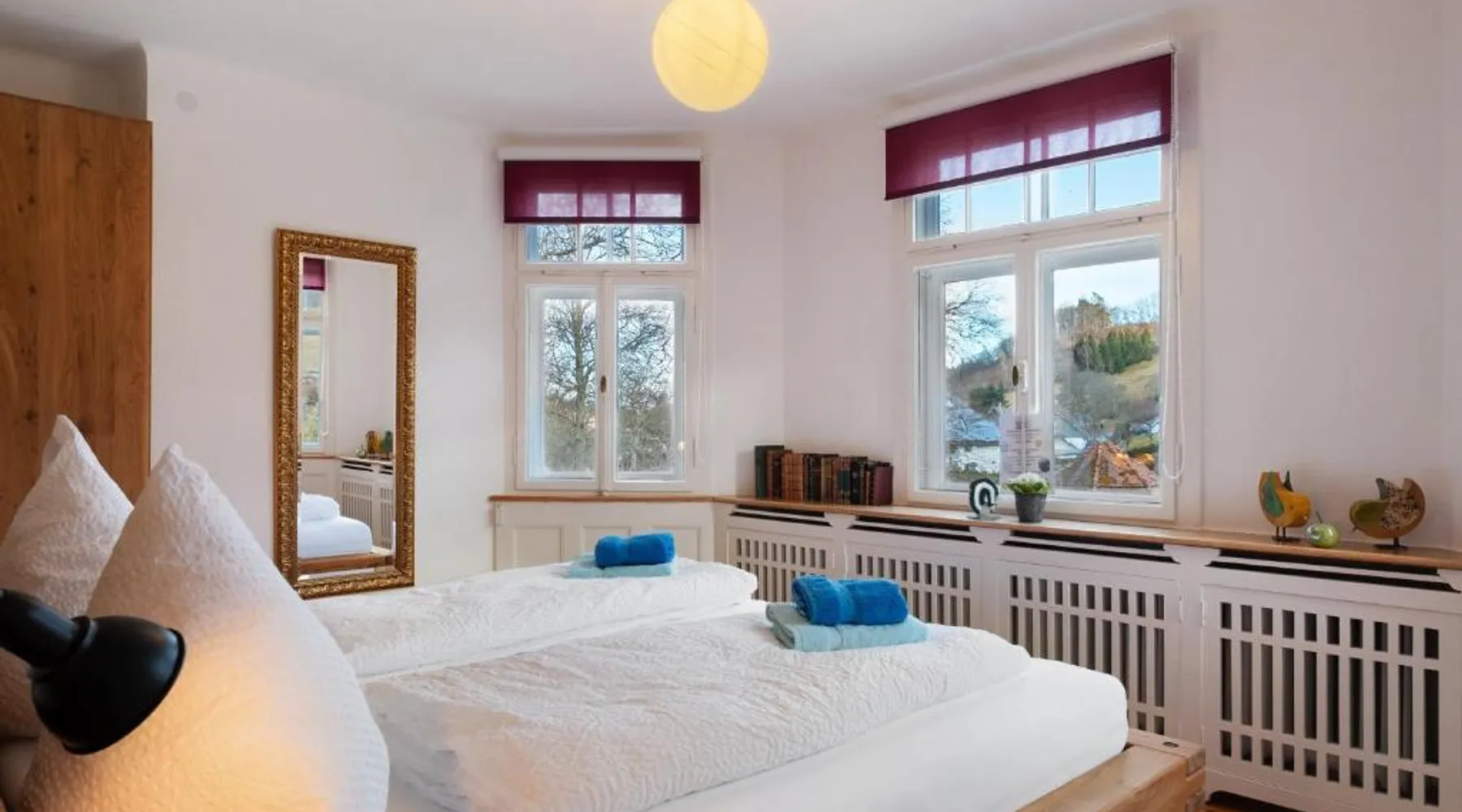 Historic Setting: Ferienwohnungen Am Bühl 1 in Lenzkirch offers a unique apartment experience within a historic building. Guests enjoy garden views and a quiet street setting. Modern Amenities: The apartment features free WiFi, a private bathroom, and a fully equipped kitchen. Additional amenities include a barbecue area, ski storage, and free parking. Local Attractions: Located 5.6 mi from Hochfirst Ski Jump and 25 mi from Freiburg Cathedral, the property provides easy access to skiing, hiking, and cycling. Guest Satisfaction: Highly rated by guests for its excellent facilities and comfortable accommodations. This spacious apartment features 1 living room, 2 separate bedrooms and 1 bathroom with a bath and free toiletries. Guests will find a stovetop, a refrigerator, a dishwasher and kitchenware in the kitchen. The apartment also comes with a barbecue. The apartment features a coffee machine, a safe deposit box, a high chair for children, a TV with streaming services, as well as garden views. The unit has 5 beds.