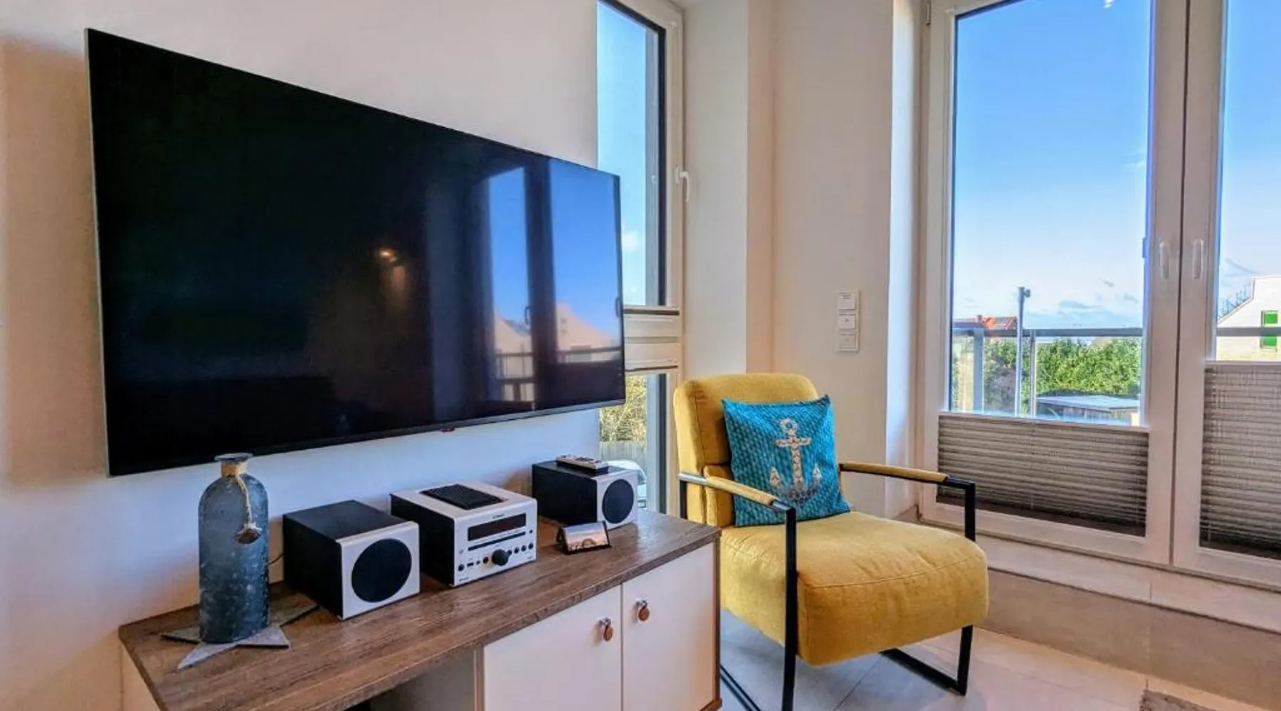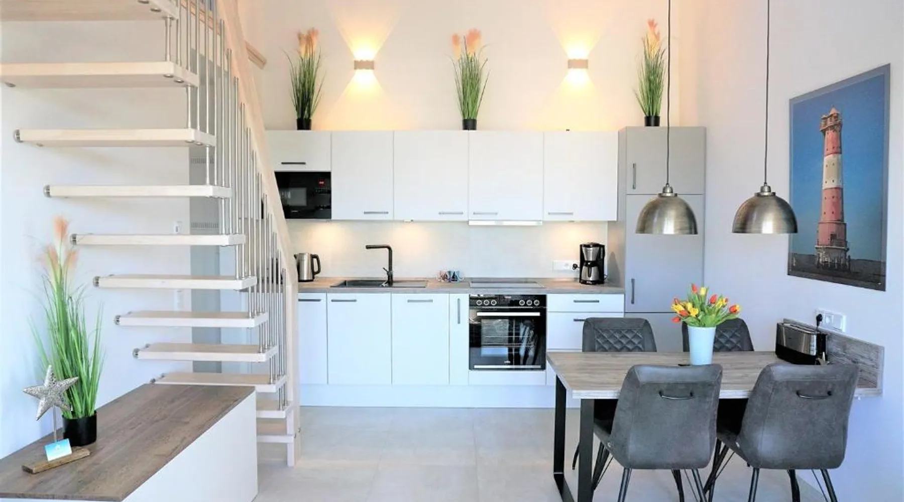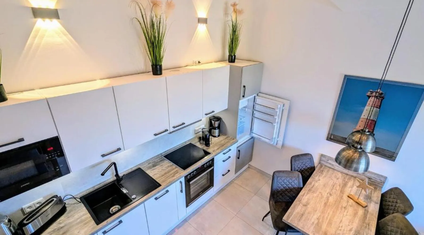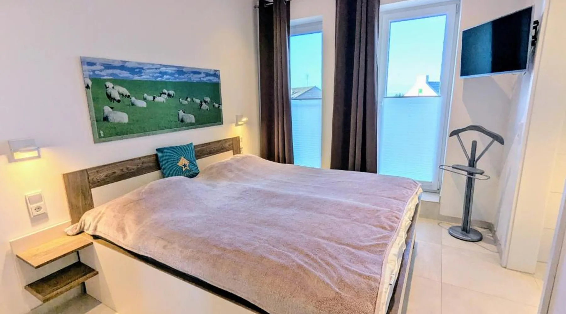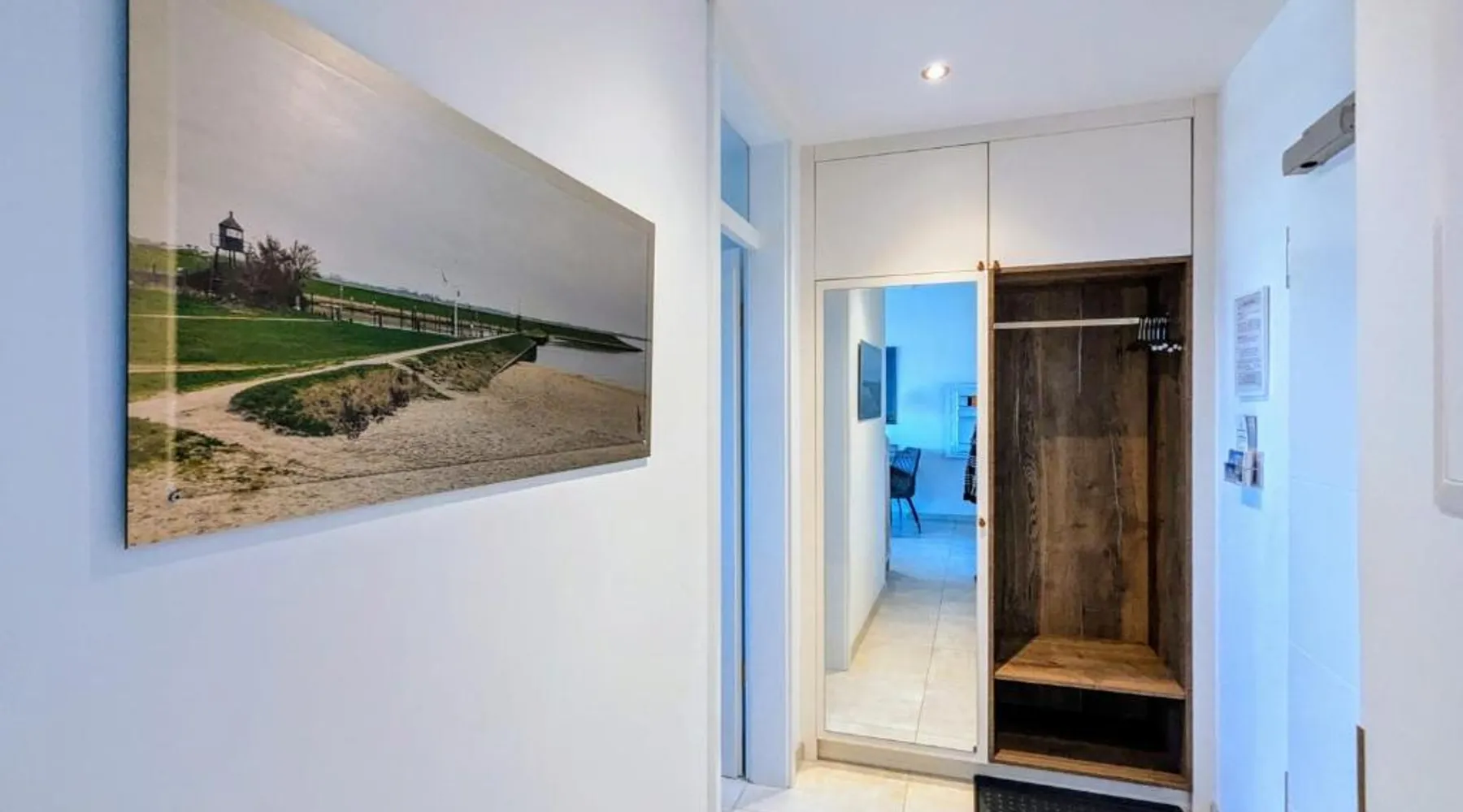 Comfortable Living Space: Jadestern Dangast in Dangast offers a two-bedroom apartment with a balcony and sea views. The property includes a fully equipped kitchen, washing machine, and free WiFi. Convenient Facilities: Guests benefit from a elevator, outdoor seating area, and free on-site private parking. Additional amenities include a dining table, outdoor furniture, and a work desk. Prime Location: Dangaster Beach is a six-minute walk away. Bremen Airport is 50 mi from the property. Nearby attractions include Lappan, House for Media Art Oldenburg, and Oldenburg Water Tower. This apartment consists of a kitchen, a seating area, 2 separate bedrooms and 1 bathroom with a shower and a hairdryer. The well-fitted kitchen features a stovetop, a refrigerator, a dishwasher and kitchenware. Featuring a balcony with sea views, this apartment also provides a washing machine and a TV with satellite channels. The unit offers 2 beds.