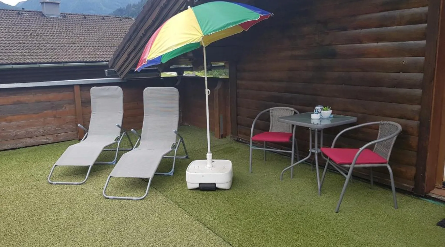 Comfortable Accommodations: Hiasl Stubn in Donnersbach offers family rooms with private bathrooms, balconies, and garden or mountain views. Each room includes a tea and coffee maker, refrigerator, and free toiletries. Exceptional Facilities: Guests enjoy a sun terrace, garden, and free WiFi. Additional amenities include a lounge, shared kitchen, outdoor play area, and bicycle parking. Free on-site private parking is available. Delicious Breakfast: A continental buffet breakfast with local specialties, warm dishes, fresh pastries, and more is served daily. Vegetarian, vegan, and gluten-free options are available. Activities and Attractions: Skiing, walking tours, hiking, and cycling are popular activities. Nearby attractions include Admont Abbey (26 mi), Trautenfels Castle (4.3 mi), and Kulm (9.9 mi). Linz Airport is 73 mi away. Spacious room with wooden furnishings, underfloor heating, a seating area, a flat-screen satellite TV, a bathroom, and a balcony offering panoramic mountain views. A hairdryer is available in the bathroom.