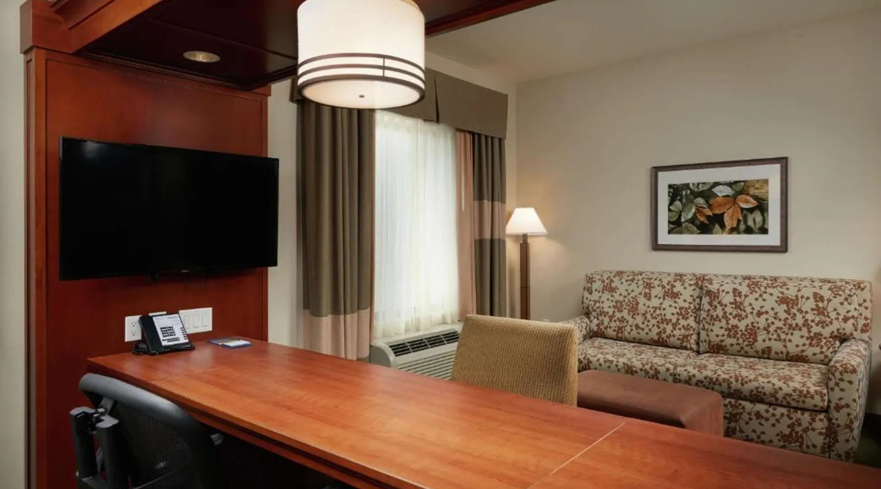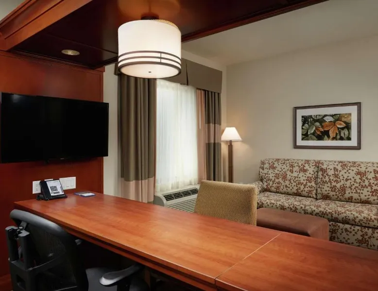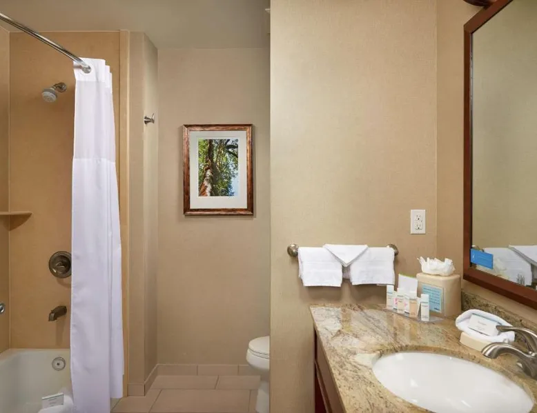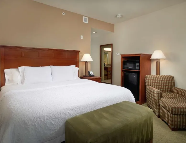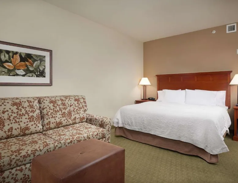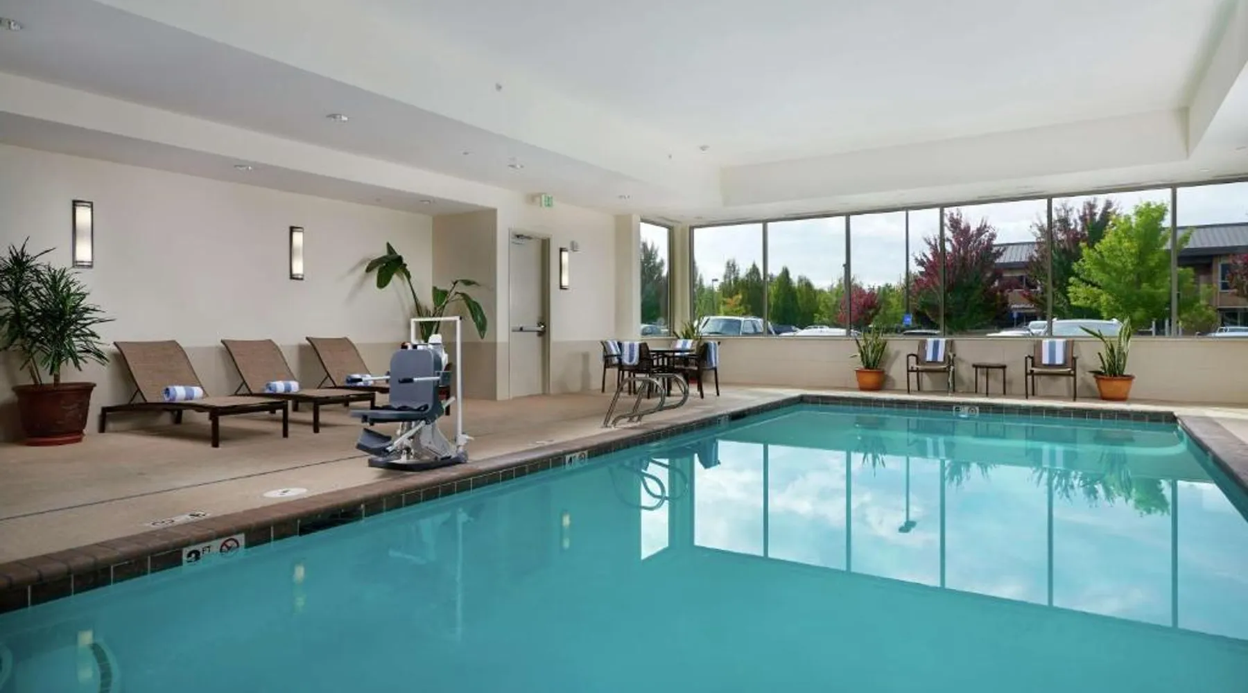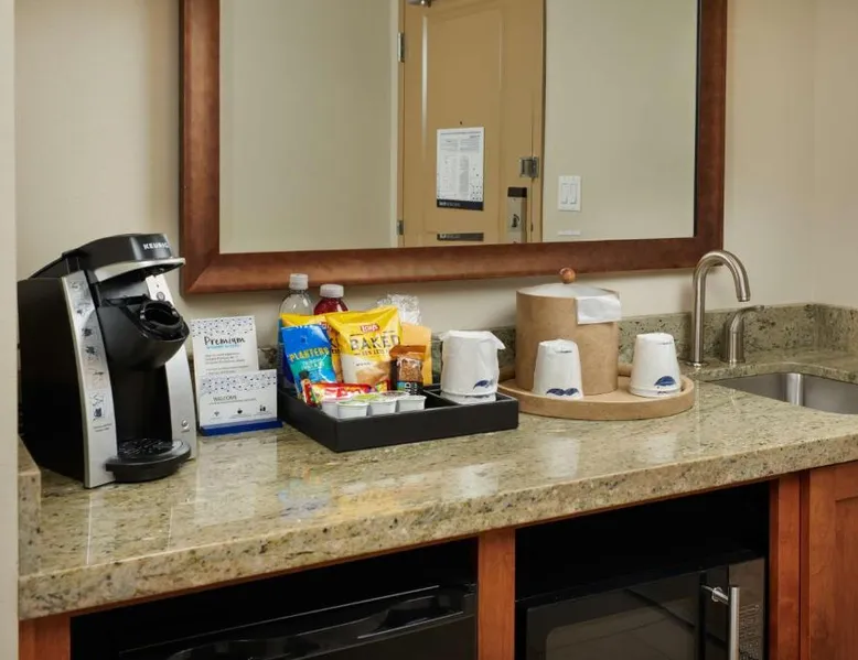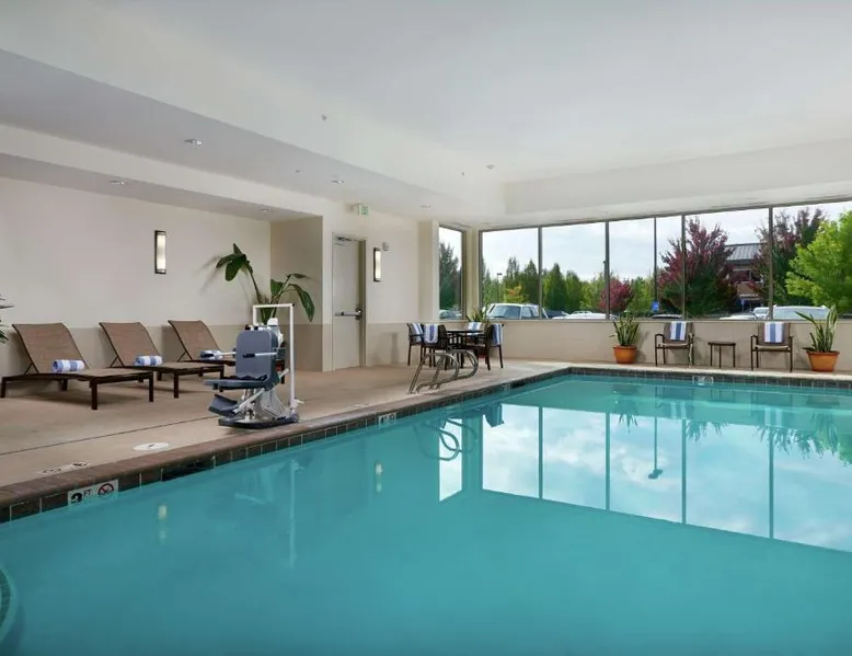 Comfortable Accommodations: Hampton Inn and Suites Salem in Salem offers family rooms with air-conditioning, free WiFi, and amenities such as a tea and coffee maker, refrigerator, and TV. Each room includes a kitchenette, sofa bed, and seating area. Leisure Facilities: Guests can enjoy a saltwater swimming pool, indoor pool, and fitness center. Additional facilities include a hot tub, outdoor seating area, and a 24-hour front desk. Free on-site parking is available. Convenient Location: Located 55 mi from Portland International Airport, the hotel is near attractions like Enchanted Forest Theme Park (7.5 mi) and Linfield College (29 mi). Highly rated for its breakfast, attentive staff, and room cleanliness. Boasting free Wi-Fi and a flat-screen TV with cable, this studio is equipped with coffee-making facilities, a fridge and microwave. A sofa bed is included.