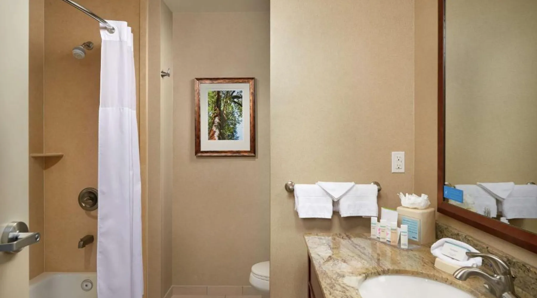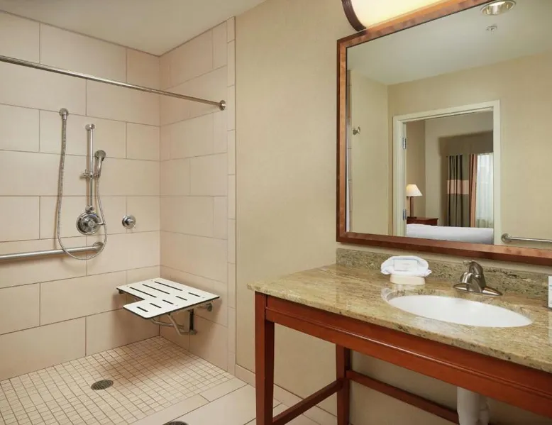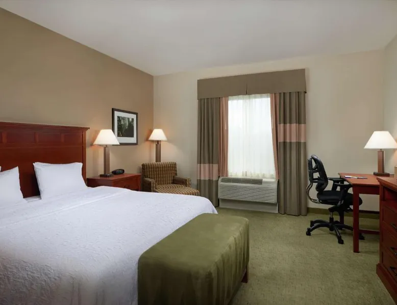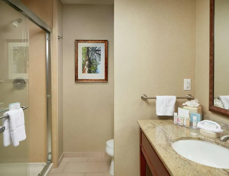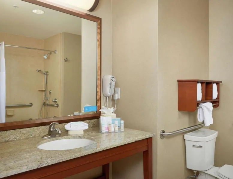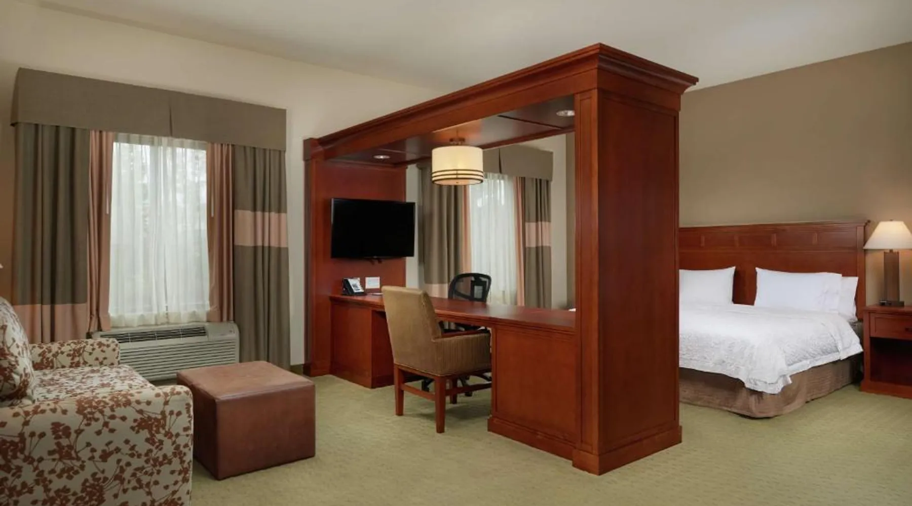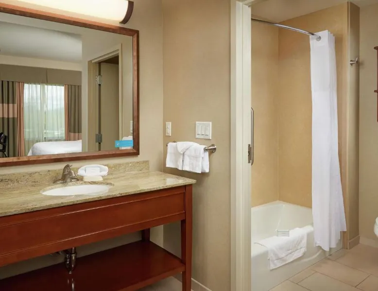 Comfortable Accommodations: Hampton Inn and Suites Salem in Salem offers family rooms with air-conditioning, free WiFi, and amenities such as a tea and coffee maker, refrigerator, and TV. Each room includes a kitchenette, sofa bed, and seating area. Leisure Facilities: Guests can enjoy a saltwater swimming pool, indoor pool, and fitness center. Additional facilities include a hot tub, outdoor seating area, and a 24-hour front desk. Free on-site parking is available. Convenient Location: Located 55 mi from Portland International Airport, the hotel is near attractions like Enchanted Forest Theme Park (7.5 mi) and Linfield College (29 mi). Highly rated for its breakfast, attentive staff, and room cleanliness. Boasting free Wi-Fi and a flat-screen TV with cable, this studio is equipped with coffee-making facilities, a fridge and microwave. A sofa bed is included.