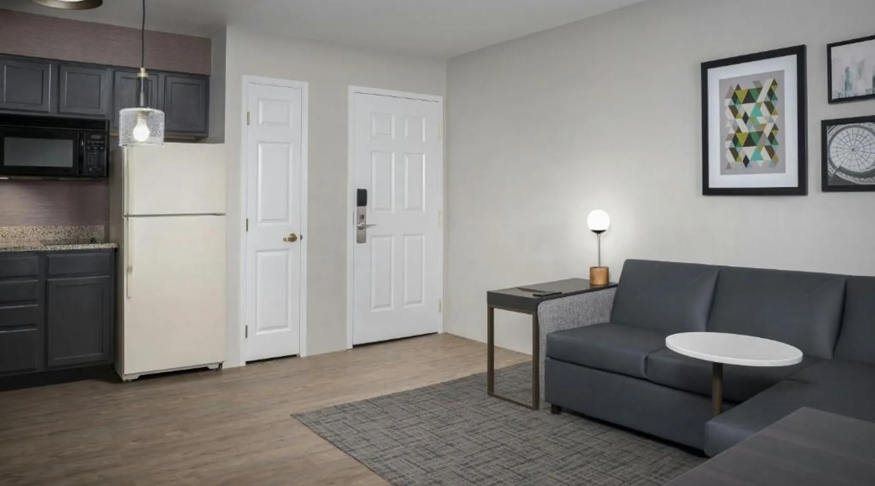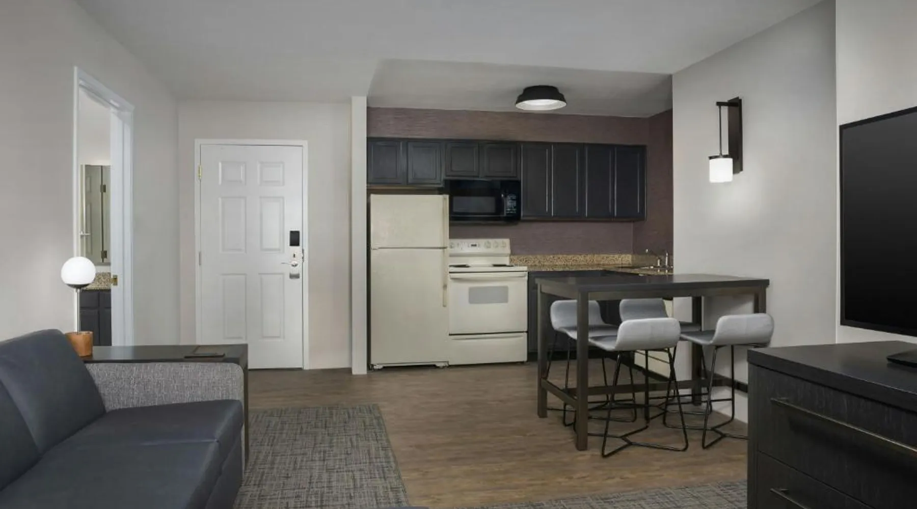 Comfortable Accommodations: Residence Inn Spokane East Valley in Spokane Valley offers family rooms with air-conditioning, kitchenettes, private bathrooms, and free WiFi. Each room includes a work desk, seating area, and TV. Leisure Facilities: Guests can enjoy an indoor swimming pool, hot tub, and fitness center. Free on-site parking is available, along with a 24-hour front desk. Dining Options: A continental breakfast is served daily, providing a variety of options to start the day. Nearby Attractions: Artworks Spokane is 1.1 mi away, Spokane International Airport 17 mi, and MeadowWood Golf Course 6.8 mi from the property. Featuring a full kitchen, this suite offers a living room with a sofa bed and a dining area.