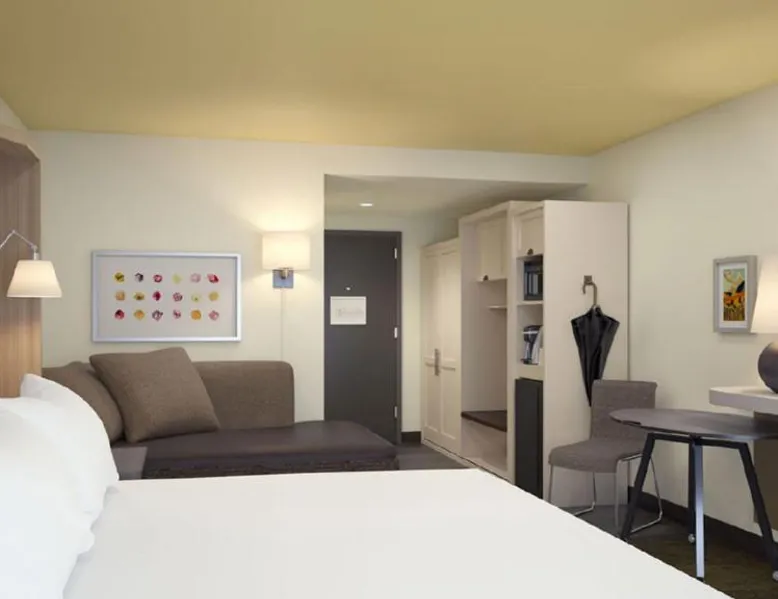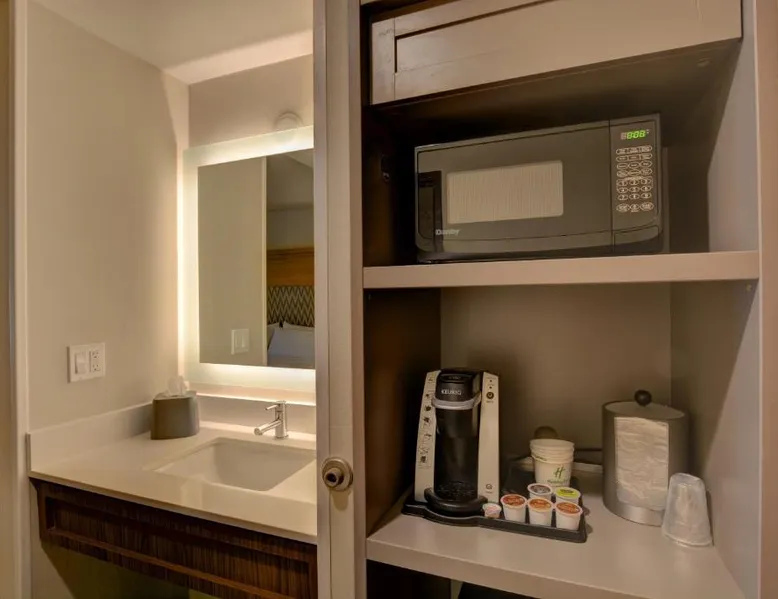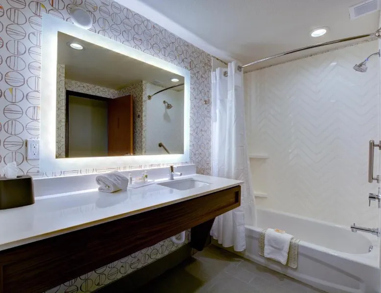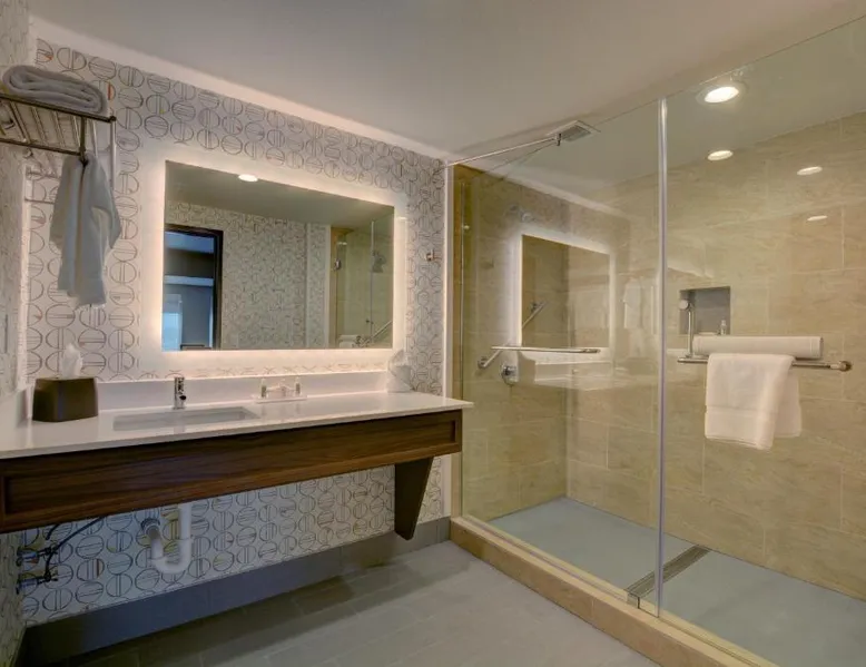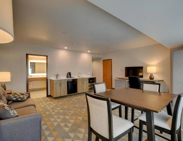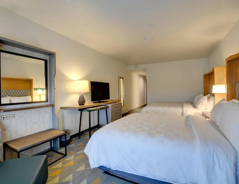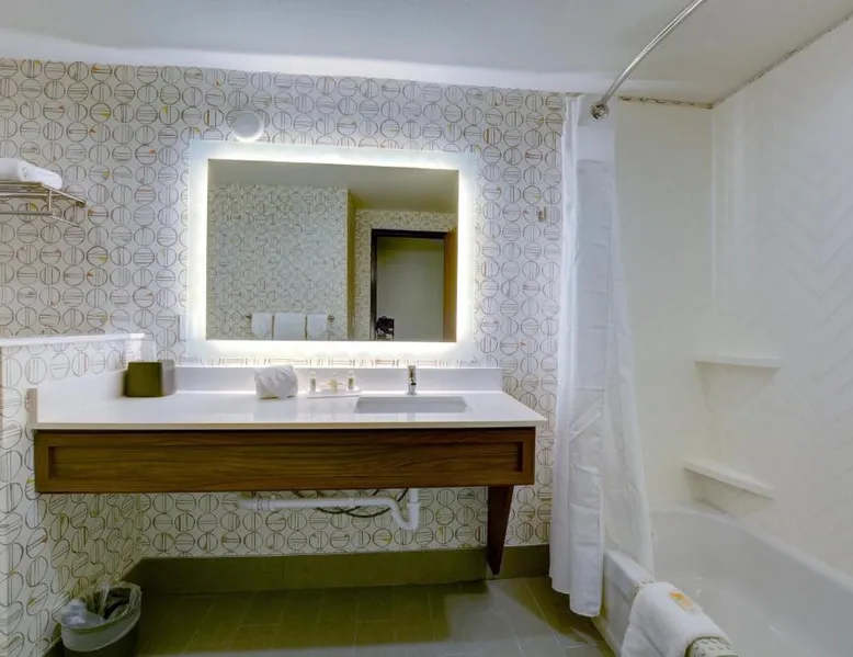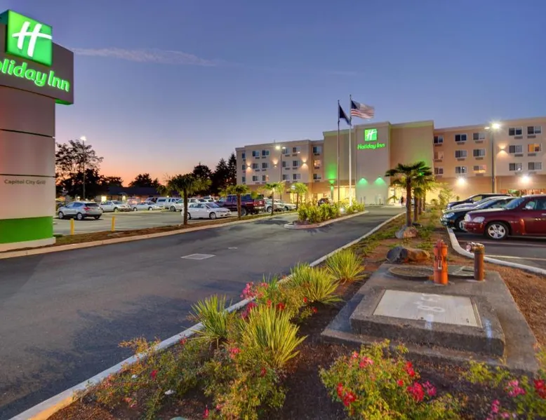 Conveniently located off Interstate 5, this Salem, Oregon hotel is 3 miles from the State Capitol Building. It features an indoor pool, an on site bar and restaurant and has comfortable rooms with free Wi-Fi. A cable TV, a microwave and a refrigerator are provided in each guest room at Holiday Inn Salem. Each air conditioned room includes ironing facilities. Capitol City Grill is located on site at Holiday Inn. The restaurant serves a wide-variety of breakfast, lunch and dinner choices including French toast, wraps and steak, while the lounge offers appetizers and a daily happy hour. 24-hour reception is offered at Holiday Inn Salem. A fitness center and a business center are available on site. Oregon Gardens are 20 minutes’ drive away from this hotel. Woodburn Shopping Outlets are 17 miles away. The Holiday Inn offers the only HUT Portland Airport shuttle location in Salem. This air-conditioned suite includes a flat-screen TV with cable channels and a private bathroom. The unit offers 2 beds.