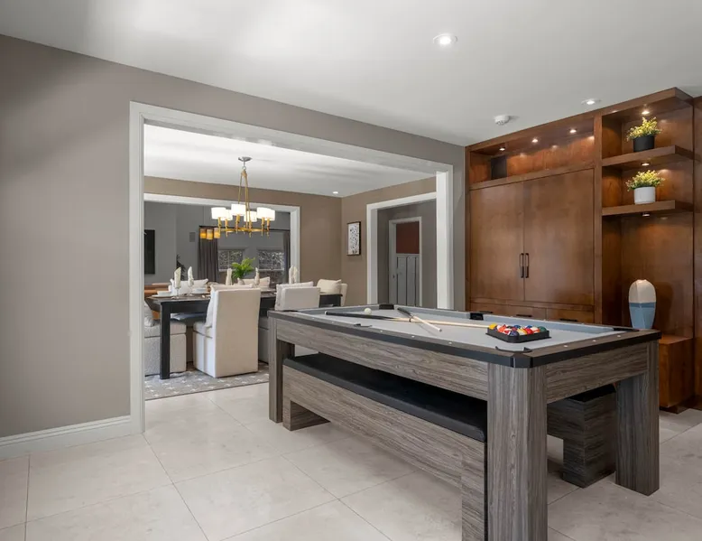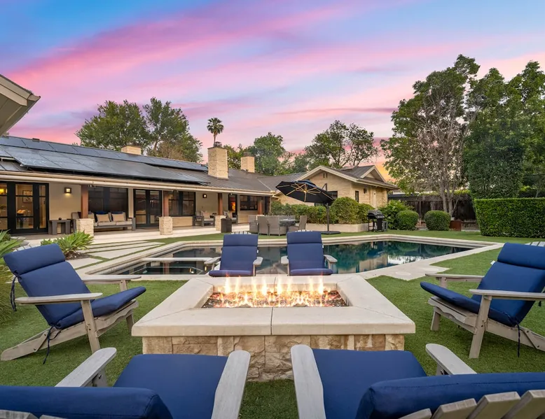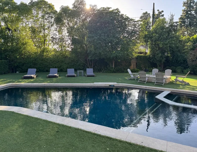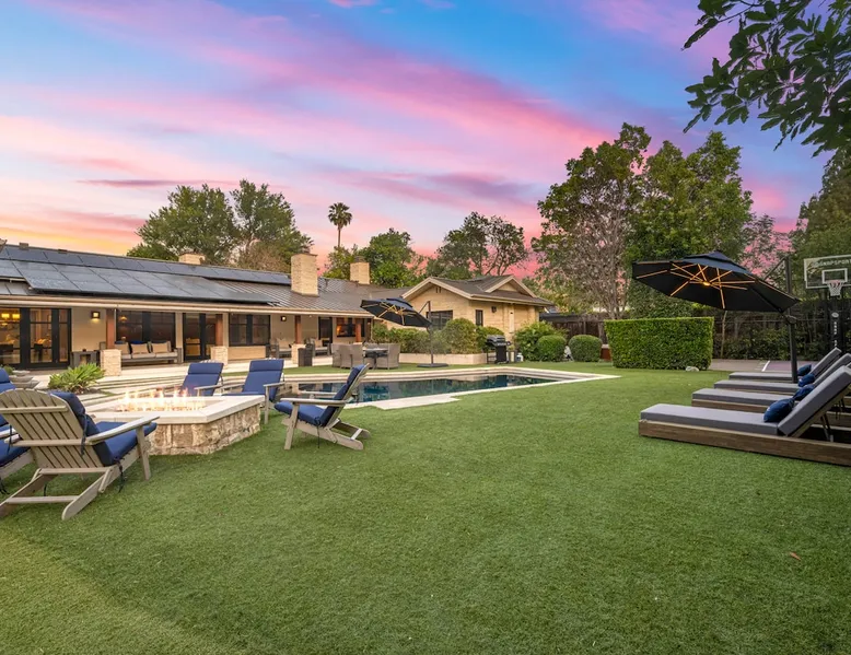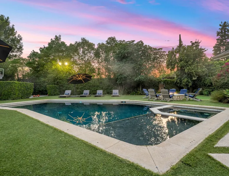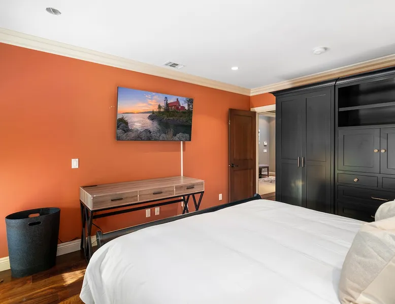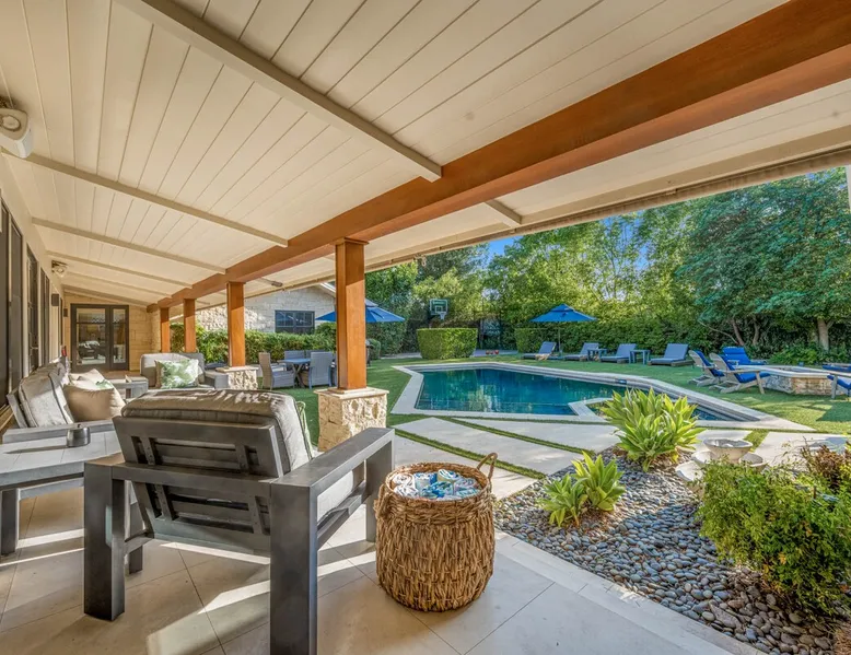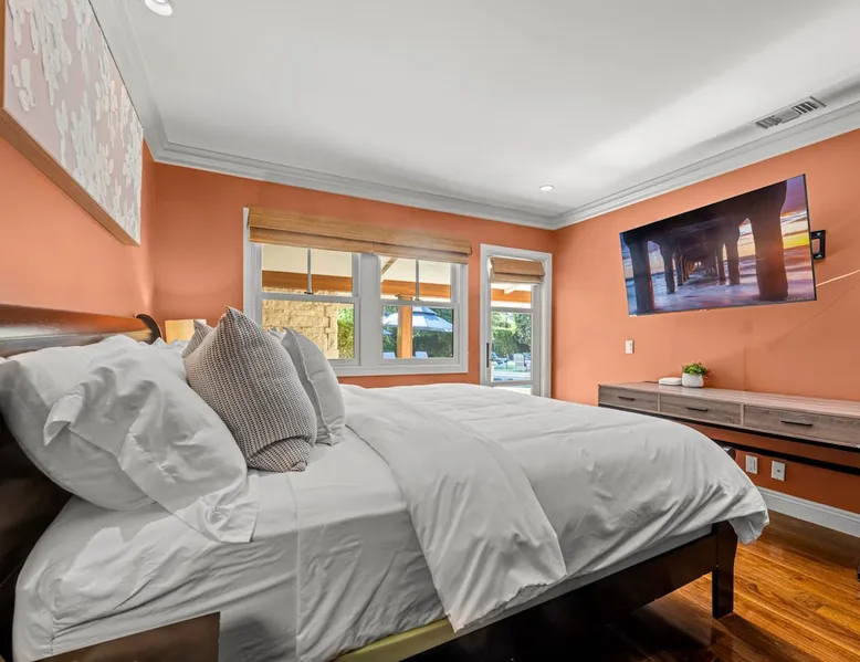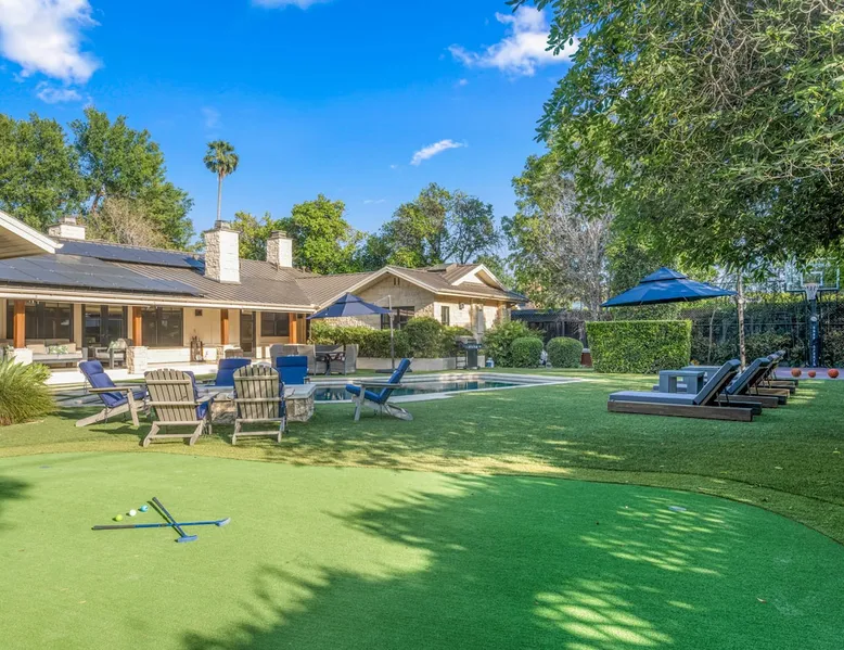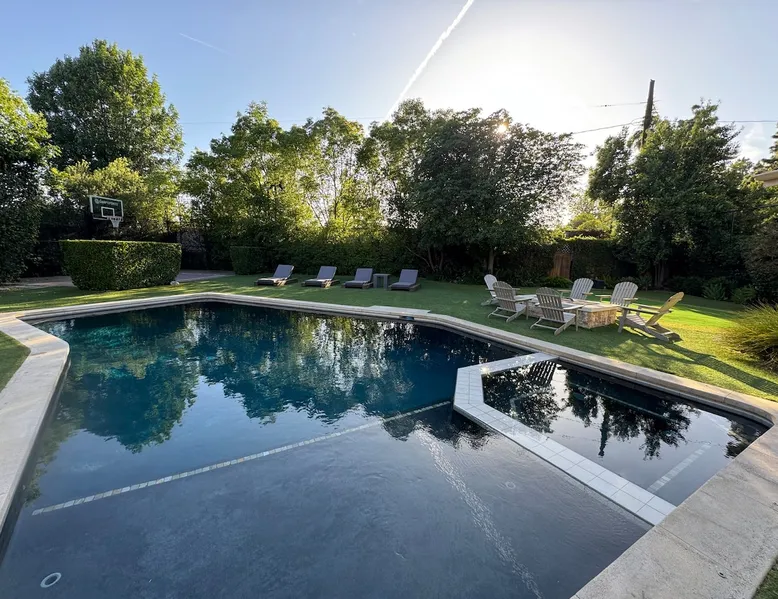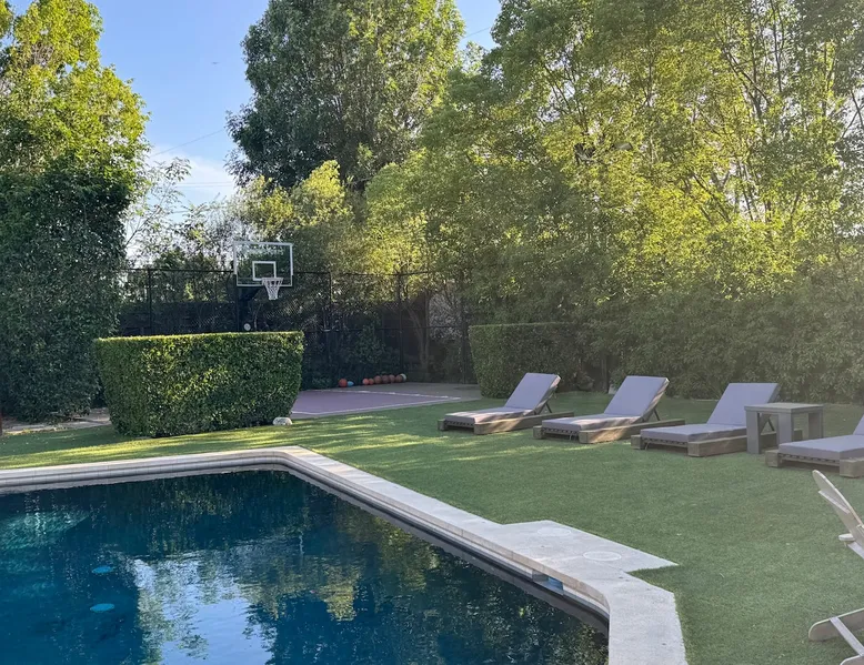 Escape to true luxury in this 4,000-sq-ft single-story gated estate in Sherwood Forest! Enjoy two living rooms, a bar, office, pool & ping-pong tables, and a chef’s kitchen with dual dining areas overlooking the saltwater pool, spa & patio. Relax in the master’s steam shower or Jacuzzi tub. With 5 bedrooms, 4 baths, king beds, EV charger, basketball court & golf putt, this resort-style home is ideal for families, relocations, or insurance housing. The space Inside, the house is just as impressive. The formal living room boasts a cozy fireplace, while the large family room features vaulted ceilings and a sunroof, creating a bright and airy space for gatherings. The full bar is stocked with all the glasses and tools you need to make any drink you desire. Working from home is a breeze with full office space, and there are five bedrooms and four full bathrooms to accommodate guests or family members. The luxury kitchen is a chef's dream, with top-of-the-line appliances and every amenity you could imagine. The bedrooms are equally luxurious, with large Jacuzzi tubs, bidet toilet, and vanity areas for getting ready in style. And to top it all off, every room in the house is equipped with its own TV for your entertainment pleasure. This house truly has it all, offering the ultimate in luxury living in the heart of Sherwood Forest. Electric car plug available. Guest access At Rent My LA Pad, we believe in providing full, private homes so families can enjoy complete comfort, space, and peace of mind during their stay. Other things to note -Master bedroom steam shower now available -EV Charger plug for your electric car available. -Saltwater pool-amazing for relaxation and for your skin -comfortable fire pit seating -upscale loungers -2 Jacuzzi tubs in two of the bathrooms, one Jacuzzi tub with lights, bubbles, and reheating feature in the master bathroom crossing the gorgeous vanity and steam shower awesome bidet toilet with the door that goes to the back. -pool table/ping-pong/dining table combination inside. -Many board games added, including taboo, Uno, Ginga, Pictionary and more -hosting large dinners is easy. You have the indoor dining for six, the bar which can seat up to seven and the pool table can also be turned into an additional dining table for six so you could see up to 20 people. Additional chairs for dinners can be found in various rooms and potentially in the garage. -this is a five bedroom home, there is an office that can be separated out like a bedroom with curtains on one side and doors to the last bedroom on the other with a queen sofa sleeper. There’s also two rollaway beds in the garage that can be put into other bedrooms around the house sleeping 14 in beds Pool heating: Spa heating is $59 per session (1-4 hours) and pool heating (spa heating is automatically included if the pool heating purchased) is $275 per day each day you booked; 4-day minimum. It takes a day to heat the pool so let us know 48 hrs. before check-in if you want the pool heated and at what temperature. *89-93 is recommended. We will assist with the pool and spa heater. Please note if pool heating is purchased the guest is responsible to check and make sure the pool heater is on overnight as this is not an app controlled pool heater. Please let us know what days and times you want the pool/spa heated so we can schedule it for your stay. BBQ: Please note we provide a BBQ grill and empty propane tanks. If you would like our staff to fill up the propane tank for you it's $69/per tank. Otherwise, the tanks can be filled at a nearby propane gas station or store for only the cost of the propane. Please let us know if you have any questions. For rentals of 30 days or longer, a flat, non-refundable utilities fee is required. This fee is calculated based on the size of the property and seasonal usage, and must be paid upfront. Monthly stays have a base utilities fee $79/day. With daily Pool heating - an additional $89/day to base utilities, If only daily spa heating - an additional $39/day to base utilities. This home is pet friendly and there is a $250 pet cleaning fee. This fee is per pet. Important Note for Late or Last-Minute Bookings: Thank you for your reservation! Please note that for bookings made after 4 PM or for same-day arrivals, we may not always have time to fully refresh the property before your check-in, depending on the timing of your reservation. If you notice anything that needs attention upon arrival, please don’t hesitate to message us — we’re happy to send someone out the next day to take care of it. Your comfort is our priority, and we’ll do our best to ensure you have a great stay. Currently, a few minor improvements are being considered, including touch-ups to the flooring and paint, the removal of a few small corner imperfections, and correction of minor paint inconsistencies. Registration Details HSR25-001759