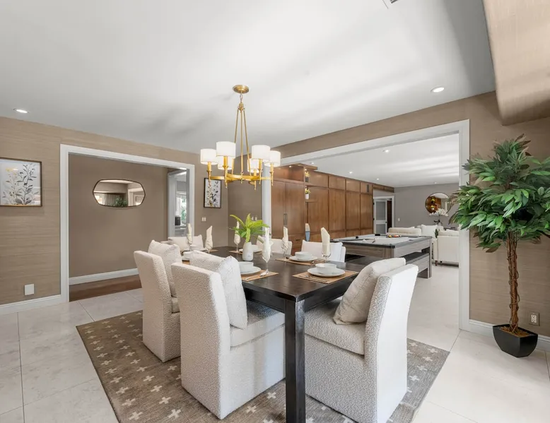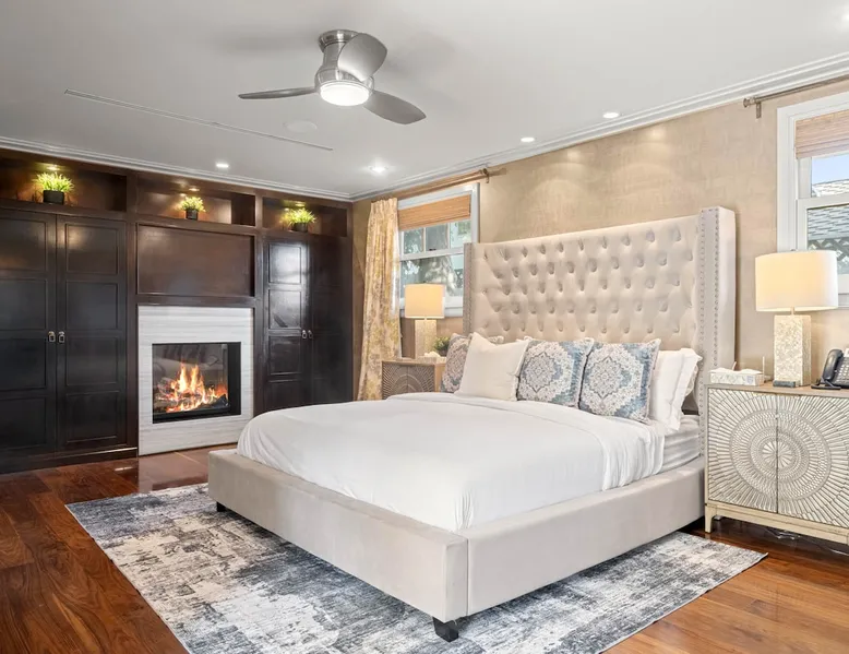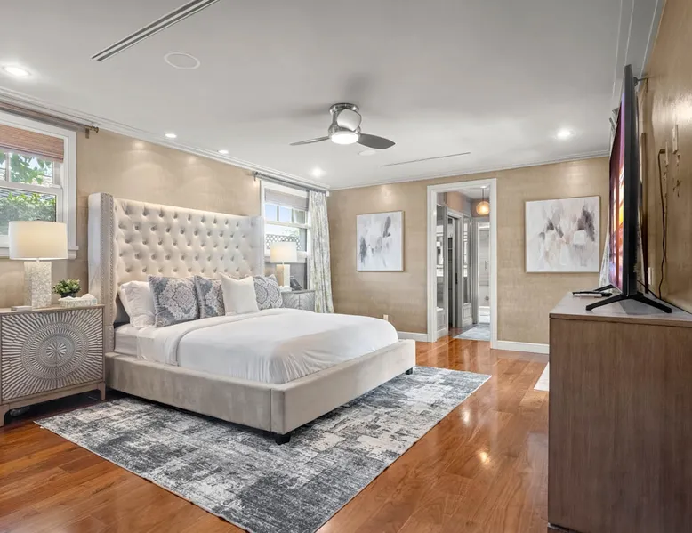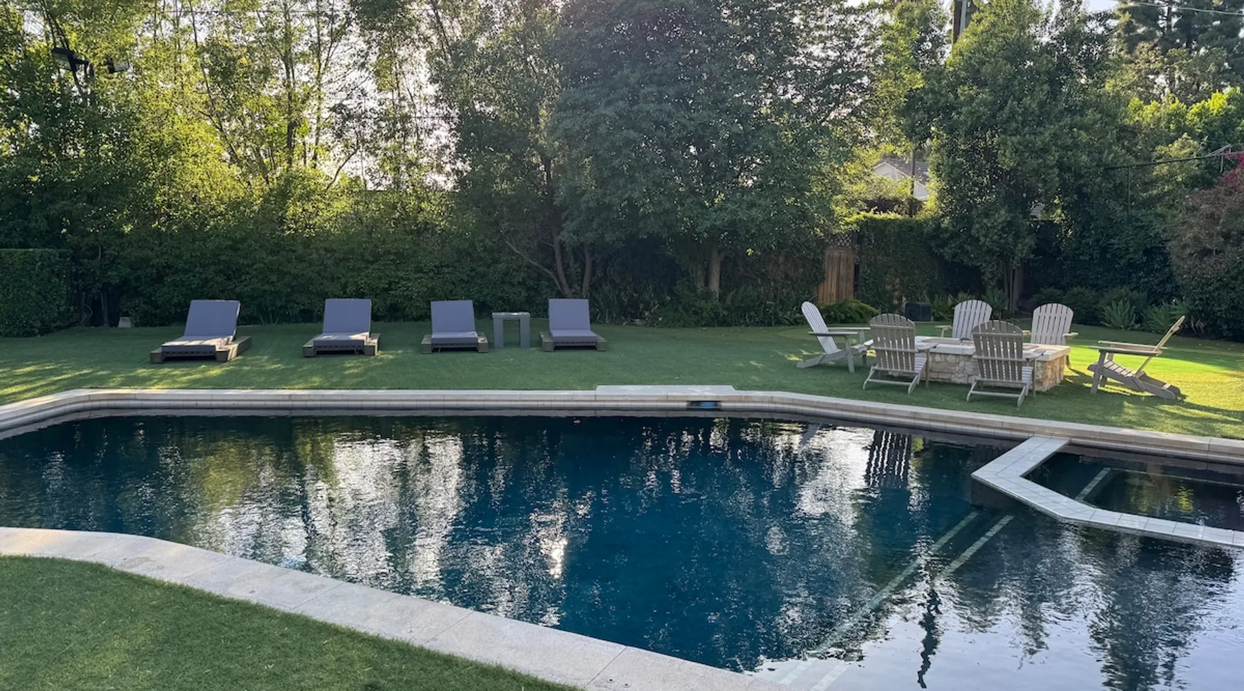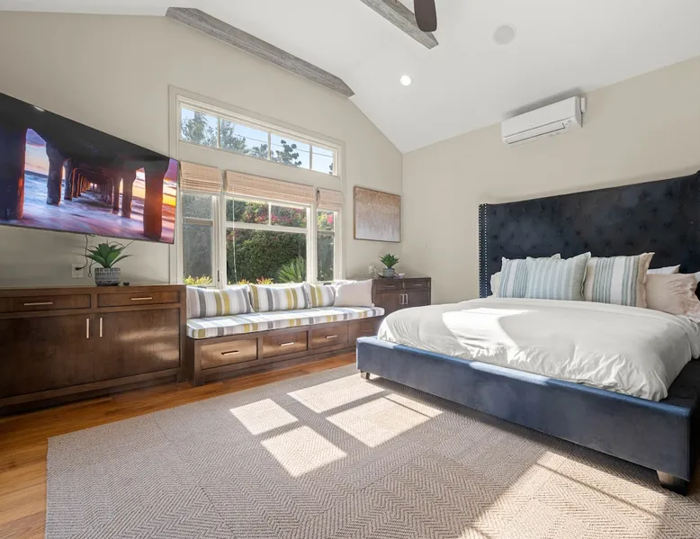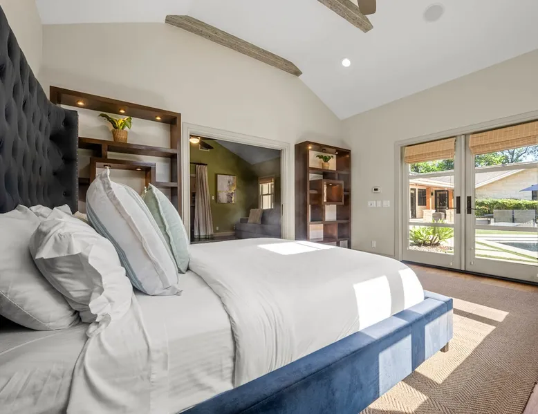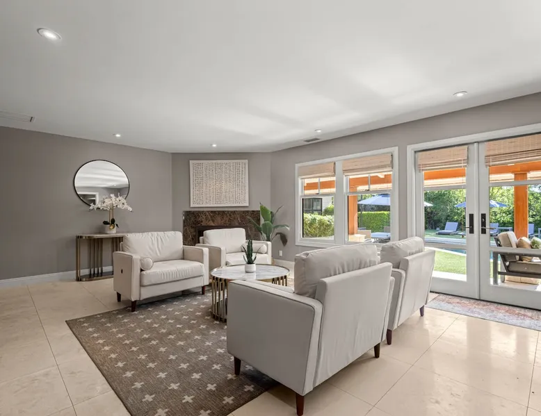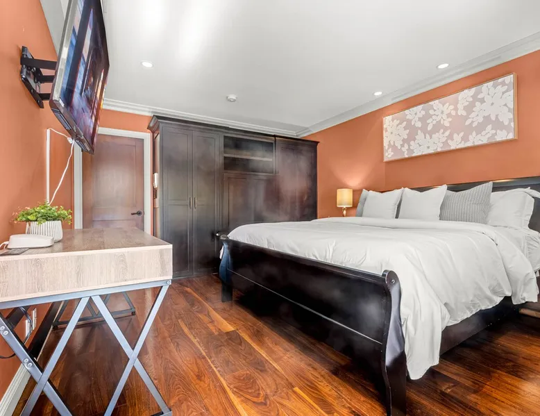 Escape to true luxury in this 4,000-sq-ft single-story gated estate in Sherwood Forest! Enjoy two living rooms, a bar, office, pool & ping-pong tables, and a chef’s kitchen with dual dining areas overlooking the saltwater pool, spa & patio. Relax in the master’s steam shower or Jacuzzi tub. With 5 bedrooms, 4 baths, king beds, EV charger, basketball court & golf putt, this resort-style home is ideal for families, relocations, or insurance housing. The space Inside, the house is just as impressive. The formal living room boasts a cozy fireplace, while the large family room features vaulted ceilings and a sunroof, creating a bright and airy space for gatherings. The full bar is stocked with all the glasses and tools you need to make any drink you desire. Working from home is a breeze with full office space, and there are five bedrooms and four full bathrooms to accommodate guests or family members. The luxury kitchen is a chef's dream, with top-of-the-line appliances and every amenity you could imagine. The bedrooms are equally luxurious, with large Jacuzzi tubs, bidet toilet, and vanity areas for getting ready in style. And to top it all off, every room in the house is equipped with its own TV for your entertainment pleasure. This house truly has it all, offering the ultimate in luxury living in the heart of Sherwood Forest. Electric car plug available. Guest access At Rent My LA Pad, we believe in providing full, private homes so families can enjoy complete comfort, space, and peace of mind during their stay. Other things to note -Master bedroom steam shower now available -EV Charger plug for your electric car available. -Saltwater pool-amazing for relaxation and for your skin -comfortable fire pit seating -upscale loungers -2 Jacuzzi tubs in two of the bathrooms, one Jacuzzi tub with lights, bubbles, and reheating feature in the master bathroom crossing the gorgeous vanity and steam shower awesome bidet toilet with the door that goes to the back. -pool table/ping-pong/dining table combination inside. -Many board games added, including taboo, Uno, Ginga, Pictionary and more -hosting large dinners is easy. You have the indoor dining for six, the bar which can seat up to seven and the pool table can also be turned into an additional dining table for six so you could see up to 20 people. Additional chairs for dinners can be found in various rooms and potentially in the garage. -this is a five bedroom home, there is an office that can be separated out like a bedroom with curtains on one side and doors to the last bedroom on the other with a queen sofa sleeper. There’s also two rollaway beds in the garage that can be put into other bedrooms around the house sleeping 14 in beds Pool heating: Spa heating is $59 per session (1-4 hours) and pool heating (spa heating is automatically included if the pool heating purchased) is $275 per day each day you booked; 4-day minimum. It takes a day to heat the pool so let us know 48 hrs. before check-in if you want the pool heated and at what temperature. *89-93 is recommended. We will assist with the pool and spa heater. Please note if pool heating is purchased the guest is responsible to check and make sure the pool heater is on overnight as this is not an app controlled pool heater. Please let us know what days and times you want the pool/spa heated so we can schedule it for your stay. BBQ: Please note we provide a BBQ grill and empty propane tanks. If you would like our staff to fill up the propane tank for you it's $69/per tank. Otherwise, the tanks can be filled at a nearby propane gas station or store for only the cost of the propane. Please let us know if you have any questions. For rentals of 30 days or longer, a flat, non-refundable utilities fee is required. This fee is calculated based on the size of the property and seasonal usage, and must be paid upfront. Monthly stays have a base utilities fee $79/day. With daily Pool heating - an additional $89/day to base utilities, If only daily spa heating - an additional $39/day to base utilities. This home is pet friendly and there is a $250 pet cleaning fee. This fee is per pet. Important Note for Late or Last-Minute Bookings: Thank you for your reservation! Please note that for bookings made after 4 PM or for same-day arrivals, we may not always have time to fully refresh the property before your check-in, depending on the timing of your reservation. If you notice anything that needs attention upon arrival, please don’t hesitate to message us — we’re happy to send someone out the next day to take care of it. Your comfort is our priority, and we’ll do our best to ensure you have a great stay. Currently, a few minor improvements are being considered, including touch-ups to the flooring and paint, the removal of a few small corner imperfections, and correction of minor paint inconsistencies. Registration Details HSR25-001759