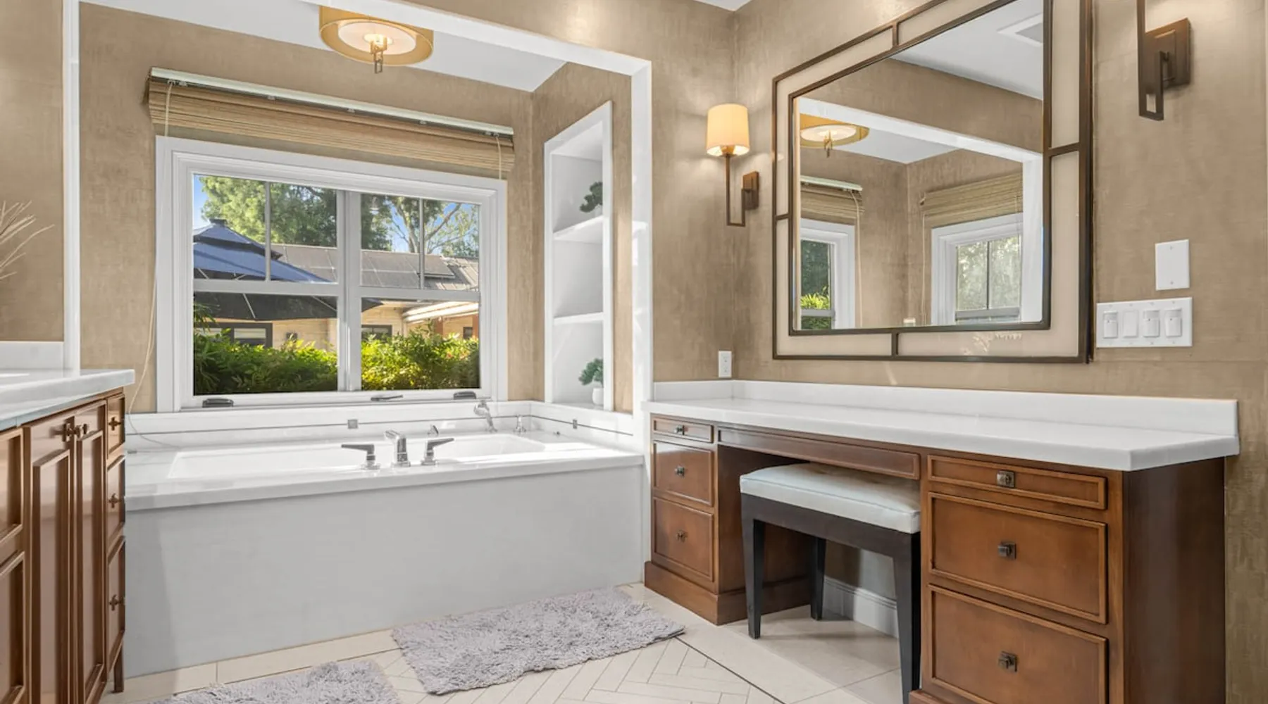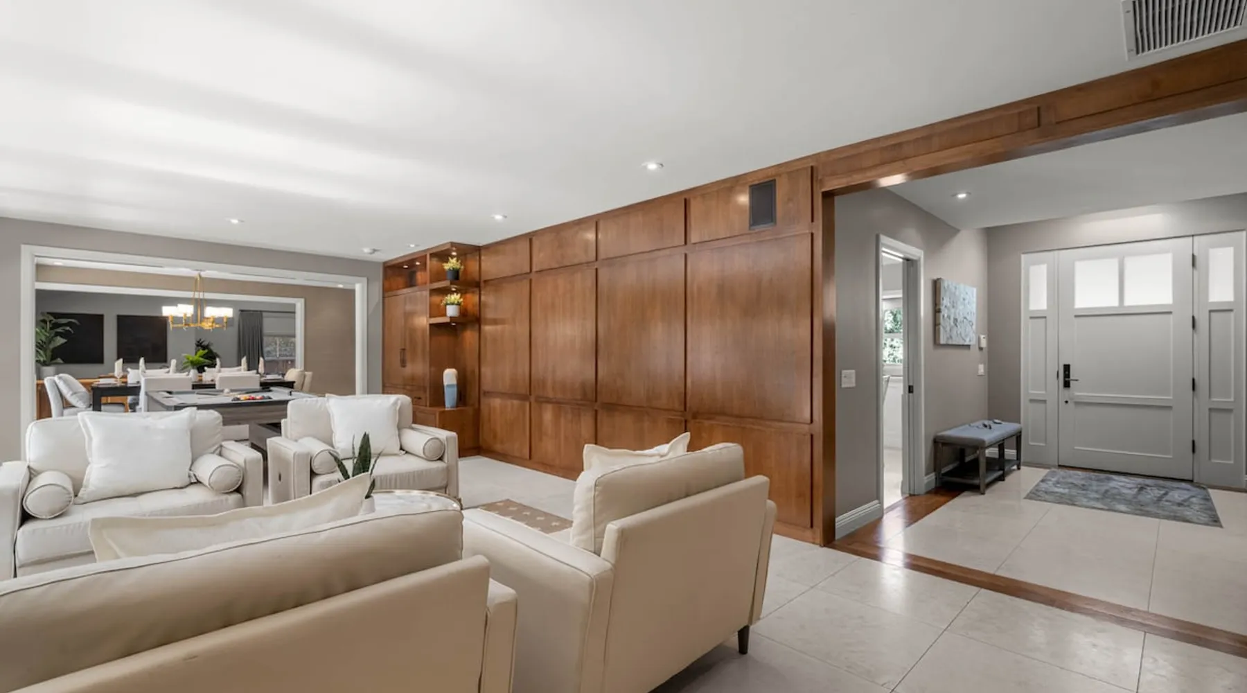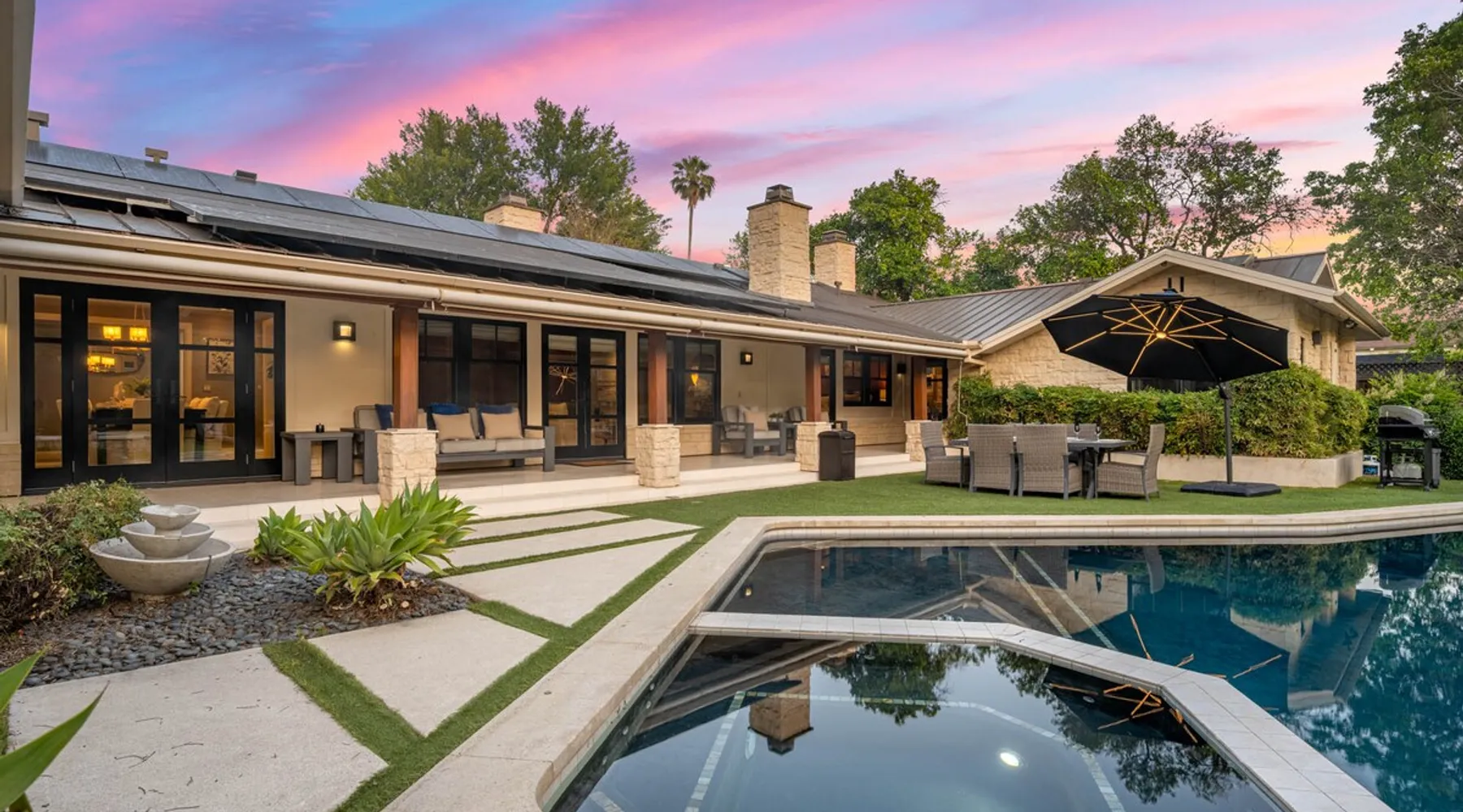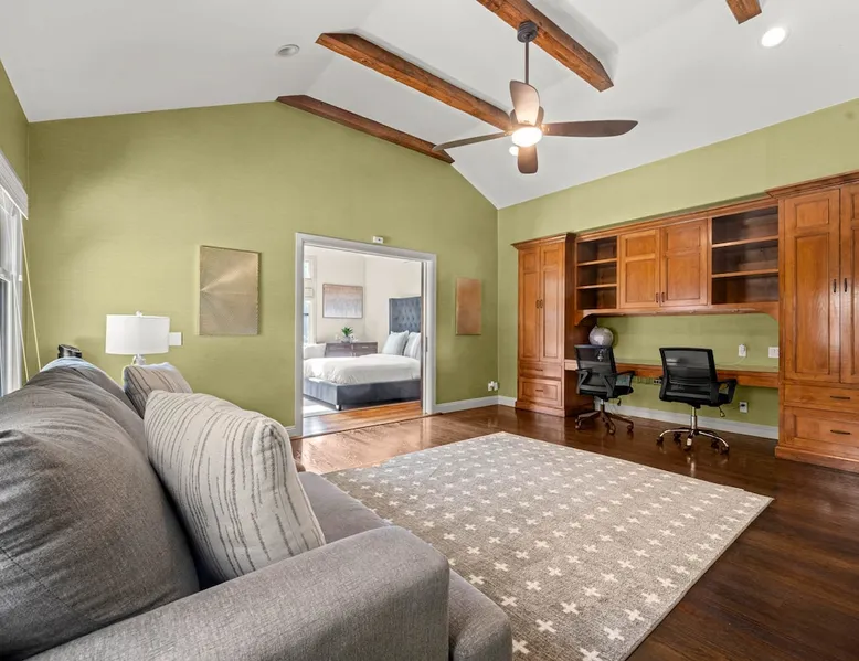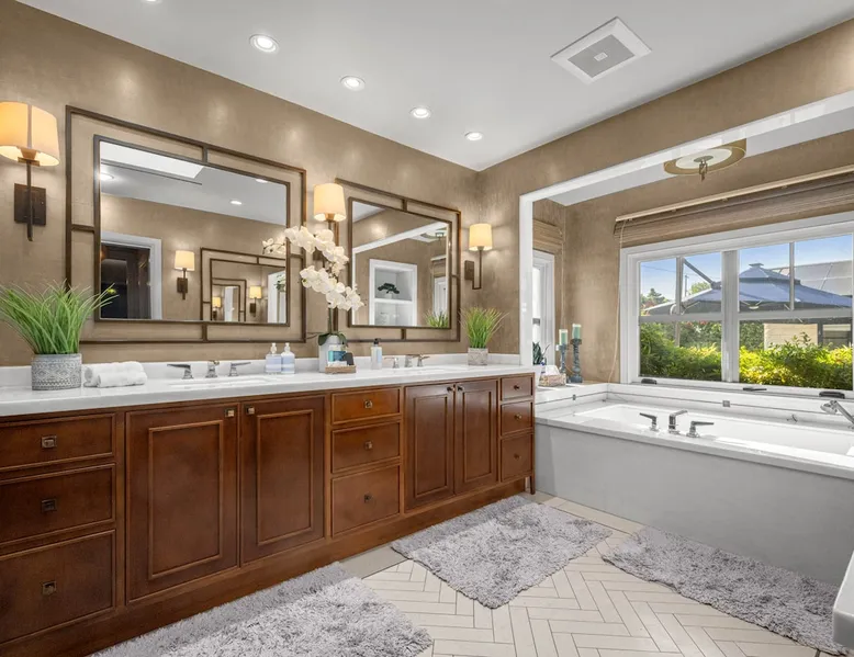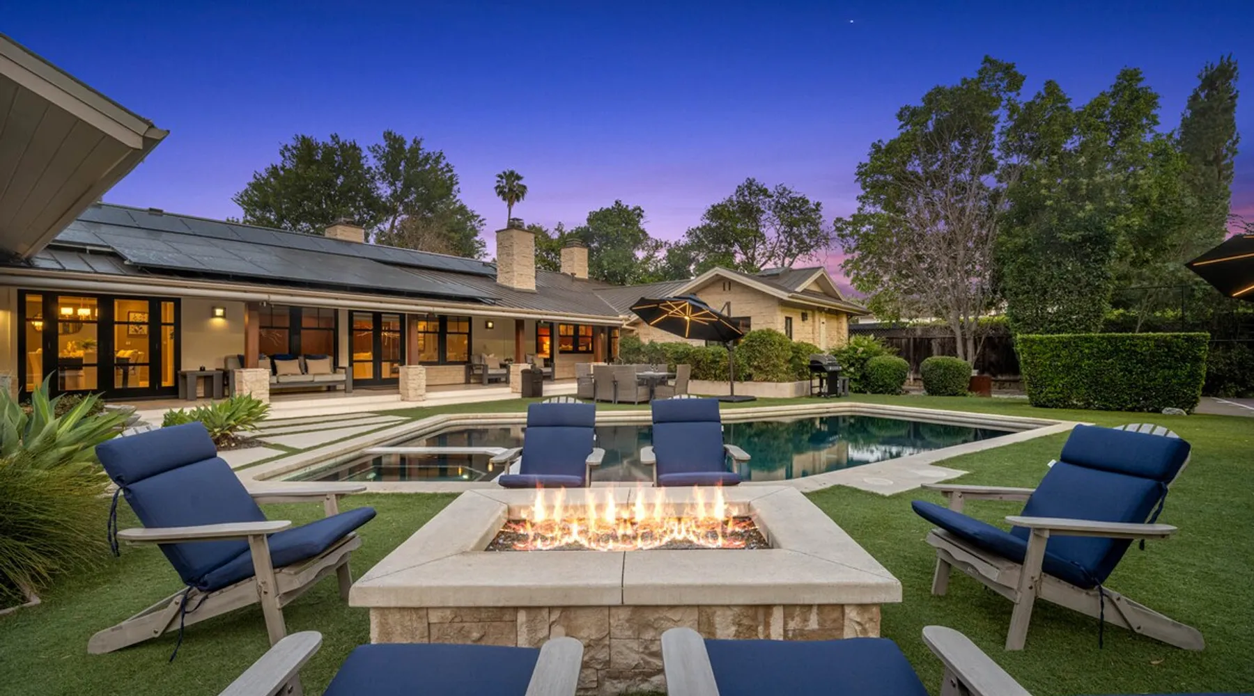Escape to true luxury in this 4,000-sq-ft single-story gated estate in Sherwood Forest! Enjoy two living rooms, a bar, office, pool & ping-pong tables, and a chef’s kitchen with dual dining areas overlooking the saltwater pool, spa & patio. Relax in the master’s steam shower or Jacuzzi tub. With 5 bedrooms, 4 baths, king beds, EV charger, basketball court & golf putt, this resort-style home is ideal for families, relocations, or insurance housing. The space Inside, the house is just as impressive. The formal living room boasts a cozy fireplace, while the large family room features vaulted ceilings and a sunroof, creating a bright and airy space for gatherings. The full bar is stocked with all the glasses and tools you need to make any drink you desire. Working from home is a breeze with full office space, and there are five bedrooms and four full bathrooms to accommodate guests or family members. The luxury kitchen is a chef's dream, with top-of-the-line appliances and every amenity you could imagine. The bedrooms are equally luxurious, with large Jacuzzi tubs, bidet toilet, and vanity areas for getting ready in style. And to top it all off, every room in the house is equipped with its own TV for your entertainment pleasure. This house truly has it all, offering the ultimate in luxury living in the heart of Sherwood Forest. Electric car plug available. Guest access At Rent My LA Pad, we believe in providing full, private homes so families can enjoy complete comfort, space, and peace of mind during their stay. Other things to note -Master bedroom steam shower now available -EV Charger plug for your electric car available. -Saltwater pool-amazing for relaxation and for your skin -comfortable fire pit seating -upscale loungers -2 Jacuzzi tubs in two of the bathrooms, one Jacuzzi tub with lights, bubbles, and reheating feature in the master bathroom crossing the gorgeous vanity and steam shower awesome bidet toilet with the door that goes to the back. -pool table/ping-pong/dining table combination inside. -Many board games added, including taboo, Uno, Ginga, Pictionary and more -hosting large dinners is easy. You have the indoor dining for six, the bar which can seat up to seven and the pool table can also be turned into an additional dining table for six so you could see up to 20 people. Additional chairs for dinners can be found in various rooms and potentially in the garage. -this is a five bedroom home, there is an office that can be separated out like a bedroom with curtains on one side and doors to the last bedroom on the other with a queen sofa sleeper. There’s also two rollaway beds in the garage that can be put into other bedrooms around the house sleeping 14 in beds Pool heating: Spa heating is $59 per session (1-4 hours) and pool heating (spa heating is automatically included if the pool heating purchased) is $275 per day each day you booked; 4-day minimum. It takes a day to heat the pool so let us know 48 hrs. before check-in if you want the pool heated and at what temperature. *89-93 is recommended. We will assist with the pool and spa heater. Please note if pool heating is purchased the guest is responsible to check and make sure the pool heater is on overnight as this is not an app controlled pool heater. Please let us know what days and times you want the pool/spa heated so we can schedule it for your stay. BBQ: Please note we provide a BBQ grill and empty propane tanks. If you would like our staff to fill up the propane tank for you it's $69/per tank. Otherwise, the tanks can be filled at a nearby propane gas station or store for only the cost of the propane. Please let us know if you have any questions. For rentals of 30 days or longer, a flat, non-refundable utilities fee is required. This fee is calculated based on the size of the property and seasonal usage, and must be paid upfront. Monthly stays have a base utilities fee $79/day. With daily Pool heating - an additional $89/day to base utilities, If only daily spa heating - an additional $39/day to base utilities. This home is pet friendly and there is a $250 pet cleaning fee. This fee is per pet. Important Note for Late or Last-Minute Bookings: Thank you for your reservation! Please note that for bookings made after 4 PM or for same-day arrivals, we may not always have time to fully refresh the property before your check-in, depending on the timing of your reservation. If you notice anything that needs attention upon arrival, please don’t hesitate to message us — we’re happy to send someone out the next day to take care of it. Your comfort is our priority, and we’ll do our best to ensure you have a great stay. Currently, a few minor improvements are being considered, including touch-ups to the flooring and paint, the removal of a few small corner imperfections, and correction of minor paint inconsistencies. Registration Details HSR25-001759