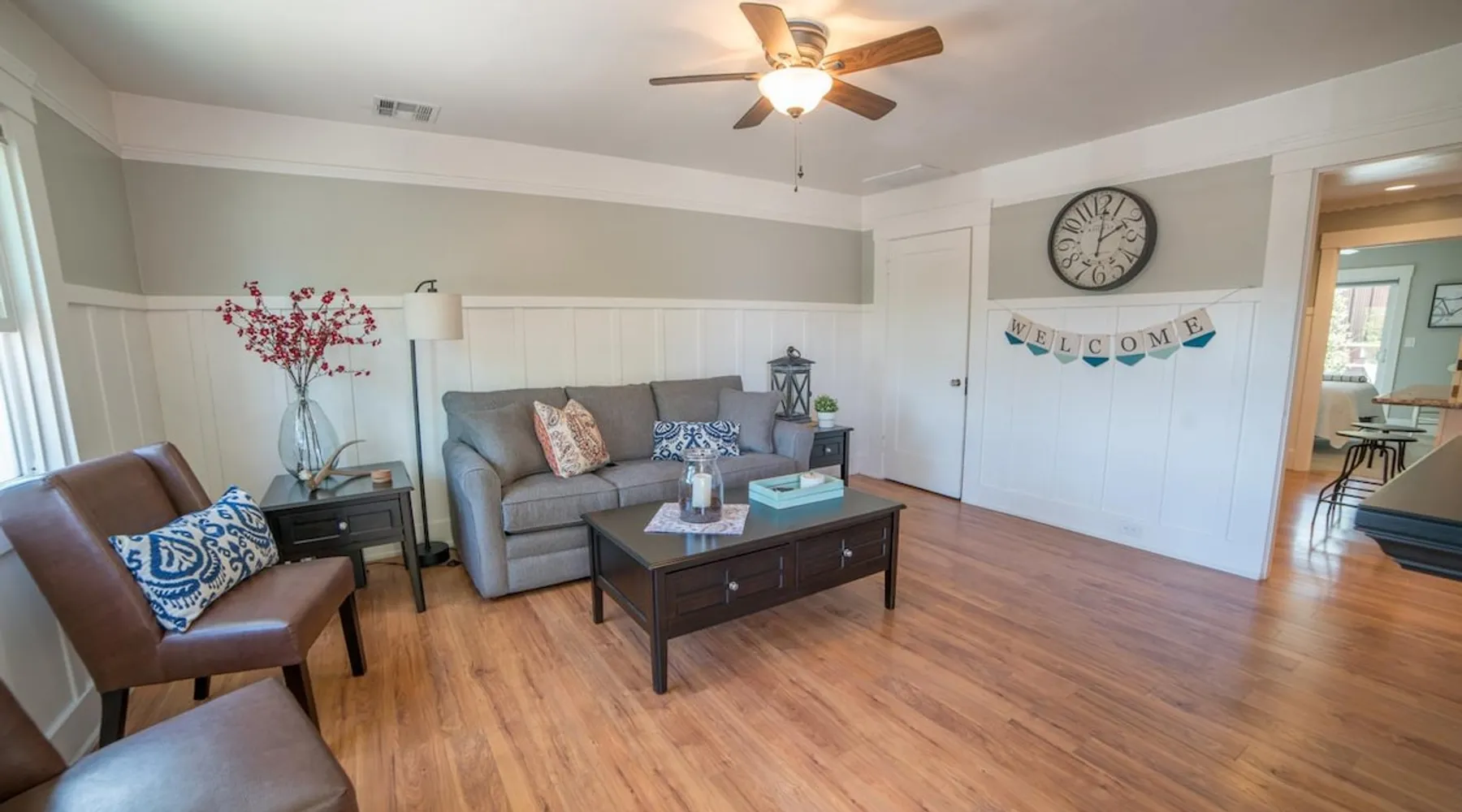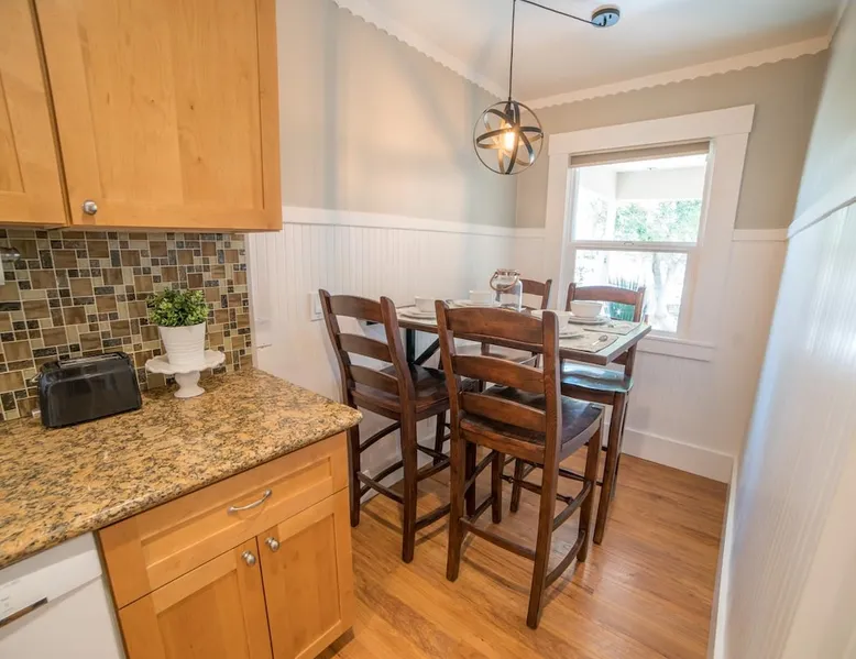 Tucked into the Martinez foothills, this charming 1920's fully restored home is an ideal Bay Area destination. Enjoy a cup of coffee in the beautifully terraced backyard or watch the sunset by the fire table. Take advantage of beautiful nearby hiking trails along the Carquinez Strait or stroll 5 minutes to adorable downtown Martinez. San Fransisco, Wine country, and the Redwoods are within a 1 hour drive. The space This duplex features a barbecue, comfortable outdoorAdirondack seating, and fire pit dining table and chairs. The home includes amenities such as a washer/dryer, Keurig coffee maker, steamer, and hair dryer. We are located within walking distance from Bart for easy access to all Bay Area attractions. Guest access Driveway and plenty of street parking Beautiful backyard views Large newly landscaped backyard and patio area with barbecue Backyard shade umbrella and fire table for wonderful dining ambiance Softly lit backyard landscape lighting Washer & Dryer on site Fully equipped kitchen Other things to note We are located within walking distance from delightful downtown Martinez and many hiking trails.