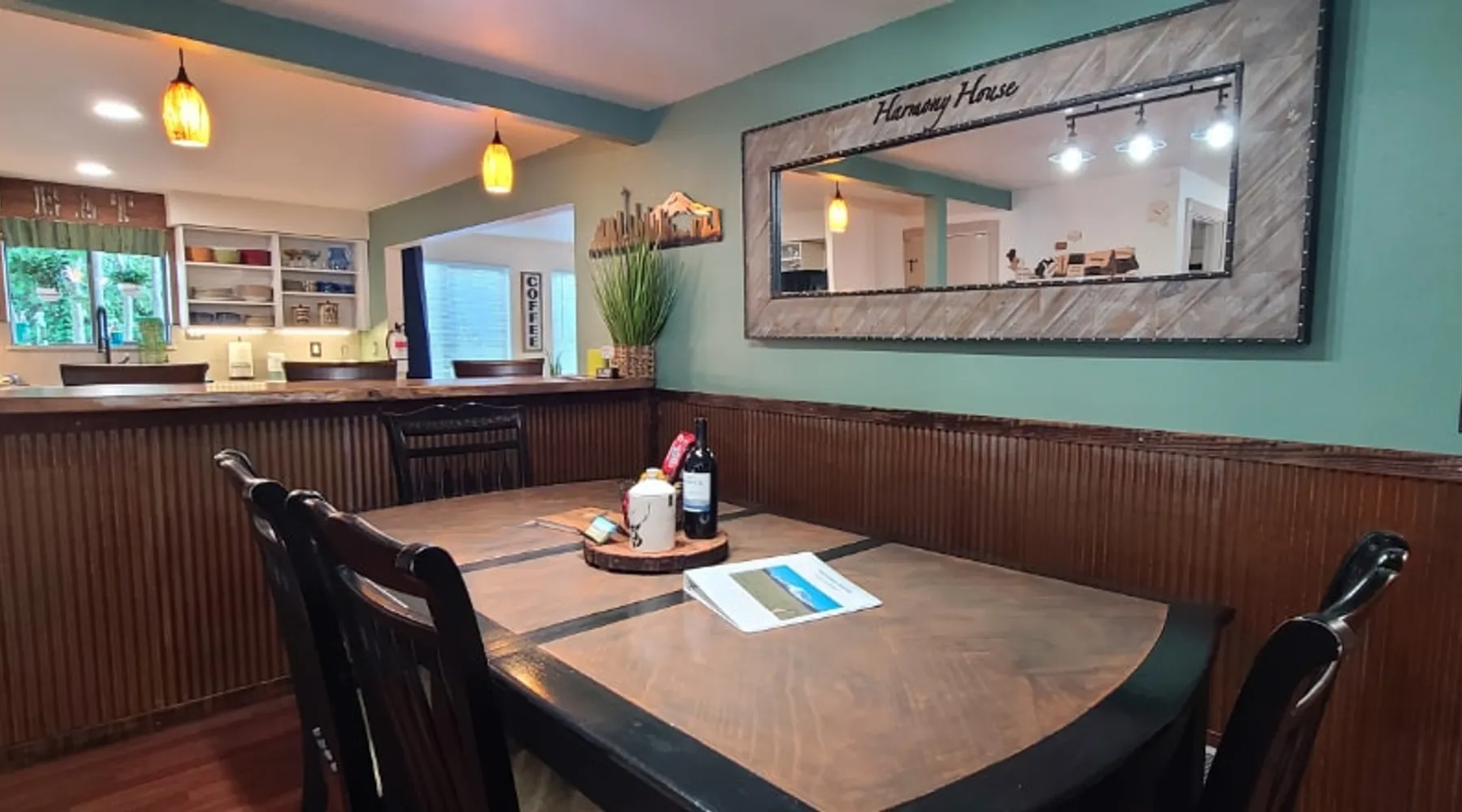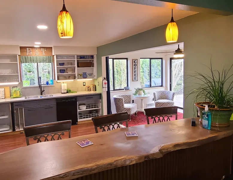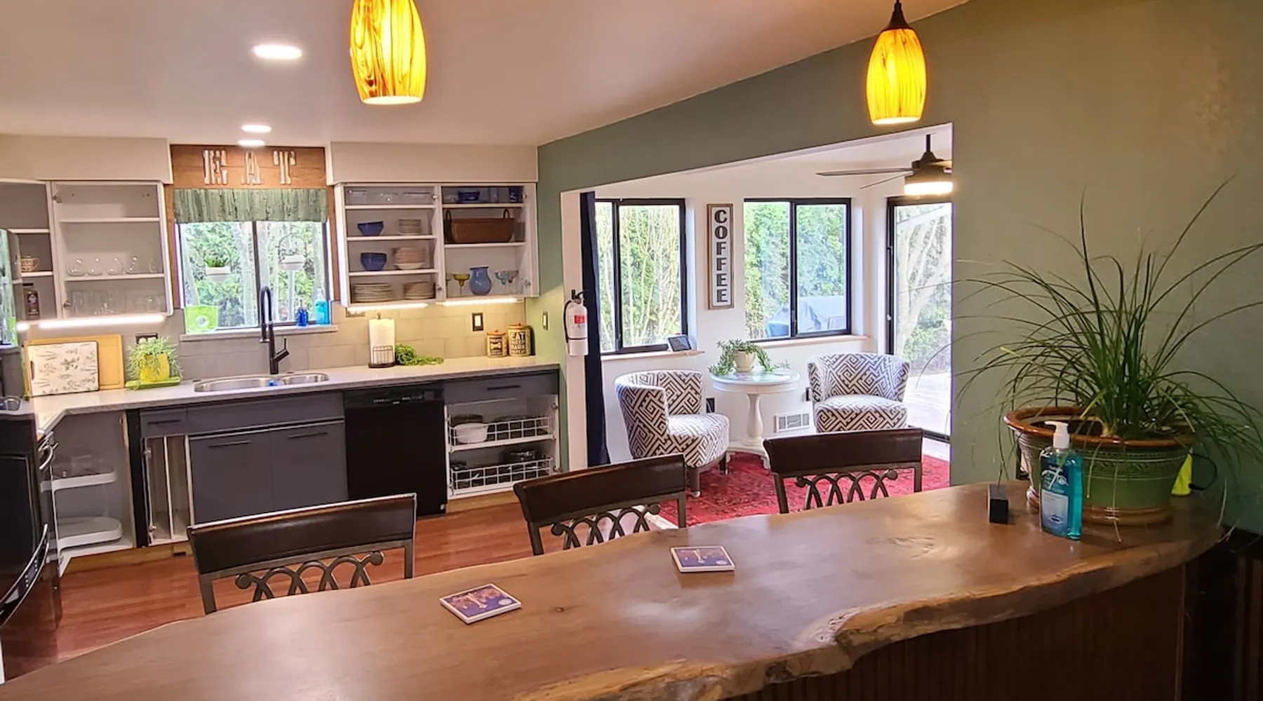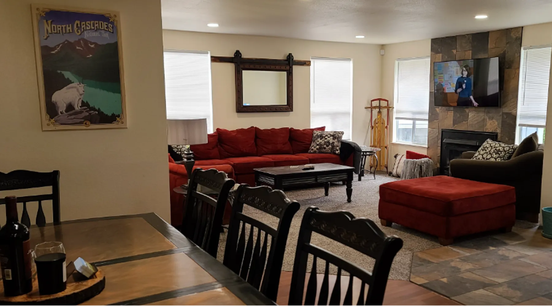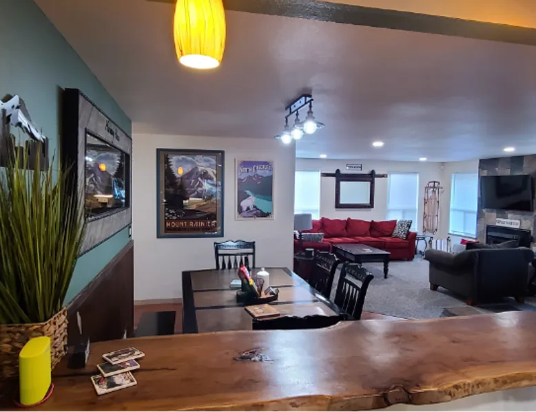 *HOT TUB, HIGH-SPEED WIFI, EV CHARGING STATION, AIR CONDITIONING, X-BOX! Also, 2 queen size Aero mattresses for a TOTAL OF 6 BEDS. At the Harmony House you will have a unique experience as you enjoy the custom craftsmanship and decor found in every room of the house. My favorite place is in the cafe' looking at Mt. Rainier while enjoying a cup of coffee. This property has plenty of PRIVACY and the entire house is yours. The space A beautiful, fully updated rambler located 3 minutes from shopping, breweries, and restaurants in the quaint town of Enumclaw. With its view of Mt. Rainier and Pinnacle Peak from the cafe, the Harmony House is within 45 minutes of Mt. Rainier, Crystal Mt. Ski Resort and its famous Gondola Ride, a large casino, petting farms, City of Seattle and much more. Guests will have a personal code for easy self check-in. The kitchen and cafe are fully stocked and bathrooms have all your toiletry needs. Guest access You will have full access to the entire house and property. There are no shared spaces and plenty of privacy. Other things to note The Harmony House is in a residential neighborhood with good neighbors. Please be considerate and only park in the driveway or directly in front of the house on the street. Have fun but please observe the local noise ordinance from 10 pm to 7 am. Lastly, a lot of time and creativity was put into developing your Harmony House experience. Enjoy it to its fullest without blowing it up or burning it down :)
