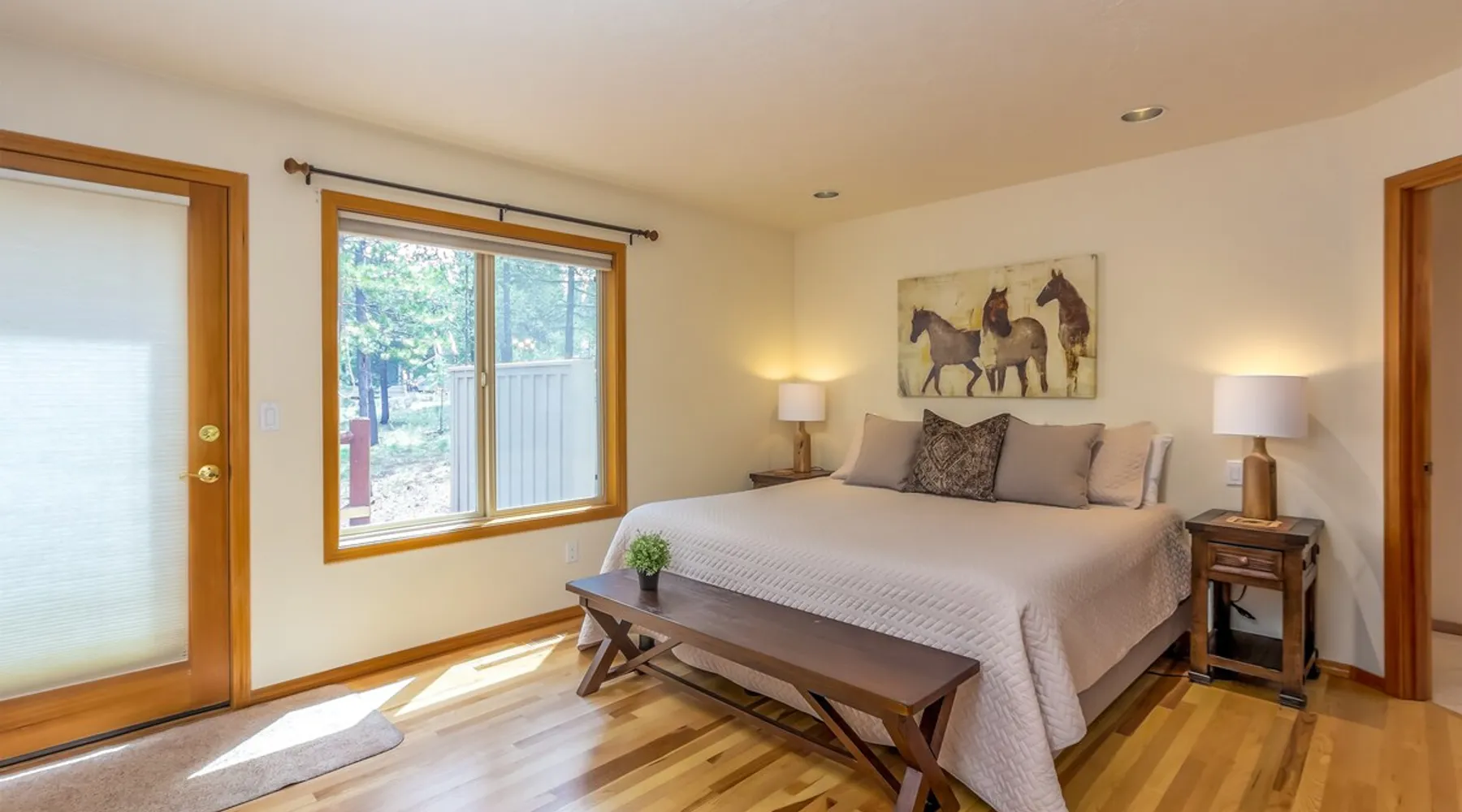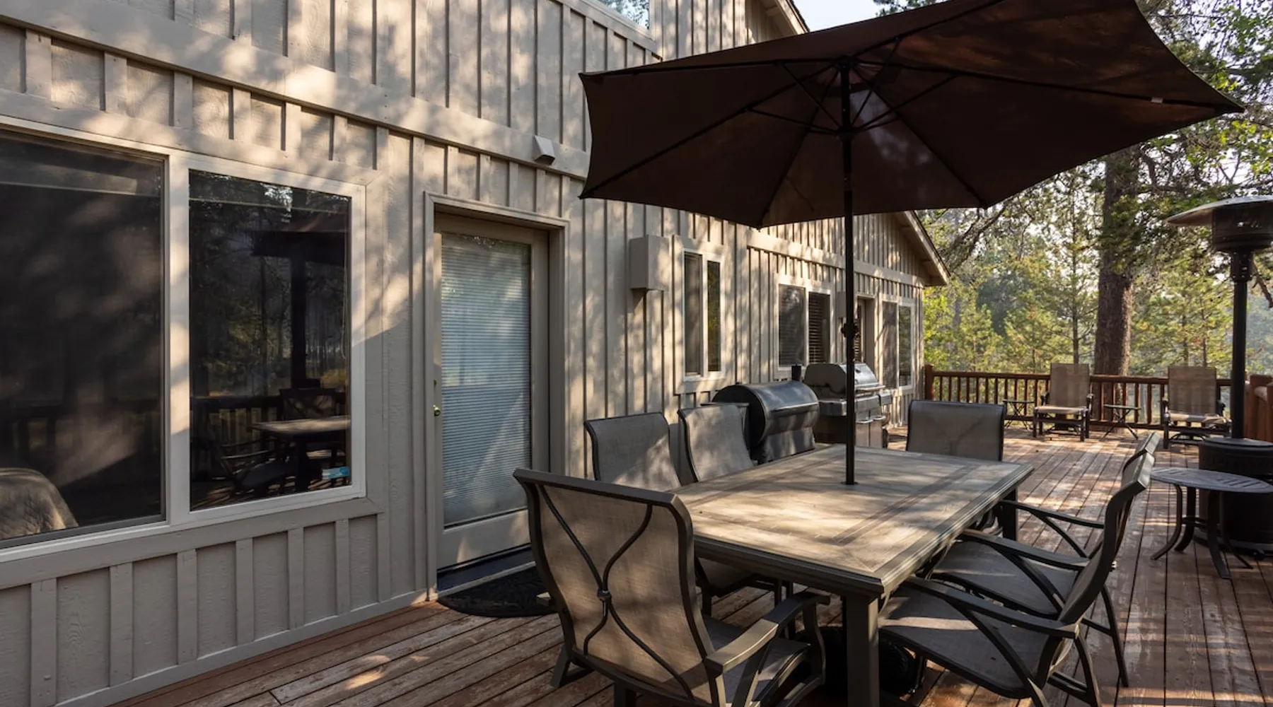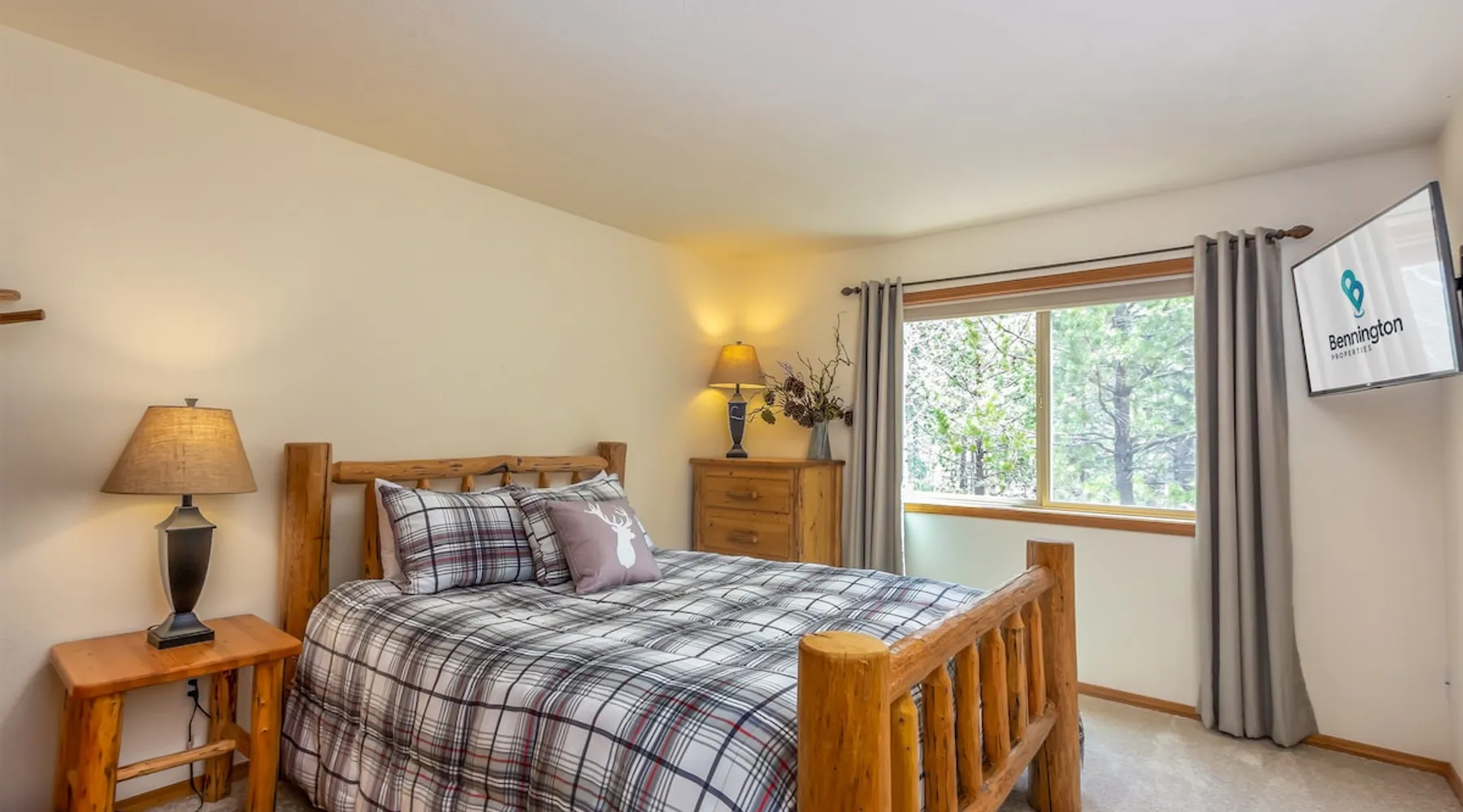 Relax, play, and explore from this cozy Sunriver retreat! Soak in the private hot tub, warm up by the gas fireplace, or challenge the crew to ping pong and foosball. With bikes included, it’s easy to hit the trails or cruise to the Village. This home sleeps 10 comfortably and is perfect for family fun or a group getaway. Whether you're lounging, adventuring, or doing a bit of both, this is your basecamp for making memories! The space Your mountain retreat awaits! Classic lodge style home with everything you need for the perfect Sunriver getaway. Tucked away in the trees near Woodlands golf course, this stunning 4 bedroom, 3.5 bathroom air-conditioned home has everything you need for the ultimate Sunriver getaway. On the main level you'll find an open floor plan, king ensuite with spa-like bath, laundry, and half bath. Upstairs you'll find 3 more bedrooms including a second king suite with attached bath, a queen bedroom, and bedroom with 2 queens. A spacious shared full bathroom with shower over tub finishes off the second floor. Enjoy a game of cards or kick back and relax in the open loft area at the top of the stairs. The large deck with gas BBQ serves at the perfect spot to gather and soak up the Sunriver sun or relax in the hot tub. The garage also has ping pong and foosball for a little competitive fun! Book with Acer 2 for Family Reunion! Other things to note AGE RESTRICTIONS: Guests must be 23 years or older to rent Bennington homes and the person reserving must occupy the home the whole reservation.