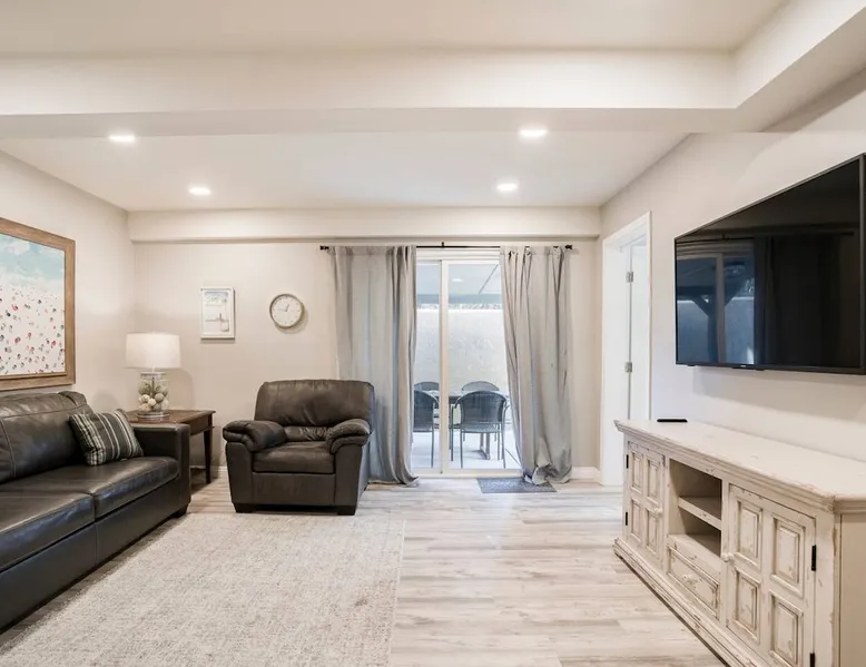 Welcome to 5 O’Clock Somewhere Vacation Beach Rental — your laid-back, nearly beachfront escape in Silver Strand. With 3 king bedrooms, a huge rooftop deck and plenty of room to spread out, this home is made for families, friend groups, and anyone craving that salty air and slow mornings. Whether you're heading to the sand or cozying up by the gas fireplace, this is a place to relax and reconnect. The space You know those houses that just feel easy? This is one of them. Plenty of space for kids to play, dogs to stretch out, and grown-ups to enjoy coffee on the balcony or a slow cocktail hour on the rooftop. Steps from the sand - about 50 steps Rooftop deck with fire pit, string lights, and ocean breeze Two comfy living rooms - one upstairs, one downstairs Big dining table, full kitchen, and everything you need to cook or reheat Great for families or friend groups traveling together BEDROOMS - GROUND AND SECOND FLOOR Bedroom 1 (Ground Floor): King bed, closet Bedroom 2 (Ground Floor): King bed, closet Bedroom 3 (Upstairs): King bed, 39" Smart TV Bedroom 4 (Upstairs): Two twin beds, 30" Smart TV Sleeper sofas on both levels (with linens provided) BATHROOMS: GROUND AND SECOND FLOOR Ground floor full bathroom with shower-tub combination Second floor full bathroom with showuer-tub combination Second floor powder room with sink and toilet Shampoo, conditioner, body wash, hair dryer and towels LIVING, DINING, KITCHEN - SECOND FLOOR Open-concept living room with large sectional and gas fireplace Dining table Fully stocked kitchen with spice rack, Coffee station, and all the cookware you need. LIVING ROOMS - GROUND AND SECOND FLOOR 59" Smart TV Board games and paperbacks ROOFTOP AND OUTDOOR PATIO SPACE: Ground floorpatio with gas BBQ grill and covered dining for 8 Complimentary beach gear: boogie boards, chairs, umbrella, in the garage Beach towels provided and -just 30 seconds to the sand Rooftop lounge furniture with umberlla and fire-pit DOG FRIENDLY - SORRY NO CATS Dog blanket, bowls, leash, and waste bags provided Plenty of space inside and out for them to feel at home Nominal Dog fee ($25 per dog per stay) Please have your pup on a flea program and groomed prior to staying PARKING: Garage parking for up to two small cars (trucks will not fit in garage) Driveway parking for up to three vehicles. EARLY CHECK-IN AND LATE CHECK-OUT You may request early check-in or late check-out with the provided link: You may choose 2 or 5 hour increments. If a guest is check-in or out the same day, these optional arrival or departure times may not be available. You can request these up to 3 days before check-in in your Guide. KID STUFF • Pack ‘n Play, high chair, and baby monitor upon request Guest access > Full access to the entire home, including rooftop + patio > Self check-in with smart lock > Parking for multiple cars (garage + driveway) > Video walkthrough sent to help your group settle in > Digital guidebook with all the local must-do’s Other things to note What our former guests had to say Amazing sta. Walking distance to teh beach. Clean, beauitiful home. Best family vacation here. Dan. L. October 2025 Only an hour and a half from LAX, myfriend group of ten people met here from all over the country. This coed groups of friends have known each other for over 20 eyar, thei s our special annual trip where we see each other in person. for all of us this trip is sacred and special. the one time we share together to honor our friendhsip. The locaiton was gorgeous right next to Silver Strand Beach in Oxnard, which is a quiet public-yet private gem. We watched the sun set everday here. Literally steps from eh beah our group felt instantly at home here. it was spacious and easily accommodated our group. The kitchen was spacious and allowed for the creatio of breakfast burritos and homemade connamon rolls in one go! Lisa was so incredibly responsive and shecked in several times to ensure we had everything we needed. With a special trip like this knowing we had a resource like tat was invaluable. Thank you so much for this amazing location for our trip! Leslie August 2025