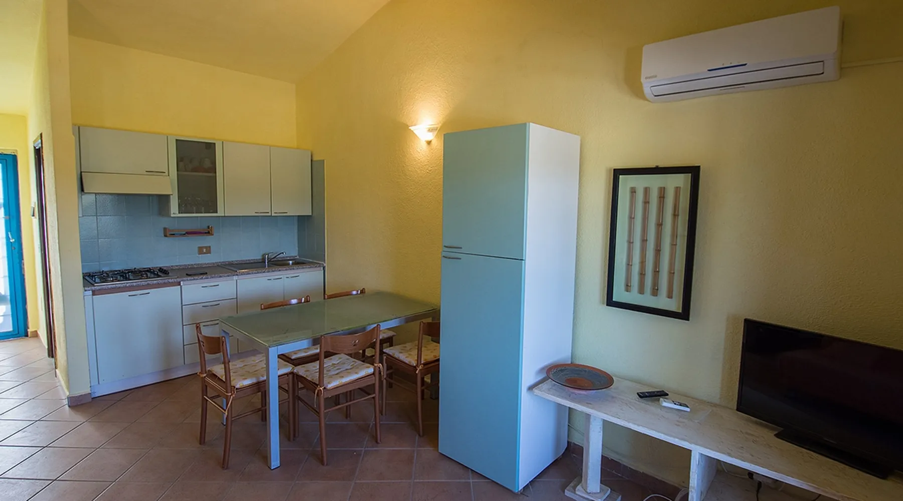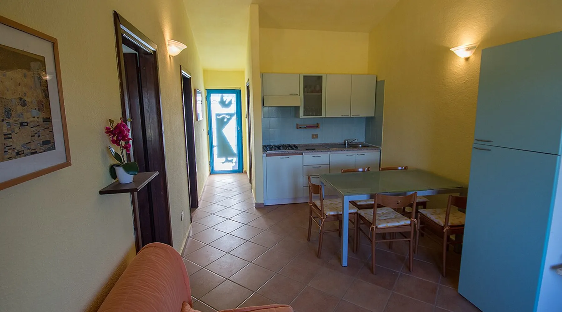 The apartment is on the first floor, in the residential area Il Borgo - Porto Pollo It consists of a living room with double sofa bed, table, chairs, TV and air conditioning Kitchenette with gas cylinder, fridge-freezer, dishes and glasses Bedroom with double bed and closet Room with 2 single beds and wardrobe Bathroom with shower cubicle Covered terrace equipped with table and chairs The space The beach (Porto Pollo-Isola dei Gabbiani) is reached on foot via a path of about 400 meters, the immediate vicinity offers several services: Food (10 meters) , Restaurant (350 meters), Bar-Tabacchi (350 meters), kite surfing, wind surfing, water sports, boat rental, bike-motorbike rental, medical service, while the village of Palau is about 6 km away Other things to note - The use of air conditioning costs 11 euros per day - The municipal tourist tax costs €3 per person per night (from 13 years of age) - the kitchenette is not included in the final cleaning, to be returned clean with empty garbage can or additional charge of €50 - All garbage (paper, plastic, glass, wet, etc.) must be separated and taken to the collection point located near the apartment. On the day of departure, any garbage left, should be taken from the apartment Failure to comply with the above will result in a charge of €50 -The rental of bath and bed linens costs €15 per person - Wi-Fi internet is available from May 1 to October 31 Registration Details IT090054B4000F3339