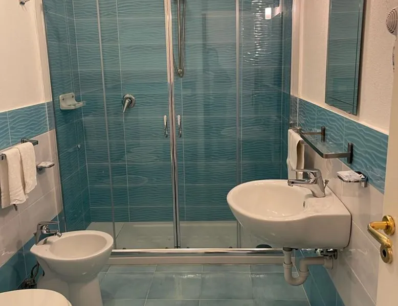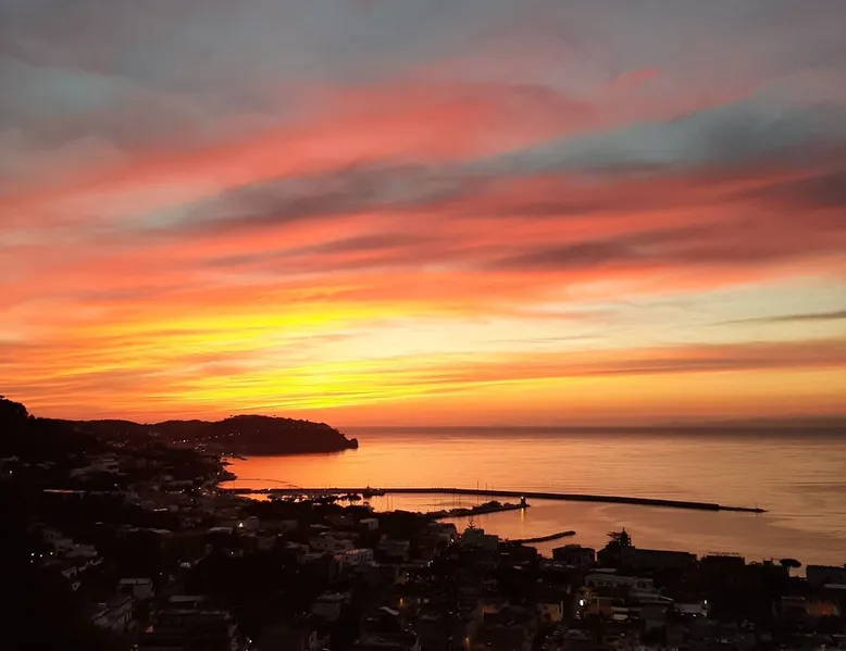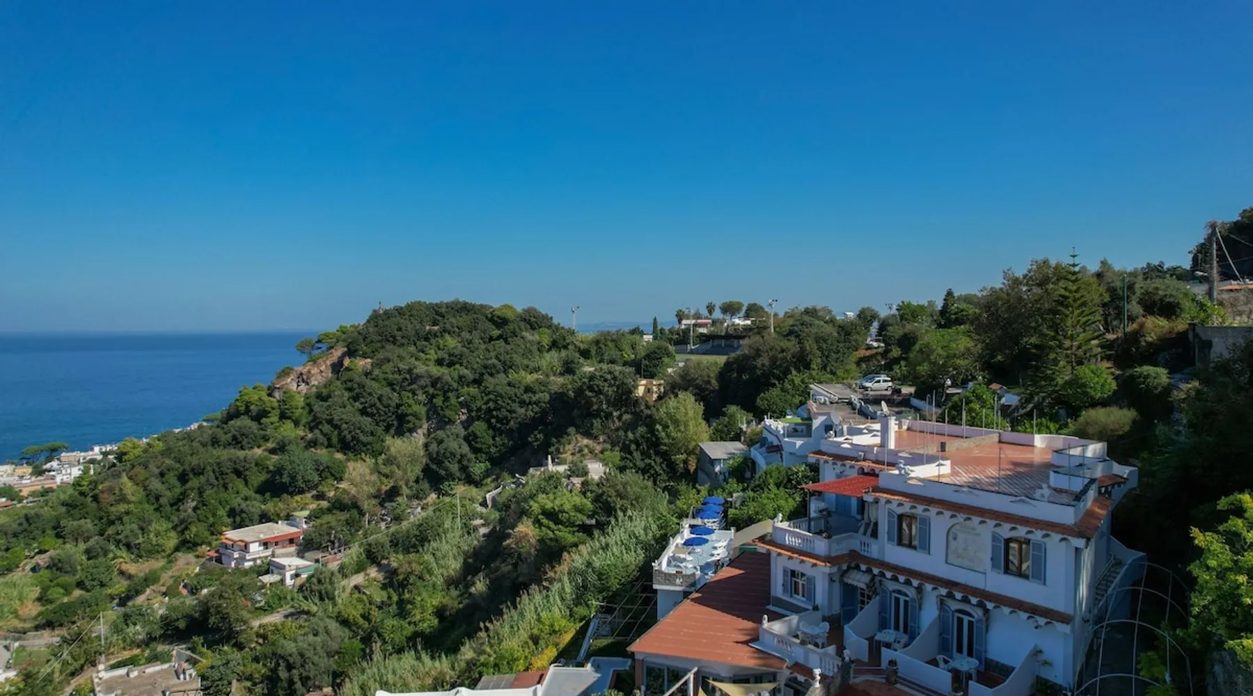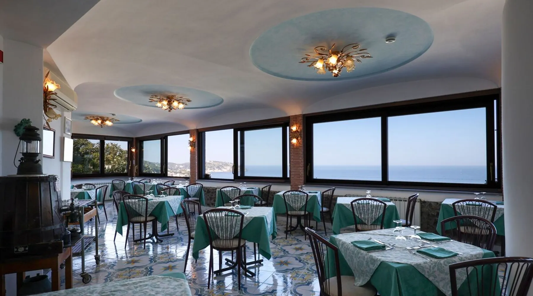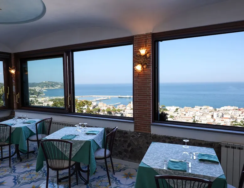 Double room with sea view The space The rooms are all equipped with large panoramic terraces overlooking the sea for absolute tranquility and independent heating. Toilets are always private, with shower and a hairdryer, bathroom linen is changed daily. It is possible to request the beds either as two single beds or as a double bed. All the rooms have a Television, and some rooms have air conditioning available for an extra fee. Pets are allowed. The Hotel is located on a hill 75 meters above sea level, in the middle of the green of chestnut trees and vineyards. In a wonderful position with a view of the sea, the port of Casamicciola and the bay of Lacco Ameno. With large panoramic terraces, absolute tranquility, heating, private parking. Thermal pool - sauna and inhalations with natural fumarole shower heads. For spa treatments in the pool and sauna, the hotel benefits from the precious natural geothermal resource, kept 80 meters deep, under a pile of volcanic rocks and clayey layers of marine origin Registration Details IT063019A1M9KAJJ72