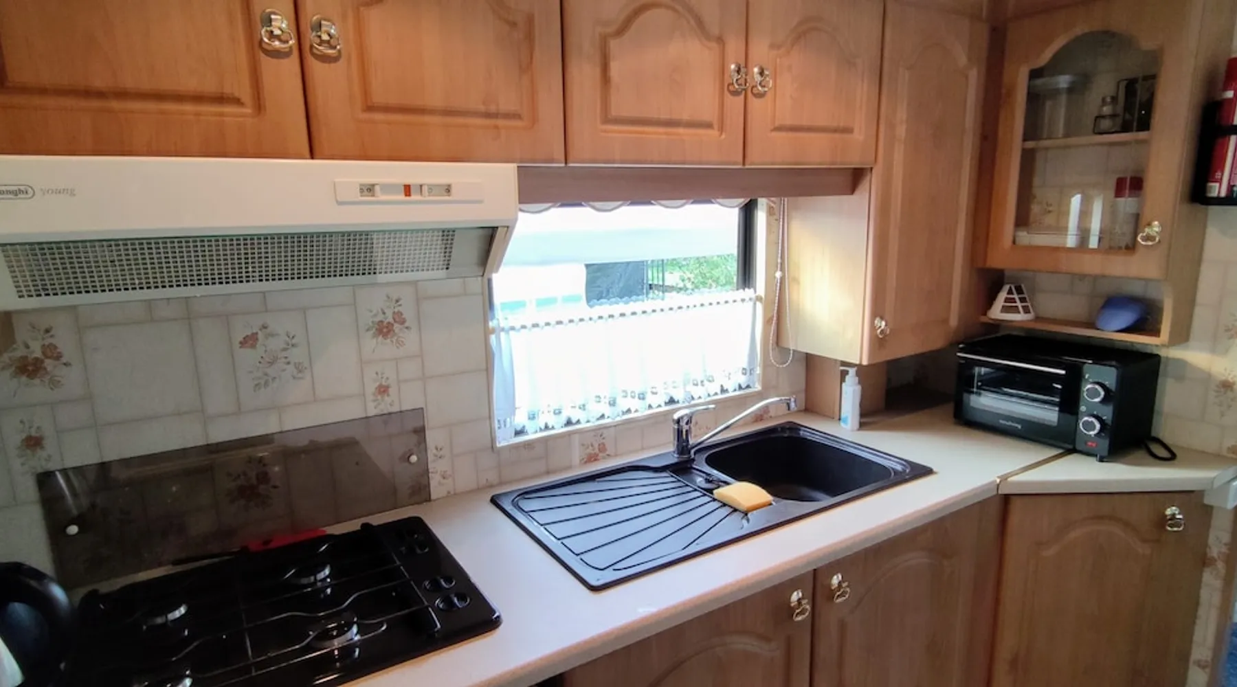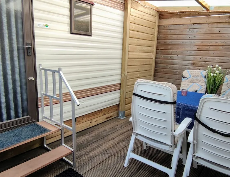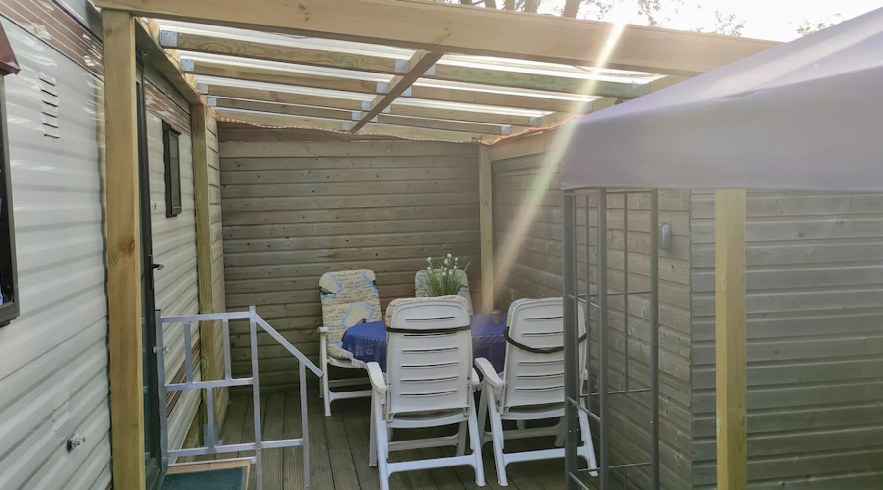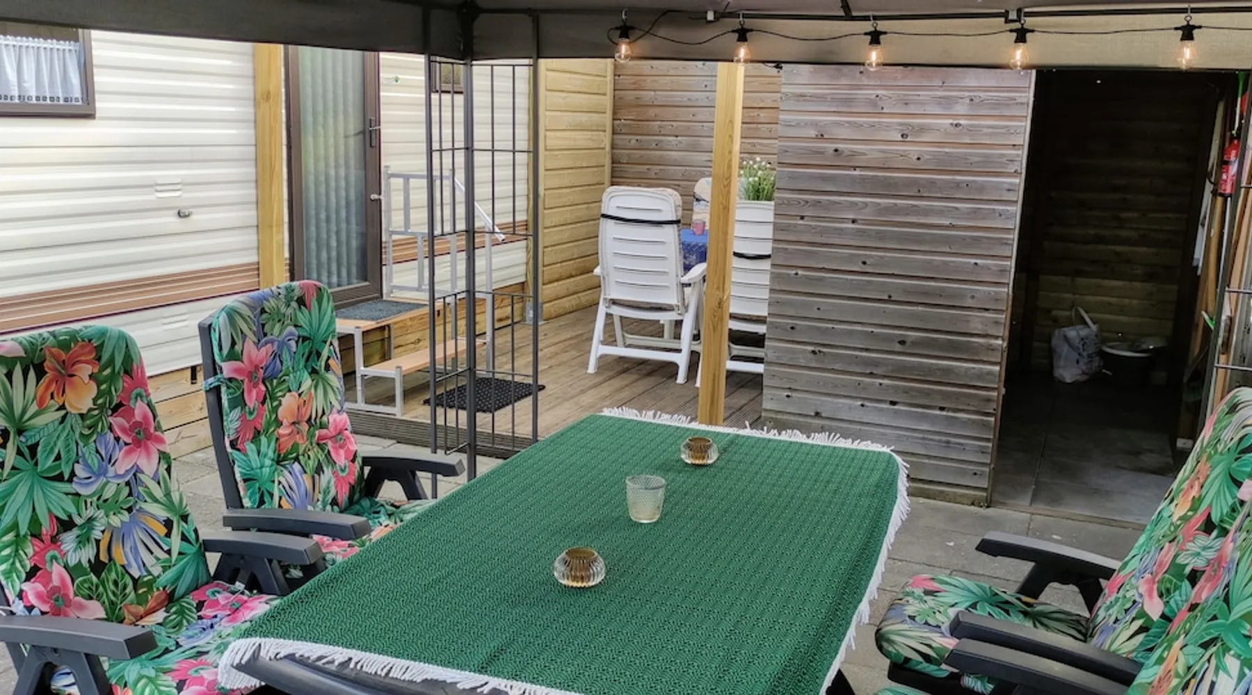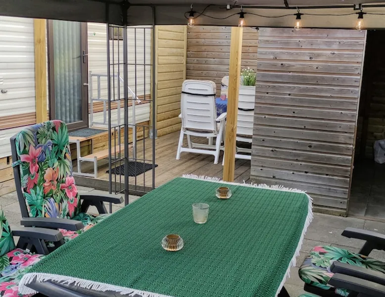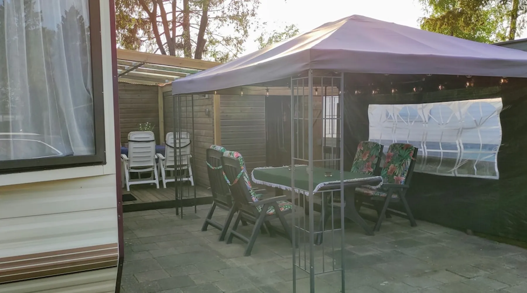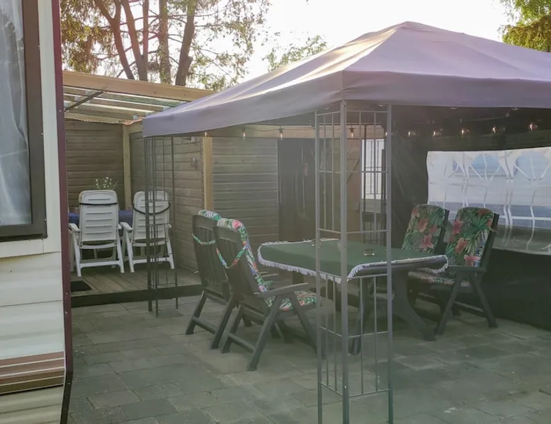 The mobile home is located on a quiet campground in Eext. From the campsite, you can walk or cycle into the Boswachterij Gieten-Borger. Here you can enjoy wonderful and long hiking, biking and mountain biking! The forest even has a walking area for dogs. 5 km from the campsite is the beautiful swimming lake 't Nije Hemelriek, which has a beautiful white sandy beach! And there is more to do, such as: The Tree Crown Trail at 8 km, Drouwenerzand Amusement Park at 9 km and WILDLANDS Adventure Zoo Emmen at 30 km from the campsite! The space - This mobile home is not very large, but very comfortable and excellently equipped with everything you need. It is ideal for nature lovers who want to spend a nice holiday in absolute peace and relaxation, away from traffic and the daily stress. - Upon arrival, the large party tent and cozy veranda immediately stands out, where you can enjoy a drink wonderfully sheltered! - As soon as you enter the mobile home through the veranda, you are immediately in the kitchen, equipped with gas stove, mini oven to heat up sandwiches, kettle, coffee maker and refrigerator. - In the living room you can read a book or watch a nice movie on the large comfortable sofa! (Books, board games and DVDs are provided). You can watch TV via Digitenne. - Your meals can be enjoyed in the dining area if the weather is not so good, but in fine weather it is wonderful to have a barbecue outside on the veranda or under the party tent! - For cold periods, there is a Zibro LC130 petroleum stove (3000 W) in the mobile home. This is equipped with a built-in fan and suitable for heating up to 48 square meters, so if you leave the interior doors open it can heat the entire mobile home. - In the main bedroom there is a double bed (140x200) and in the small bedroom there are 2 single beds (70x200). All beds are finished with comfortable memory foam mattresses and are freshly made for you. For cold periods, extra blankets are provided. - The bathroom is complete with toilet, washbasin and a shower with shower tray (towels and washcloths are provided). - In the shed you will find another fridge with freezer, barbecue, pillows for the garden chairs, standing fan, dog drinking bins, laundry rack and place to safely store two bikes. - The garden is completely fenced, so the dogs can walk freely! - On the campsite are the sports field, a playground, the canteen located on two train wagons and the snack bar Eexter stop, where you can go for delicious snacks, delicious soft ice cream and extensive plates! In summer, fun activities are also organised such as bingo, darts and live music. - In short, with all the nice things to see and do nearby it is definitely worth giving it a chance! Guest access You'll have the entire mobile home and shed to yourself. Other things to note - This property is not equipped to provide a safe place to stay for babies and small children. There are no cots, high chairs, crib or box available, because there is too little space for it. Cleaning products are within reach of children and there are no corner guards on furniture. - This property can be rented for recreational use only. According to the municipality's urban development plan, any other form of rental is not permitted.