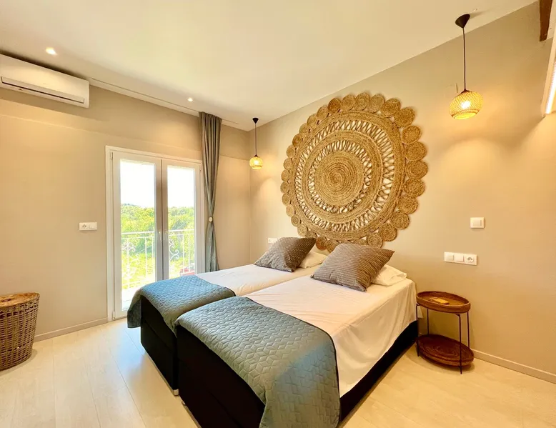 Enjoy the elegance of this modern 2 bedrooms & 2 bathrooms suite while staying in this minimal stylish home. The space Elysian Deluxe Family Suite is suitable for 4 persons , families or group of friends . Enjoy the luxury of a spacious,safe modern & tottaly renovated apartment with two master bedrooms , Air Conditioning , Full Kitchen, Big screen Tv/Netflix & more The two spacious master bedrooms (one with a double/queen bed & one with two single beds) are attractively decorated colors reminiscent of a luxury hotel suite . Both of the bedrooms has a luxurious bathroom is located into the room . The sleek and well appointes kitchen offers a nice place to prepare meals and eat-in. ( Keep in mind that you can just step outside your apartment and be within minutes of some great Greek food!) The kitchen offers everything you'd expect and need including stove,toaster,coffe maker,and a kettle Guests can enjoy their meals at the dining area or relax on the sofa to watch television at living room Other things to note WHAT IS NEAR: - Roda Beach (500m) - A variety of local & international restaurants (450m) - Pharmacy (150m) - Mini-Market (150m) - Gas station (100m) - Coffee to Go (100m) - Ioanian Care - First Aid (1,4km) - Bus station (200m) - Logas Sunset (10km) - Agios Spyridon Lake (6,3km) - Old perithia - Unesco Village (7,2km) Registration Details 1228933