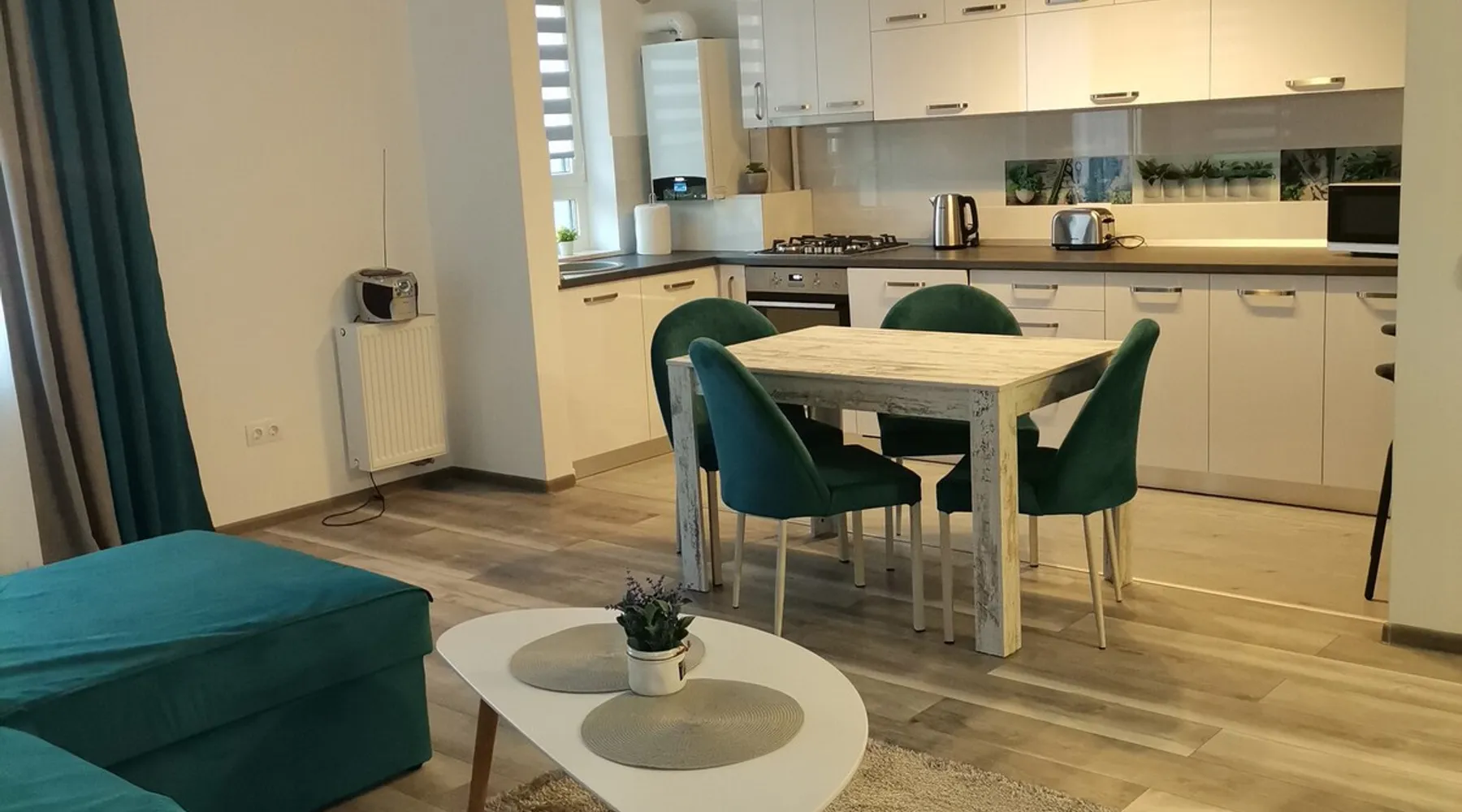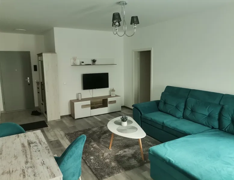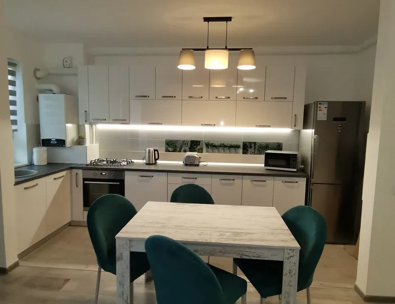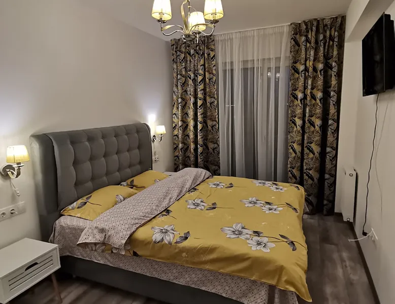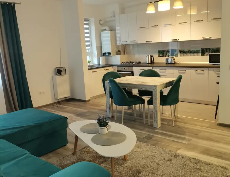 This "Apartment" accommodation, it is perfect for traveling, to get to know the beauties of the city under Tampa, for families, for tourist or business purposes!!The apartment with a generous space is located in a new residential neighborhood, the apartment is newly built in 2021, opened in February 2022, the apartment is for" Non-smokers"!! And No, pets are allowed by the company!! The space The apartment has a usable area of 60 square meters, a 2-room apartment, is of Non-smokers!! No pets allowed, it is fully equipped and equipped to spend a successful stay. The apartment has an Open-space living room with a balcony, a bedroom, hallway and a bathroom equipped with a bathtub and shower. Guest access The apartment is an individual one, in a 2-storey building, it is located on the ground floor of the building,it is an elevated ground floor that also has a balcony, it has private parking at the building, a playground arranged for children, close to the largest Mall of Brasov. The clock is done individually, self check-in, all details are sent via Watshapp or text. Other things to note No smoking in the apartment, no pets!! Smoking is allowed on the terrace(balcony), the apartment which is equipped with a small table and comfortable chairs. Parking is on the property and it is free to customers.