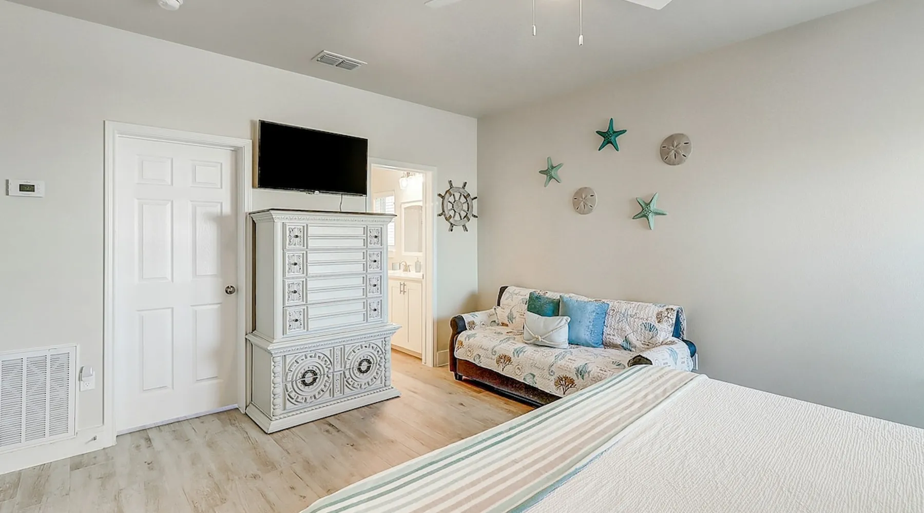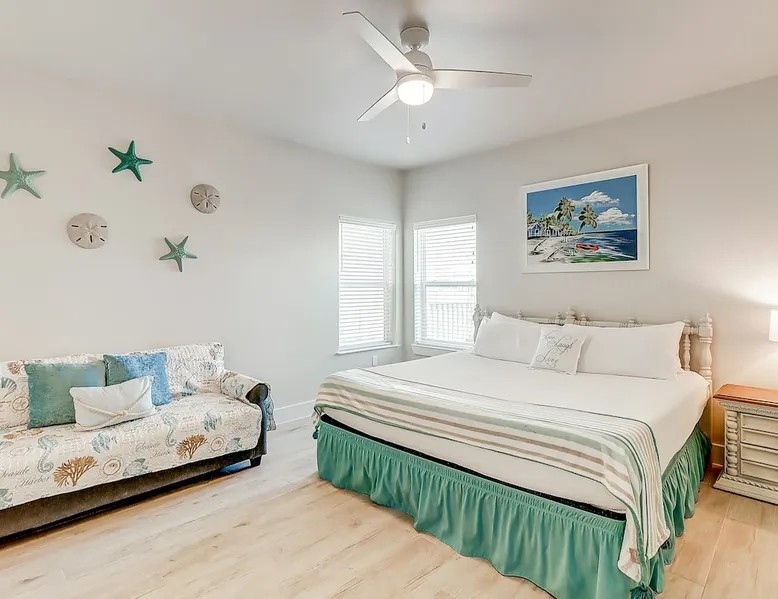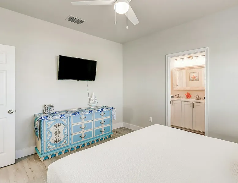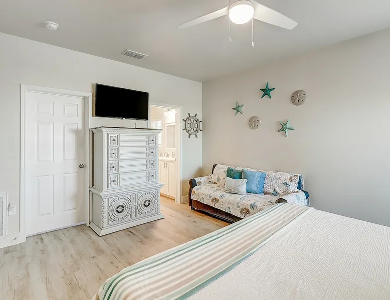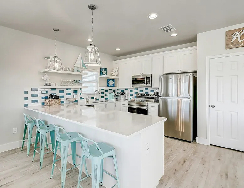 The space Casa Bella There’s something for everyone at this newly built three-level home! Located within the gated community of Bella Vista, this five-bedroom home is just 30 minutes from Corpus Christi but feels a world away. You’ll have 18 miles of pristine Mustang Island beaches close by, along with easy access to the town of Port Aransas, just an eight-mile drive to the north. If you want to stay close to home, visit the oasis-like community pool and hot tub to work on your tan. But first, coffee – start the day on one of two spacious decks, enjoying the sunrise and planning for the day. Inside, you’ll find a brand-new, open-concept space with bright pops of beachy color and decor everywhere, enhancing that vacation vibe. The chef will love the well-equipped kitchen, with a blender, toaster, crockpot, coffeemaker, and full suite of stainless steel appliances. Everyone can dine together at the large window-front table, and then head out to explore. When you return, relax at home in the central air conditioning. The kids will love the air hockey game upstairs, and the adults will love relaxing back out on the deck with a view of the pond. More entertainment options include free high-speed WiFi and five TVs equipped with Roku and YouTube TV, so everyone can find something to suit them. The end of the night calls for snuggling up on the sofa to stream a favorite movie, and then drifting off to bed. The spacious first-level suite features a private entrance and the suites downstairs and on the main floor offer en suite bathrooms. Upstairs you’ll find three additional bedrooms, one with direct deck access and a beautiful Gulf view. All the bedrooms are equipped with ceiling fans for your comfort. Kid-friendly extras include a mini crib, high chair, baby gates, and beach toys. *Ground level bedroom is separate from the main home. WHAT’S NEARBY AttractionDistance from homeMustang Island State Park3.8 Miles Leonabelle Turnbull Birding Center10.1 Miles Padre Balli Park11.2 Miles Oso Bay Wetlands Preserve18.3 Miles *Performing Arts Center20.9 Miles Roberts Point Park22.9 Miles Padre Island National Seashore23.5 Miles THINGS TO KNOW Streaming services are available with guest accounts. No dog(s) are welcome in this home. No other animals are allowed without specific Vacasa approval. Parking notes: There is free parking available for 4 vehicles. Please note: this home resides in a noise-sensitive area and the owners participate in our Good Neighbor protection program. Our smart home technology will alert our team if excessive decibel or occupancy levels are detected, allowing us to reach out directly with a reminder of maximun occupancy and quiet hours. This technology is privacy compliant, and only monitors the presence of decibels and devices -not any personal conversation or information. Thank you for supporting our efforts to be good neighbors! Damage waiver: The total cost of your reservation for this Property includes a damage waiver fee which covers you for up to $3,000 of accidental damage to the Property or its contents (such as furniture, fixtures, and appliances) as long as you report the incident to the host prior to checking out. More information can be found from the "Additional rules" on the checkout page. Due to local laws or HOA requirements, guests must be at least 25 years of age to book. Guests under 25 must be accompanied by a parent or legal guardian for the duration of the reservation.