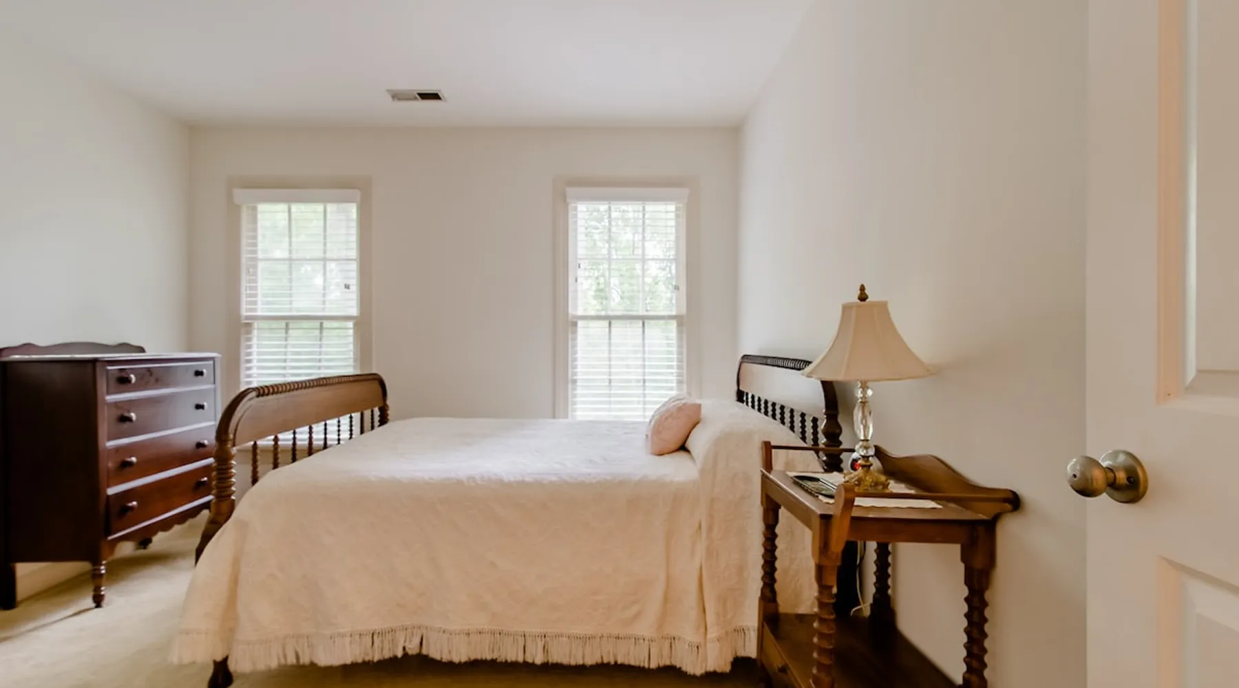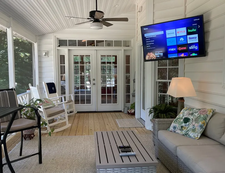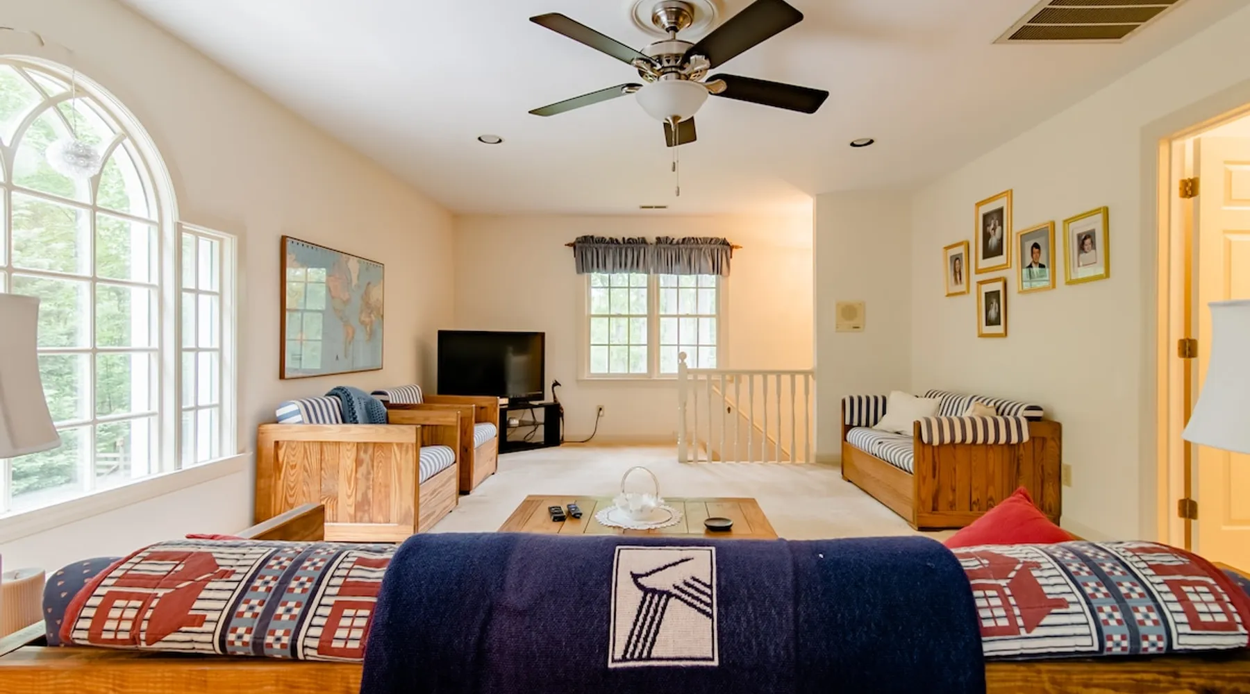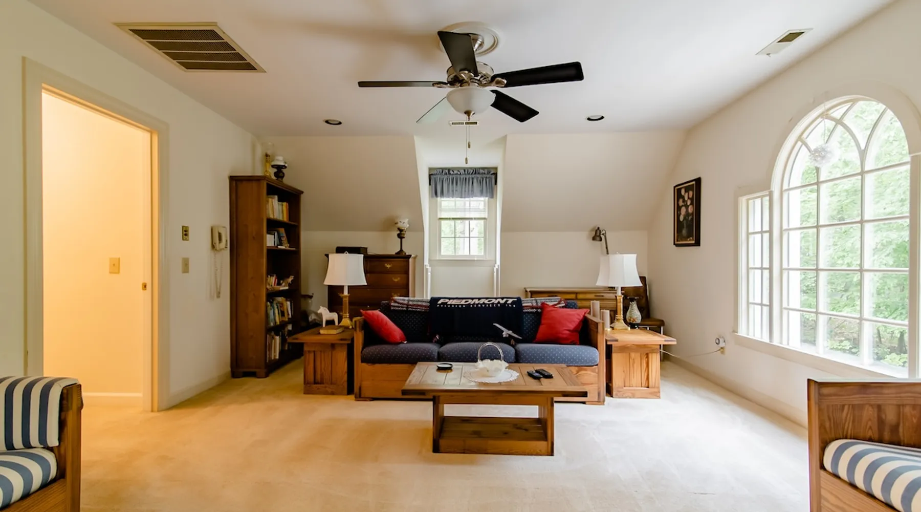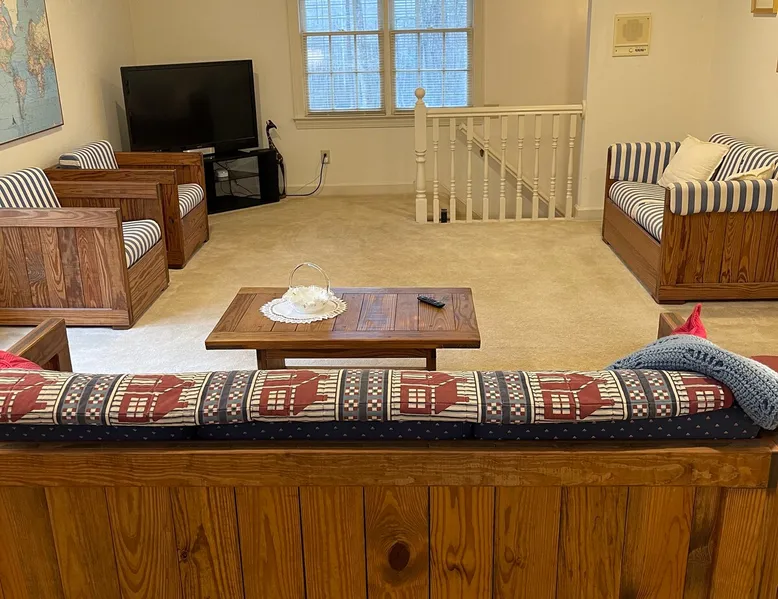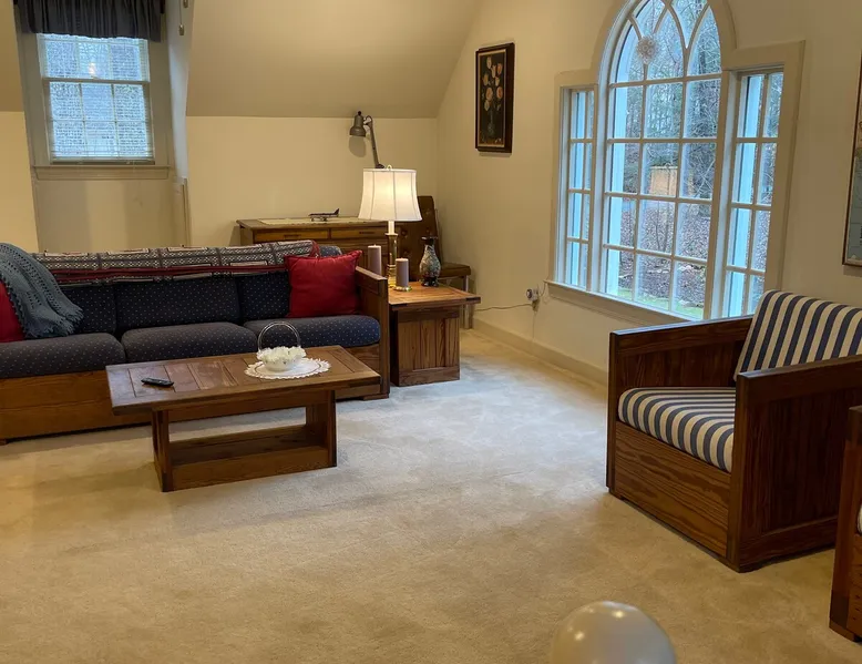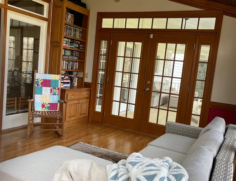 This house is over 4000 sq ft. The bedroom comes with a large living room that is shared if the other bedrooms are rented. There is a large flat screen TV with Netflix, Amazon Prime, Paramount and Hulu in the living room and in each bedroom. The entry doors to the living room can be closed for privacy. Walk in laundry room and screened back porch. There are 27 private acres if you want to take a walk in the woods, 4 miles of community trails, and a pool and tennis courts are also available. The space There is also a 12 X 24 screened in back porch that is shared. Guest access The sunroom is not available for use at this time. During your stay Feel free to text or call me before or during your stay if you have any questions, needs or concerns. Other things to note The sunroom is not available at this time. Early checkin and late checkout can be accommodated if there is availability but you must contact host to discuss for approval. Please- do not wear shoes on hardwood floors. do not burn candles. do not burn incense. no plug-ins or air fresheners. do not use perfume or cologne inside the house. do not remove the mattress pad from bed. unregistered guest are not allowed unless approved ahead of time. ear buds are provided if you want to watch TV in your room after quiet hours. use family friendly language. Smoking is not allowed in the home, garage or screened in back porch. You may smoke on the front porch, in the yard or in the covered treehouse in the back yard. This is a family home, drinking in a respectful manner and in moderation is acceptable. However, if you have a problem with alcohol or drugs, this home would not be a good fit for you. It is important to me that my guest feel like they are at their home away from home and know that they are welcome here.