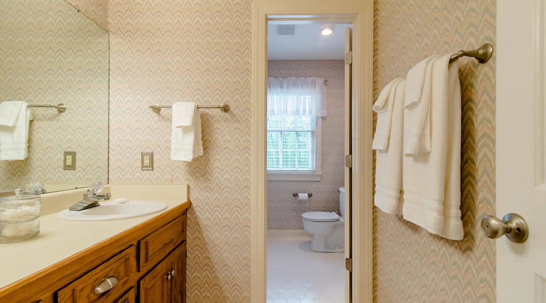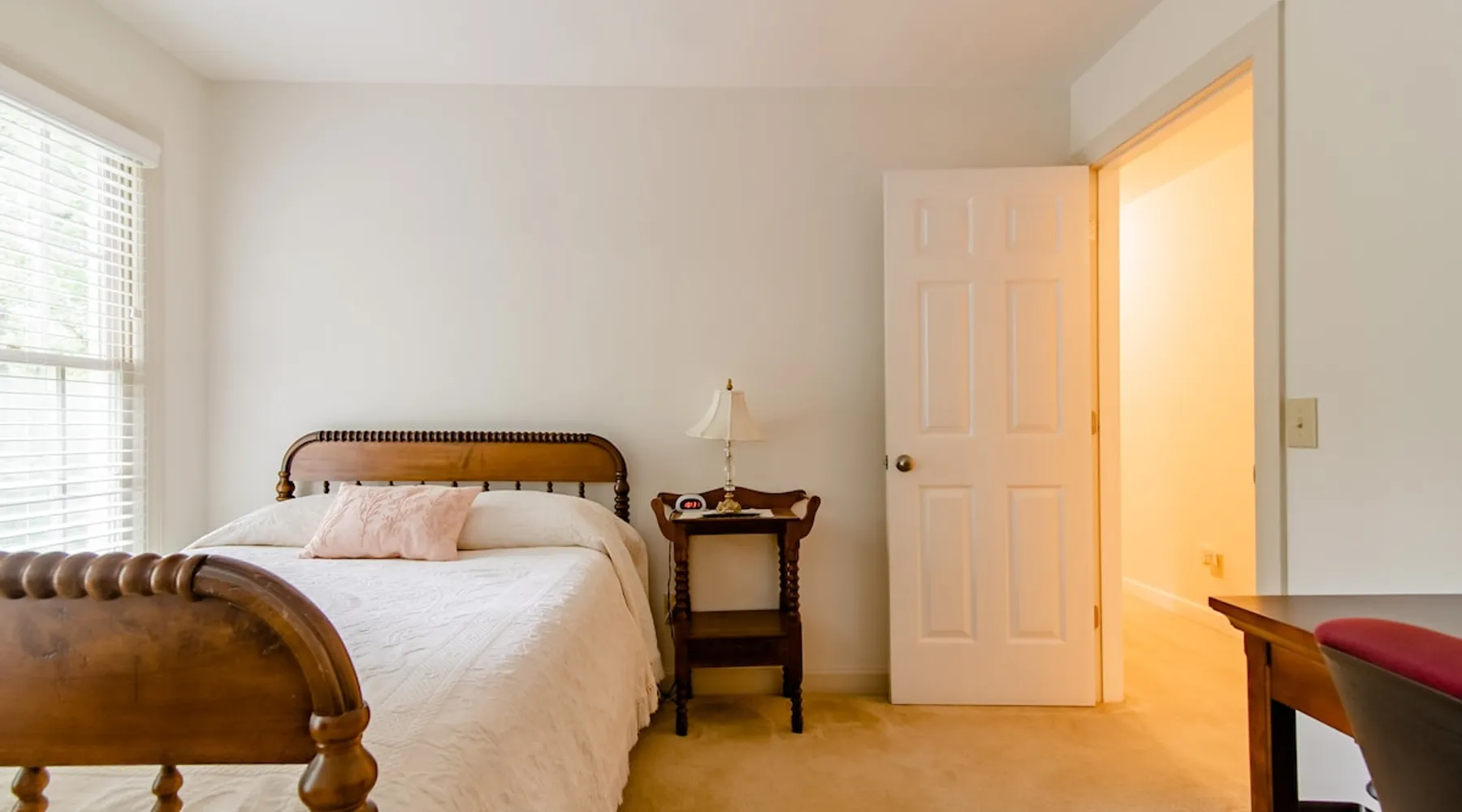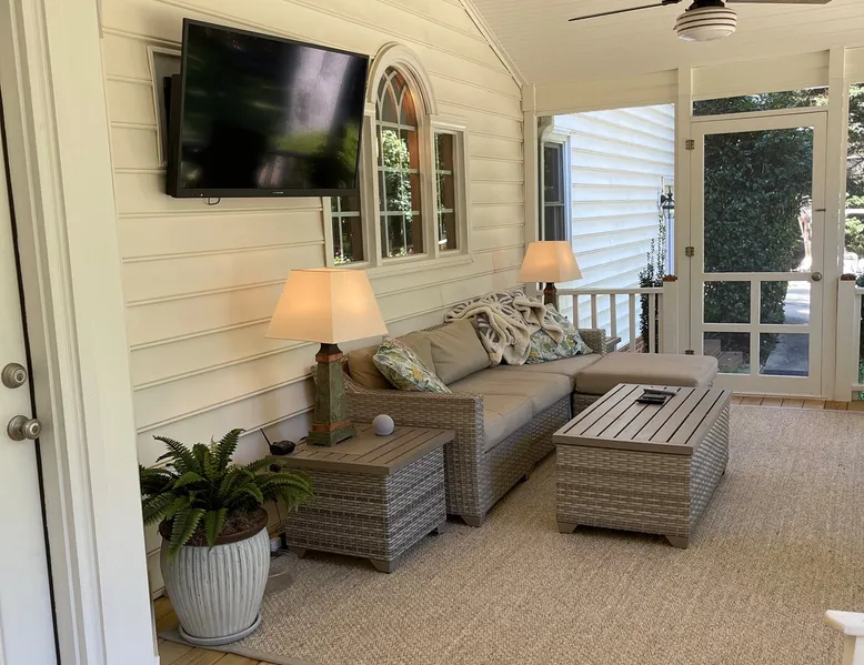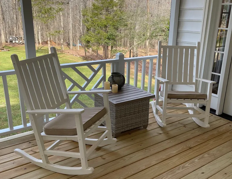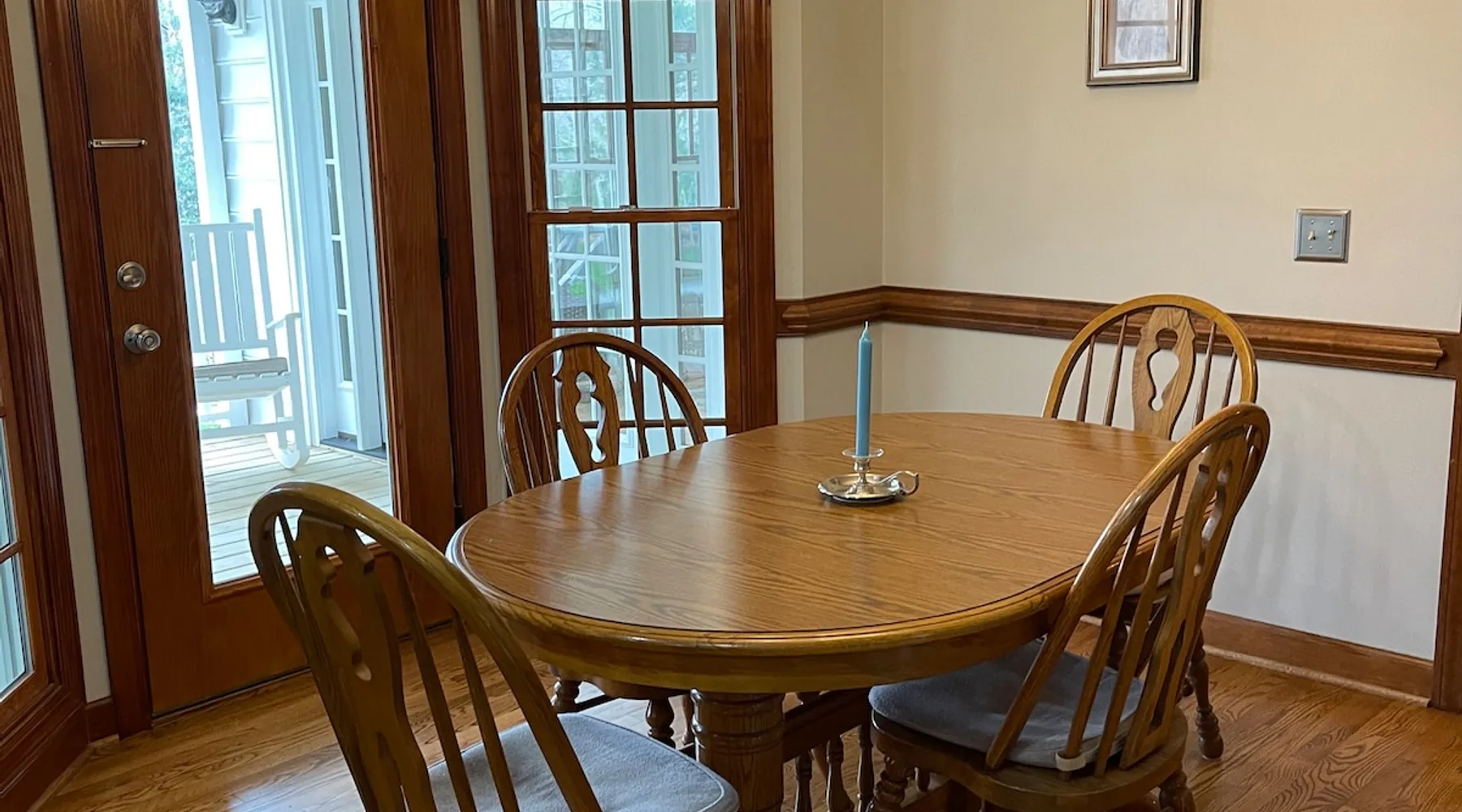 This house is over 4000 sq ft. The bedroom comes with a large living room that is shared if the other bedrooms are rented. There is a large flat screen TV with Netflix, Amazon Prime, Paramount and Hulu in the living room and in each bedroom. The entry doors to the living room can be closed for privacy. Walk in laundry room and screened back porch. There are 27 private acres if you want to take a walk in the woods, 4 miles of community trails, and a pool and tennis courts are also available. The space There is also a 12 X 24 screened in back porch that is shared. Guest access The sunroom is not available for use at this time. During your stay Feel free to text or call me before or during your stay if you have any questions, needs or concerns. Other things to note The sunroom is not available at this time. Early checkin and late checkout can be accommodated if there is availability but you must contact host to discuss for approval. Please- do not wear shoes on hardwood floors. do not burn candles. do not burn incense. no plug-ins or air fresheners. do not use perfume or cologne inside the house. do not remove the mattress pad from bed. unregistered guest are not allowed unless approved ahead of time. ear buds are provided if you want to watch TV in your room after quiet hours. use family friendly language. Smoking is not allowed in the home, garage or screened in back porch. You may smoke on the front porch, in the yard or in the covered treehouse in the back yard. This is a family home, drinking in a respectful manner and in moderation is acceptable. However, if you have a problem with alcohol or drugs, this home would not be a good fit for you. It is important to me that my guest feel like they are at their home away from home and know that they are welcome here.