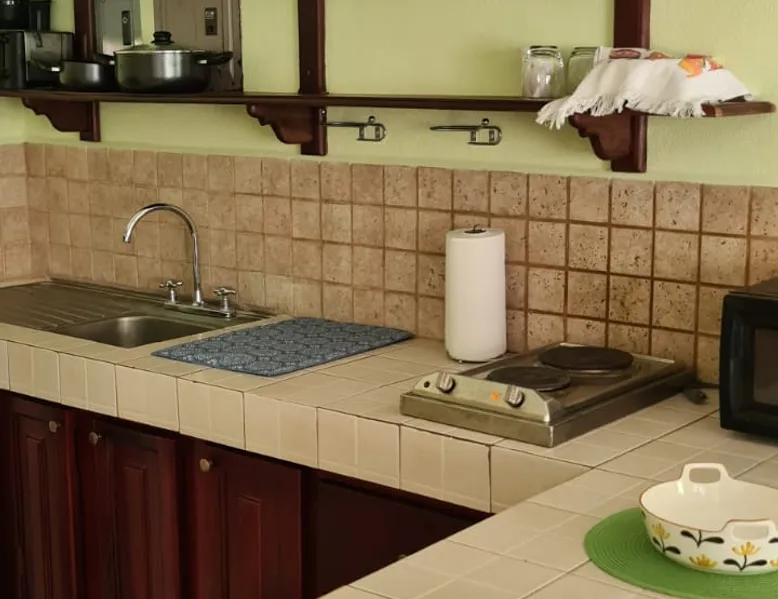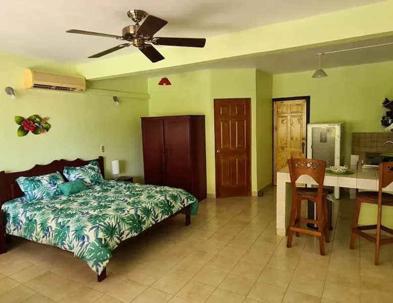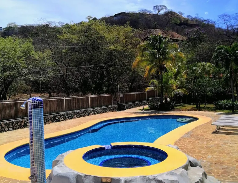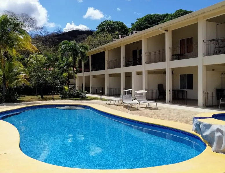 This beautiful studio is located less than 10 minutes away on the way to the beach. There is a pool, private parking, and WiFi for free. Playa Hermosa is a perfect place to take advantage of the natural beauties of Costa Rica. Linda Playa with multiple water activities, extremely quiet place for family and children. Enjoy our pool and jacuzzi, stroll to the beach, and enter the area's typical restaurants offering fresh fishermen's produce. The space This studio was completely renovated in 2022 and has a double bed. They can park the car in our gated parking and take advantage of the wifi in all the property. The kitchen is fully equipped. The ensuite bathroom has a shower. We also offer free shampoo/conditioner and body wash. In less than a 10-minute walk, you can reach the beach and take advantage of many restaurants and water activities. Guest access All our guests have free access to the enclosed private parking, pool with jacuzzi and wifi. We have reception open from 9am to 5pm for any help and information such as reservations of tours etc... Other things to note Small pets are welcome Being a very quiet place no parties or noise are allowed after 10am. Only registered guests can access the property. There is a supermarket and a pharmacy adjacent to the Aparthotel.