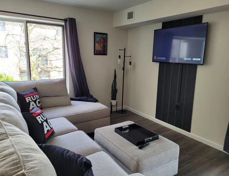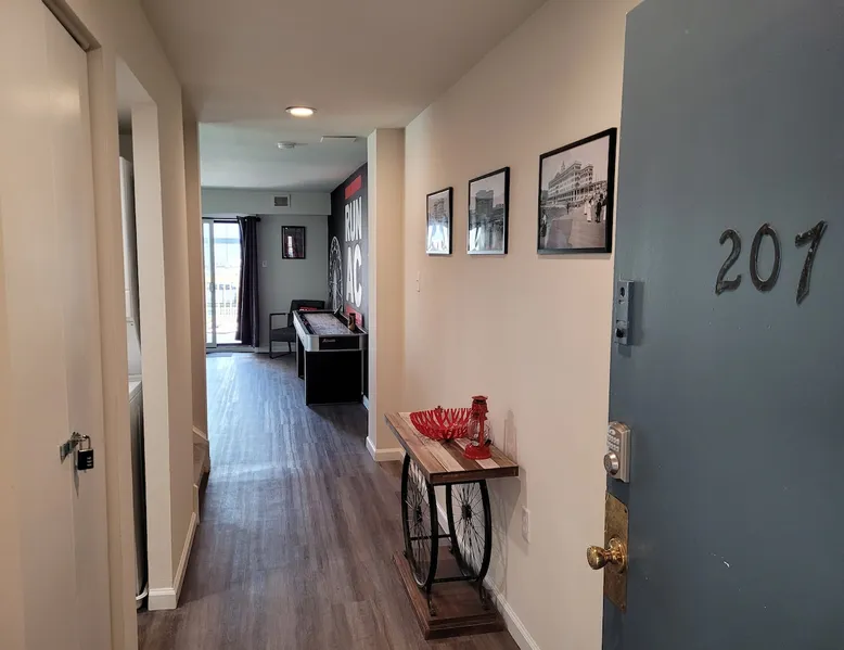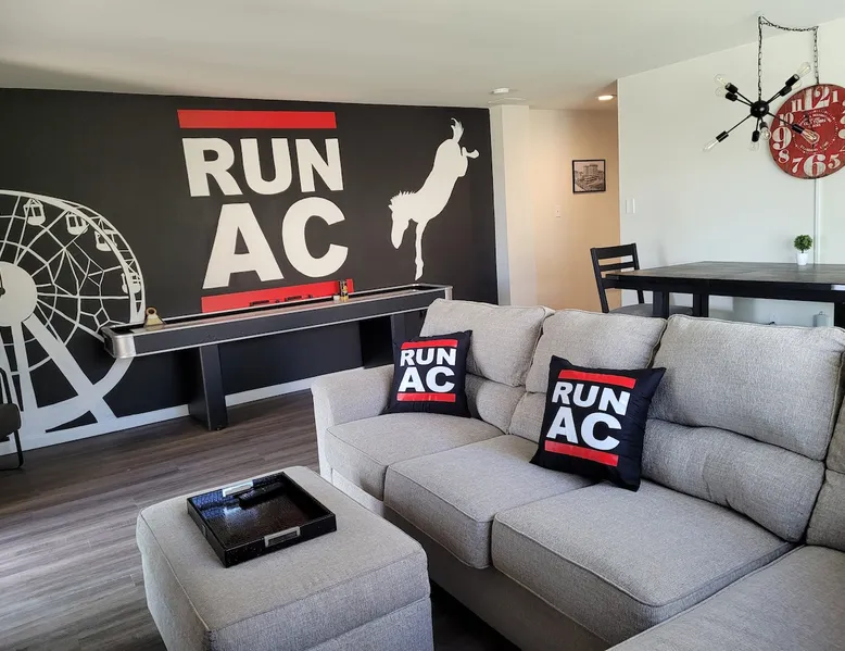 Come check out this awesome Atlantic City space with a hip flair, and unique in its own design & modern style! This spacious 2 bedroom, 2 bathroom unit is brand new, freshly designed & renovated, well equipped, refined & immaculate! The location is close to the Beach, Boardwalk and Casinos, while being paired with the comfort of staying in a place that feels like a second home. Enjoy the amenities, style and convenience. Run-AC Villa is perfect space to have fun, rest, explore or reconnect! The space With an abundance of natural light, an outside balcony, and wonderful amenities, enjoy this space with all the comforts and convenience to make for a perfect stay. A blend of style, vibe and warmth will greet you as you step inside. LIVING AREA: -The unit has a spacious living area with a dining table, cozy sectional couch, smart TV for your viewing pleasure (There is no cable for the TVs just streaming apps), and a shuffleboard table to provide hours of fun entertainment. ARTIST FEATURE: -Enjoy the striking and unique wall mural designed and hand painted by a local Atlantic City artist, Kenneth Lazan of Lazan Design, which features the “Run AC” logo, the historic diving horse, and the amazing observation wheel. KITCHEN: -The kitchen is outfitted with stainless steel appliances and all the features you will need to prepare meals. SLEEPING ARRANGEMENTS: -The 2nd floor has 2 spacious and hip designed ensuite bedrooms which comfortably sleep up to 6 guests. -Each bedroom is tastefully designed and includes wall mounted smart TV’s and cozy bed linens. BEDROOM 1- 1 King Sized bed, Smart TV, a desk, 2 roomy closets and a full bath with a tub. BEDROOM 2- 2 Beds - 1 Queen and 1 Full bed, Smart TV, a desk, 2 roomy closets and a full bath with a stand-up shower. BALCONY: -The sliding glass door open to a spacious outdoor balcony with seating. AMENITIES: -The home is also equipped with Wifi, a standard drip coffee maker, an iron and ironing board, a hair dryer and much more! LOCATION: -The unit is in a complex on a beach block directly across from Ocean Resort & Casino and next to The Showboat Hotel. Take a lovely, quick stroll to the boardwalk and beach. ADDITIONAL NOTES: -Please note that like many areas of the city, the complex parking lot has the possibility of puddling or flooding when it rains. This factor is out of our control and we suggest parking at Ocean Casino across the street in the event that it becomes problematic. -Please excuse the complex's appearance- it is under new management and the HOA is currently doing renovations and landscaping to maintenance the building and grounds. -Grills are not permitted to be used on the property as per HOA regulations -Please be aware Atlantic City is a multi cultural city style area, and this complex is mostly vacation rentals and working class Atlantic City residents. BOOK WITH US and unlock discounts and special offers exclusive to Cozy Cohost guests. Take advantage of all that Atlantic City has to offer and enjoy savings at top local spots including famous restaurants, night clubs, spas, coffee shops, distilleries, breweries, boat tours, bike rentals, mini golf, and more... Guest access ACCESS & ENTRY: -Guests will have access the entire 2 level unit and the outdoor balcony. -There are exterior stairs to enter the unit, and a set of interior stairs in the unit to the 2nd floor bedrooms and the bathrooms. -We ask that you please respect the home and the neighbors. -Please note that check-out time is promptly at 11:00 AM. Failure to check out by this time may result in a $100 fee per hour. We appreciate your cooperation in ensuring a smooth transition for our next guests. Thank you for your understanding! KEYLESS ENTRY: -There is keyless entry. Your host will provide you with the door code approximately one hour prior to check in the day of your trip. PARKING: -There is ONE designated parking space for guests to use. -We will release more information regarding parking with your check-in message. -Your car WILL be towed if it is not parked in the proper spot, so please be respectful of other's parking spaces. -Guests are responsible for city street parking compliance; read & follow signage to avoid parking tickets. -We are not responsible for guest's vehicles. -For any additional cars, we suggest utilizing self parking garage at Ocean Casino which is right across the street. MAIL: -We will not have access to the mailbox, so we advise to either not ship items there or to add "leave at door" to your delivery instructions. -If there is something of priority that you need shipped please reach out to us directly for alternative options. -We are not responsible for any items shipped to the property. ENVIRONMENTAL NOTES: -Property located in a city environment; potential for noise from cars or foot traffic. SECURITY: -The home is protected by exterior ring camera security. Other things to note HONESTY & EXPECTATIONS: At "Run-AC Villa" we want our guests to have a clear understanding of the distinctions between vacation rentals and hotels. While we diligently maintain our properties, wear and tear are inherent aspects of vacation rentals. Although we address issues promptly, the high volume of guests may result in occasional delays between stays. Any significant damage or serious concerns are prioritized and resolved before a guest's check-in, provided we are made aware of the issue. CLEANING: Our dedicated cleaning team meticulously sanitizes and cleans each home. Unlike standard hotel rooms, homes entail a more detailed cleaning process due to their larger size. Despite our team's efforts to ensure optimal cleanliness, minor oversights may occur. For substantial errors, we are committed to rectifying the situation promptly. While we take pride in our cleaning standards, we ask for understanding that, as in any human endeavor, perfection is not always attainable, especially when minor details have no direct impact on your stay. HOUSEHOLD ITEMS: As pr
