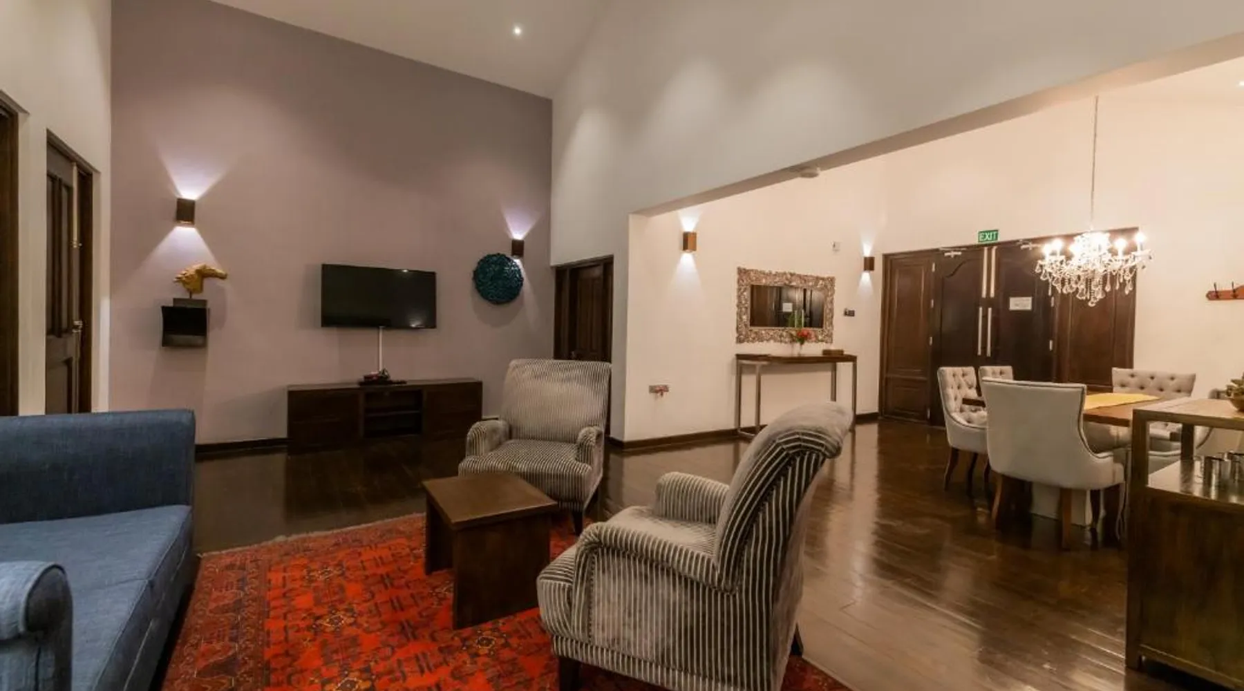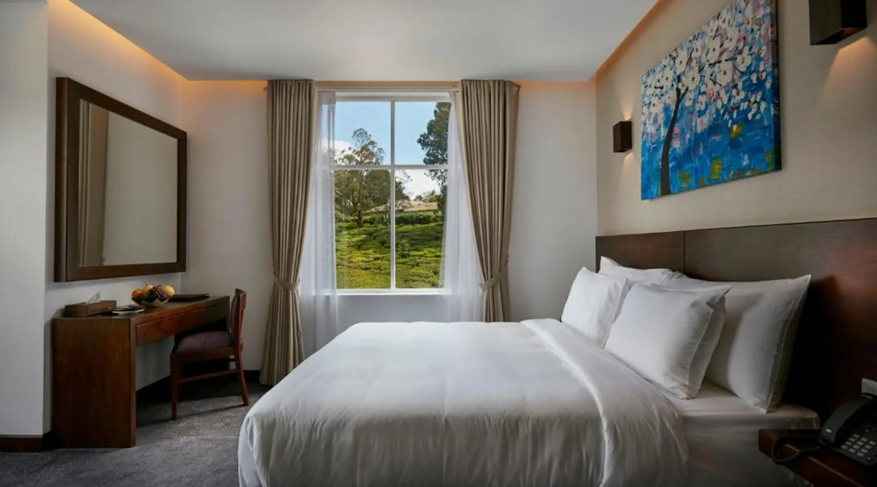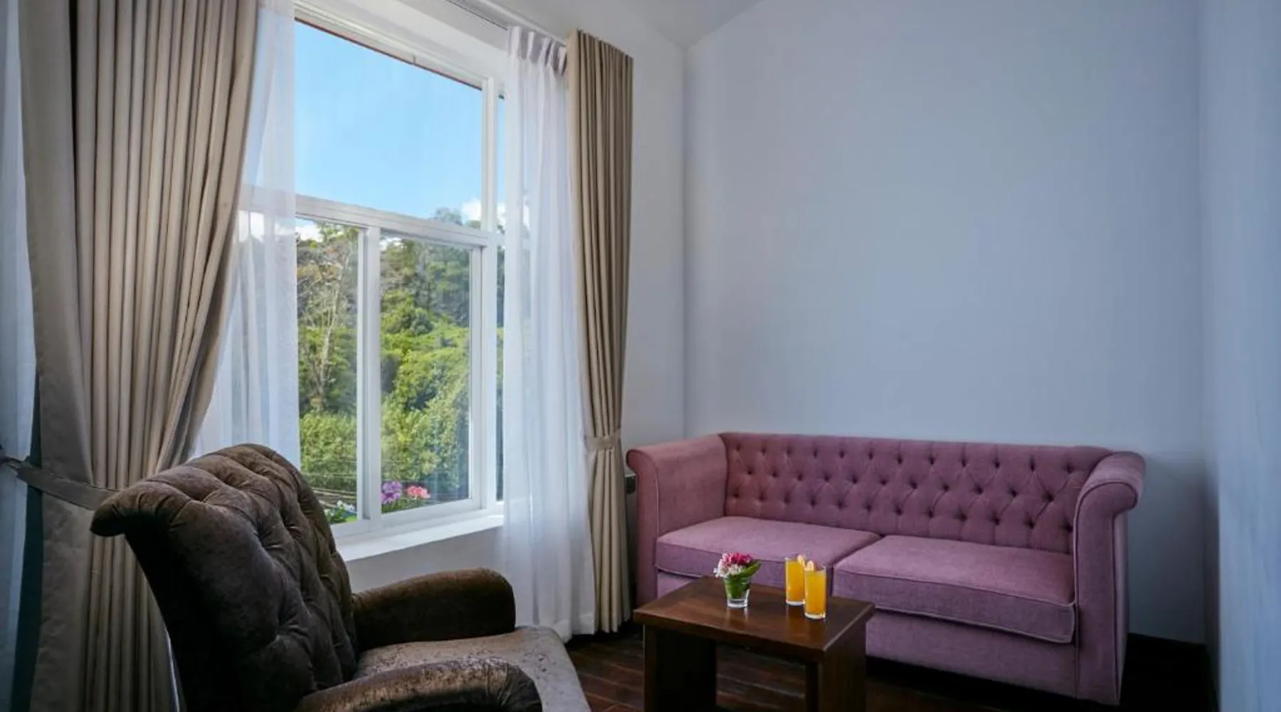 Comfortable Accommodations: Galway Heights Hotel in Nuwara Eliya offers 4-star comfort with private bathrooms, garden or mountain views, and modern amenities. Each room includes a tea and coffee maker, mini-bar, and free WiFi. Dining and Leisure: Guests can enjoy a family-friendly restaurant serving Chinese, French, Indian, and other cuisines. The bar offers a variety of beverages in a relaxed setting. Additional facilities include a terrace, fitness room, and games room. Convenient Location: Located 30 mi from Castlereigh Reservoir Seaplane Base, the hotel is near Gregory Lake (1.2 mi) and Hakgala Botanical Garden (4.3 mi). Walking, cycling, and hiking tours are available. This spacious suite consists of 1 living room, 1 separate bedroom and 1 bathroom with a walk-in shower and free toiletries. This suite features a private entrance, flat-screen TV with cable channels, mountain views, as well as wine/champagne for guests. The unit offers 1 bed.