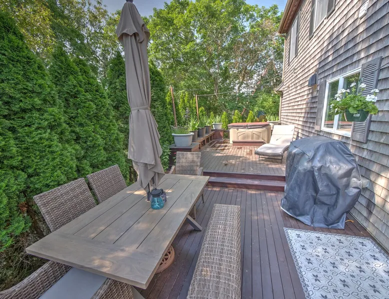 Bring the whole family to Martha’s Vineyard and enjoy an unforgettable getaway filled with comfort, relaxation, and lasting memories. The space This freshly updated 3-bedroom home comfortably accommodates up to six guests, making it perfect for family getaways or small groups. The spacious master bedroom is located upstairs, with two additional bedrooms split between the first and second floors. Each room features a closet and dresser for easy storage. The heart of the home is the kitchen—my personal favorite space. Recently renovated, it features heated floors, a gas range, large sink, French door refrigerator, whisper-quiet dishwasher, and elegant white quartz countertops. A dedicated coffee bar is stocked with both Nespresso and Keurig machines, a milk frother, and plenty of coffee to start your mornings right. Step outside to the private, arborvitae-lined deck—perfect for soaking in the hot tub, grilling, or relaxing with friends and family. The backyard offers space for lawn games or evenings by the fire pit, and after a day at the beach, you can rinse off in the outdoor shower. We provide beach towels for your use, and if you forget an essential (like a charger or toothbrush), let us know—we may be able to help. Our goal is to make your stay as comfortable as possible. Additional Amenities: -Four TVs throughout the house -High-speed Wi-Fi -Linens and bath towels provided -Fully stocked kitchen with cookware, dinnerware, and grill tools -Beach towels included OPTIONAL Vehicle Rental – A 2019 4-door Jeep Wrangler is available to rent directly through us for your stay. Message for details and availability. Guest access Guests will have access to a private driveway that fits two vehicles, plus additional parking available along our private road directly next to the driveway. Other things to note There is a separate apartment connected to the lower level of the main house. At times, a property manager may be staying there. They have their own private entrance and exit and will not share any indoor spaces with you or your guests. Please also remember to book your ferry tickets in advance. Ferry availability can be limited, and we cannot be responsible for missed reservations due to ferry scheduling issues.