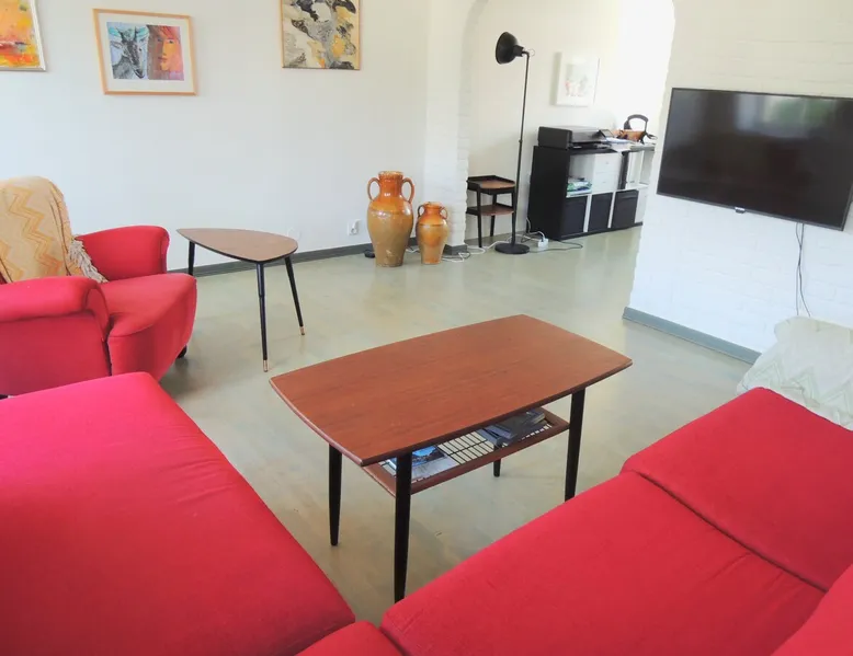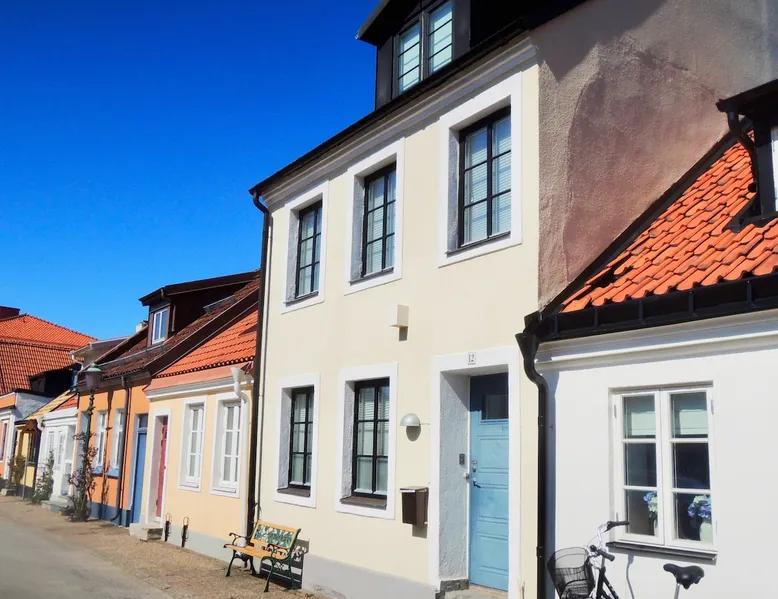 In a perfect location across from the marina's outdoor dining and sandy beach, this charming street house sits on a quiet street. Just around the corner, the pedestrian streets set out with market shops, shops, and restaurants. Less than 10 minutes walking distance to sandy beach, bus and railway station. Airy house with three floors and a large south-facing courtyard with sun from morning to night. Large and well equipped kitchen with with a small TV.
